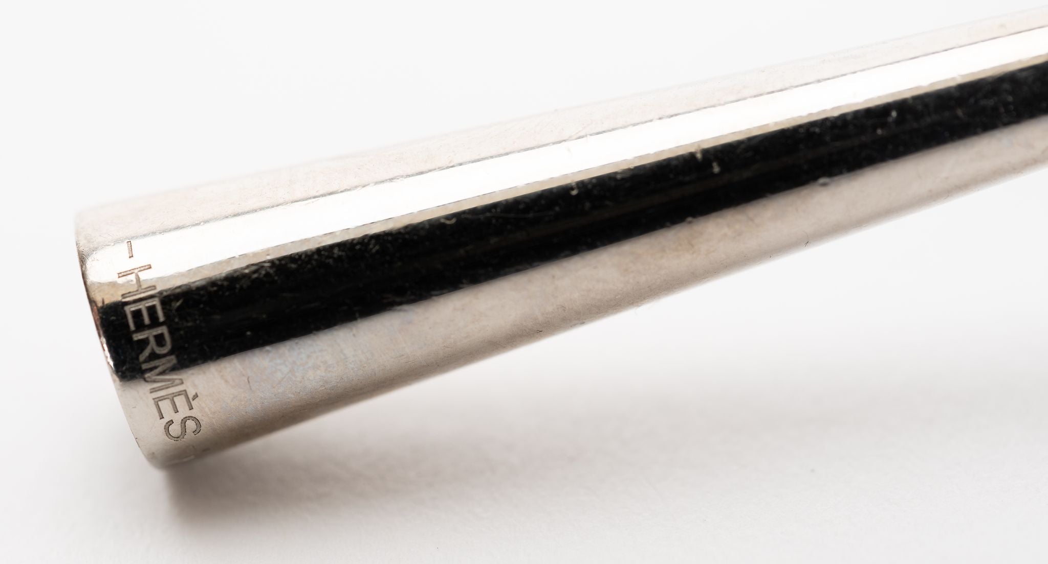 The Hermès palladium Whistle Charm is an actual whistle. Excellent condition and rare find. Comes with original velvet pouch and box.