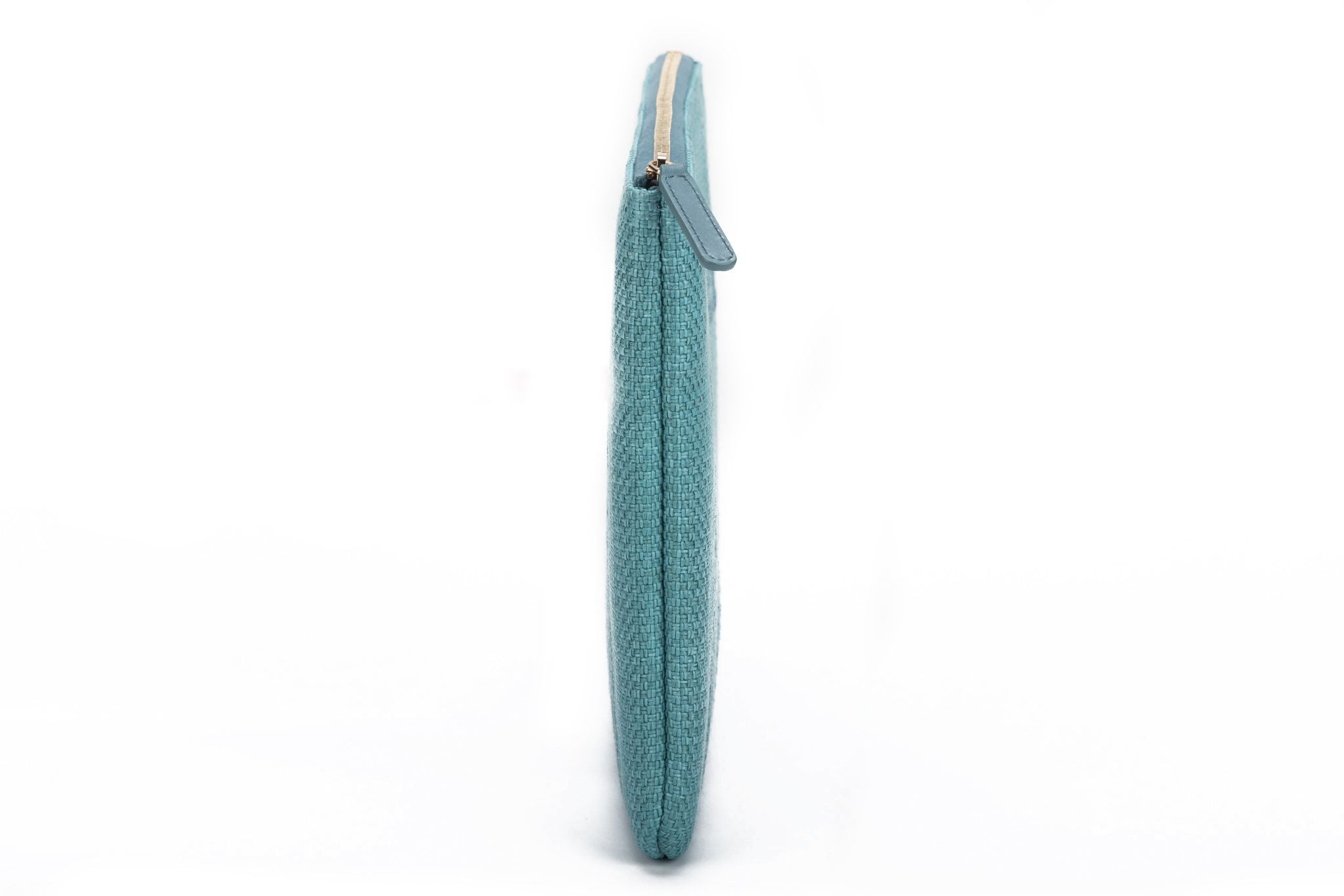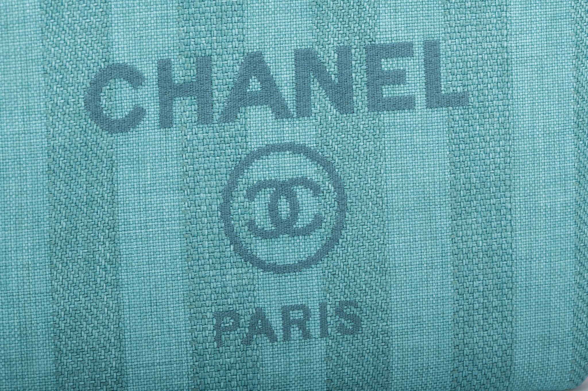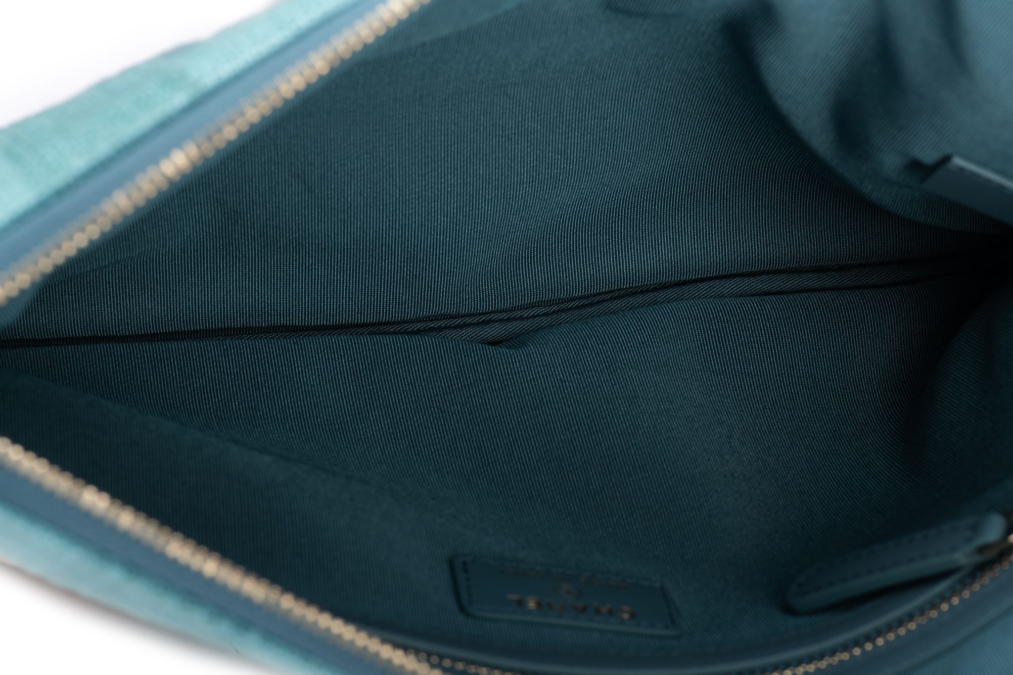 Chanel new Deauville clutch in striped aqua fabric. Collection 29.Comes with hologram, ID card, dust cover over and box.