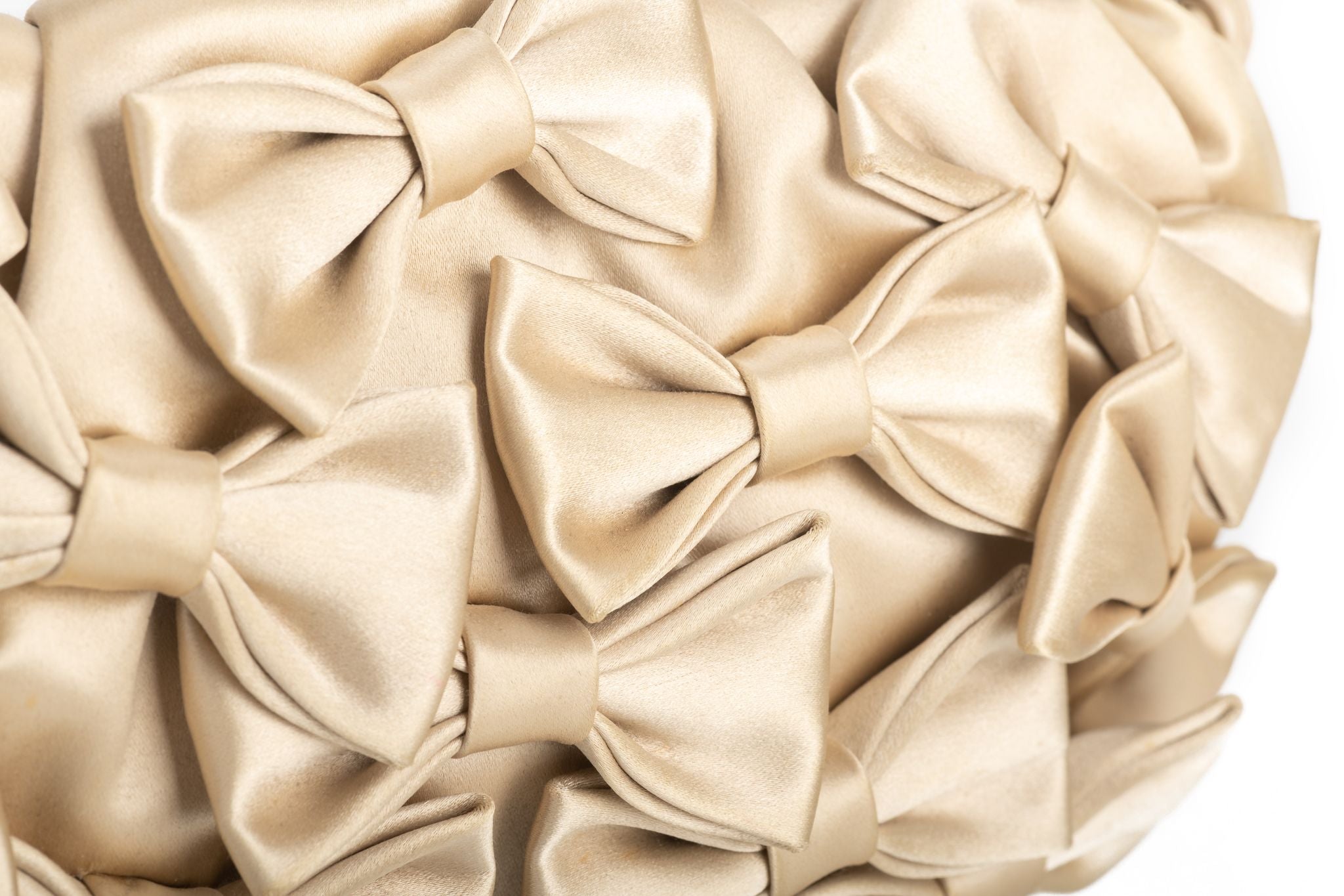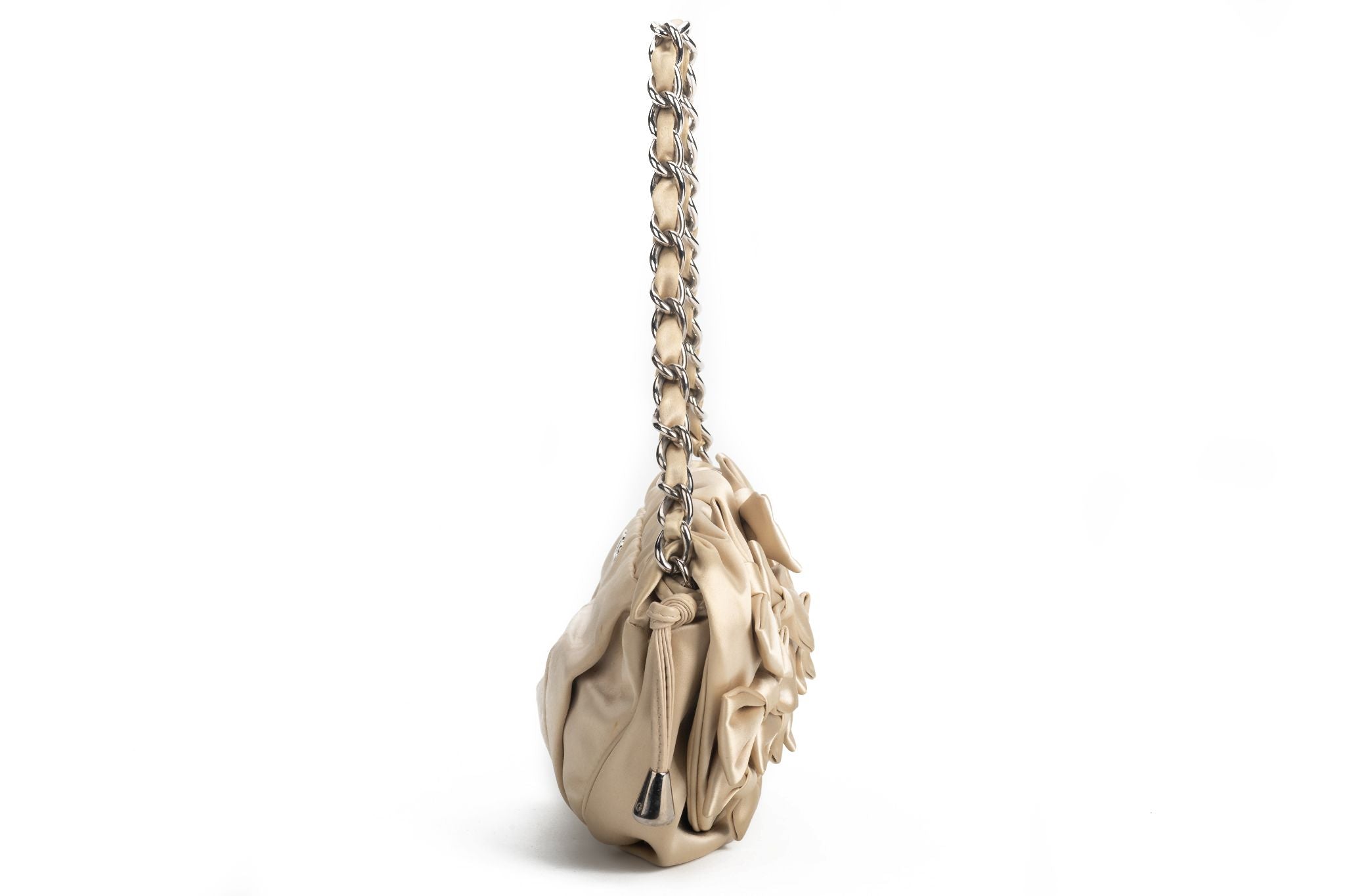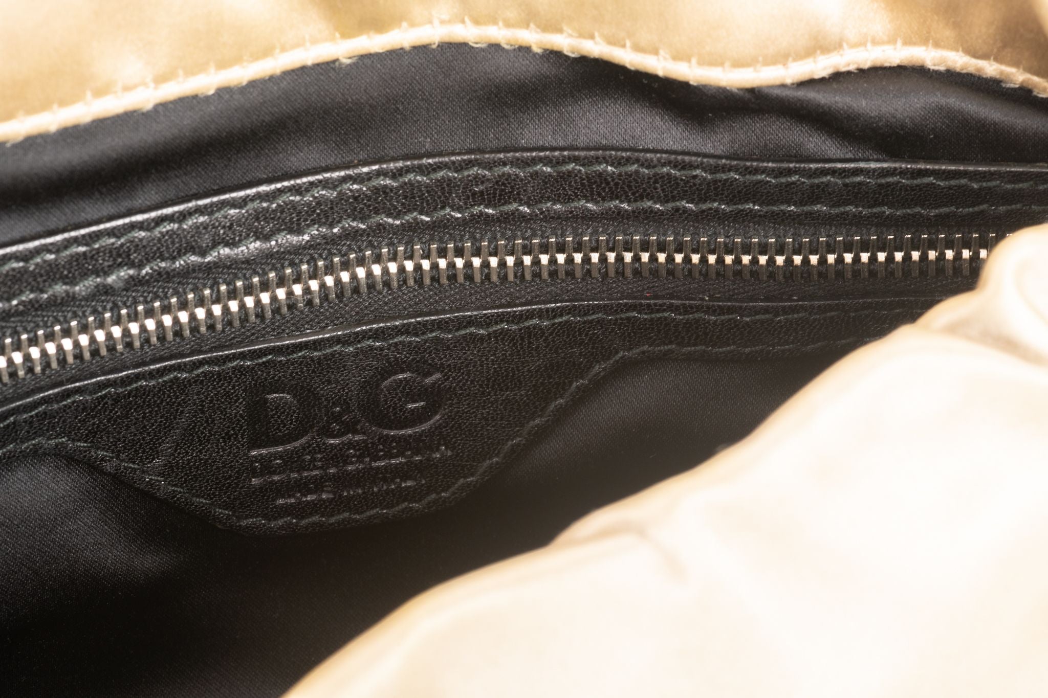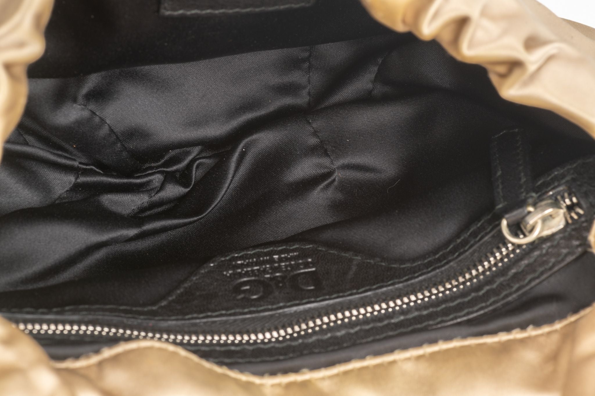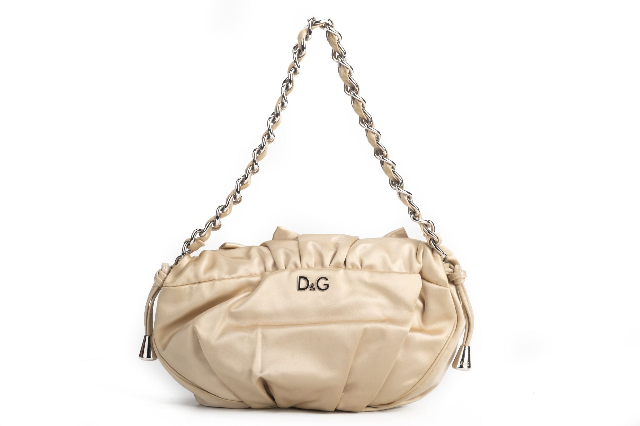 Dolce & Gabbana evening bag made of silk in cream white. The bag is decorated with multiple small bows on the front. It comes with a shoulder chain and it opens with a zip on top of it. The piece is in excellent condition and comes with a dustcover.