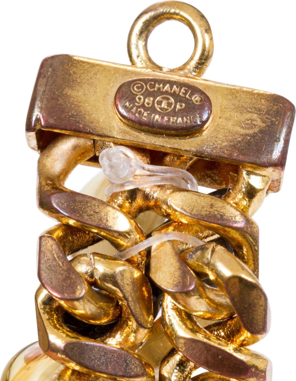 Condition: ExcellentEra: Vintage; 1970s: 8" L x 1.8" WMaterials: metal/glassColor: gold/red/blue/pearlRare Chanel 1970s goldtone chain...