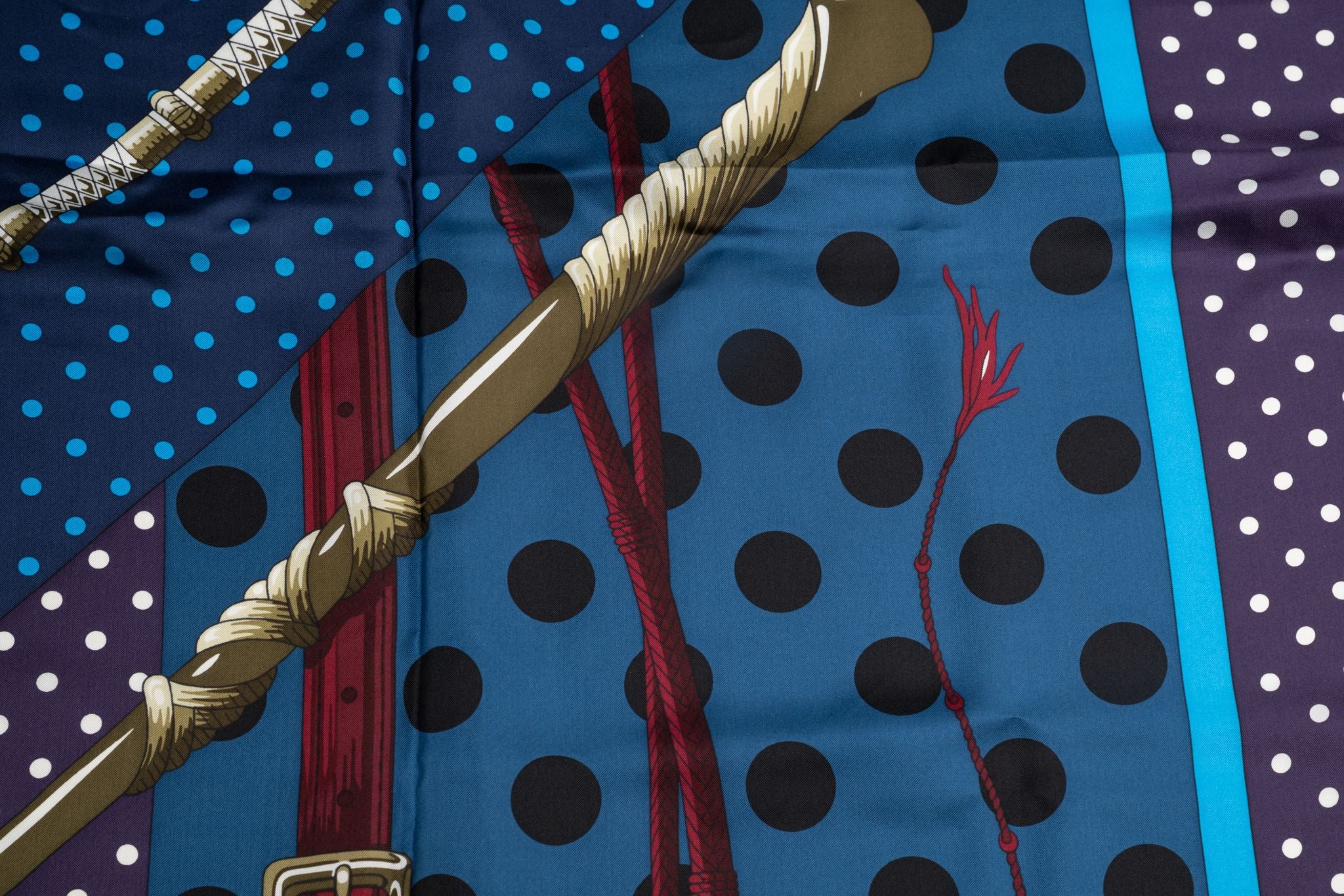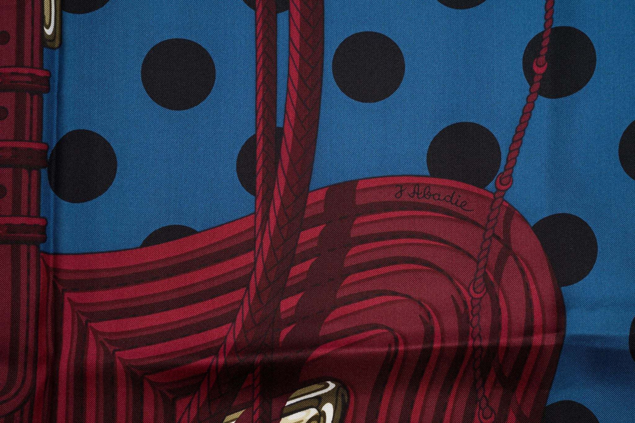Hermès "Clic Clac" in red and blue, 100% silk shawl with hand rolled edges. Excellent condition.