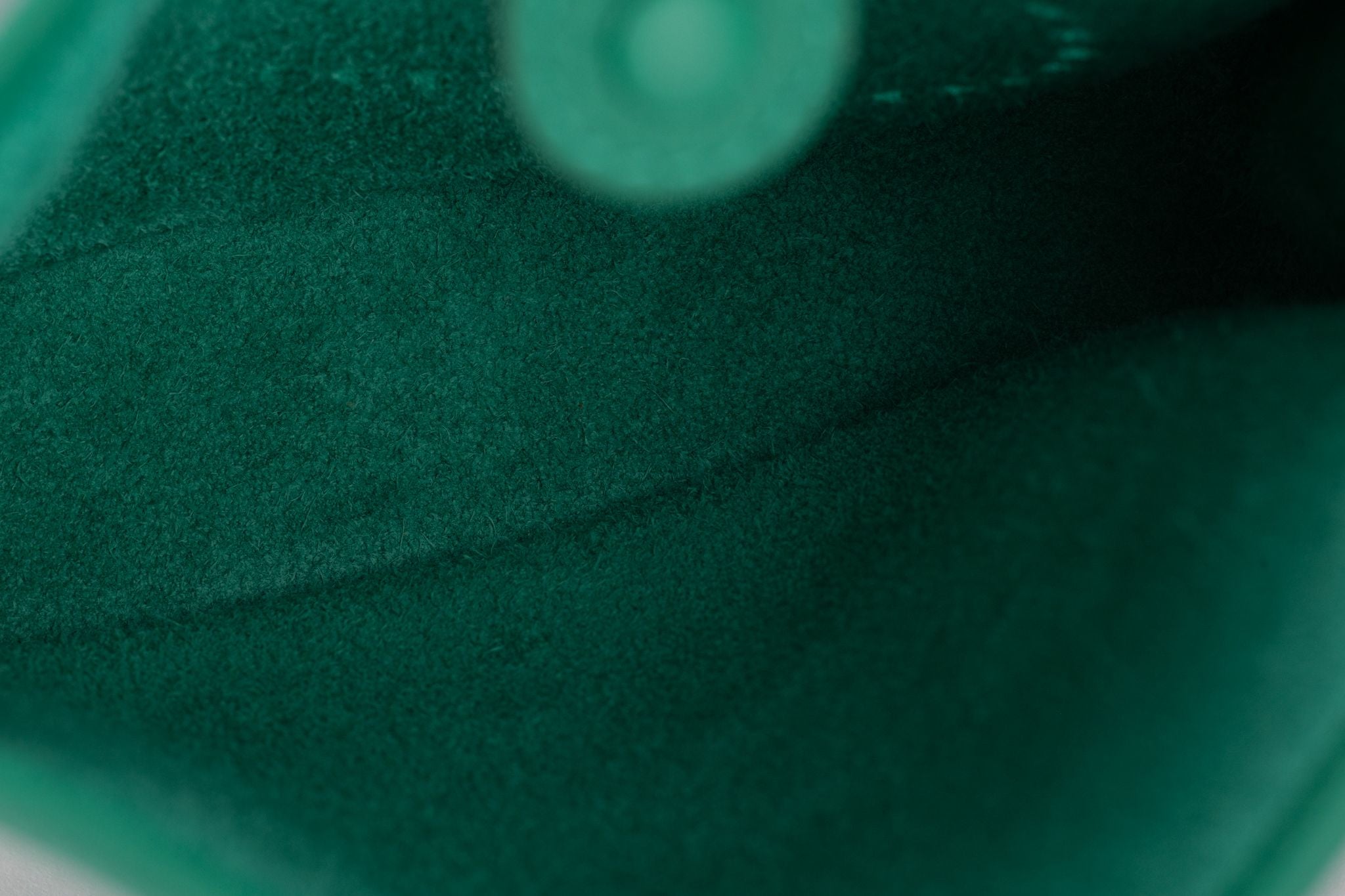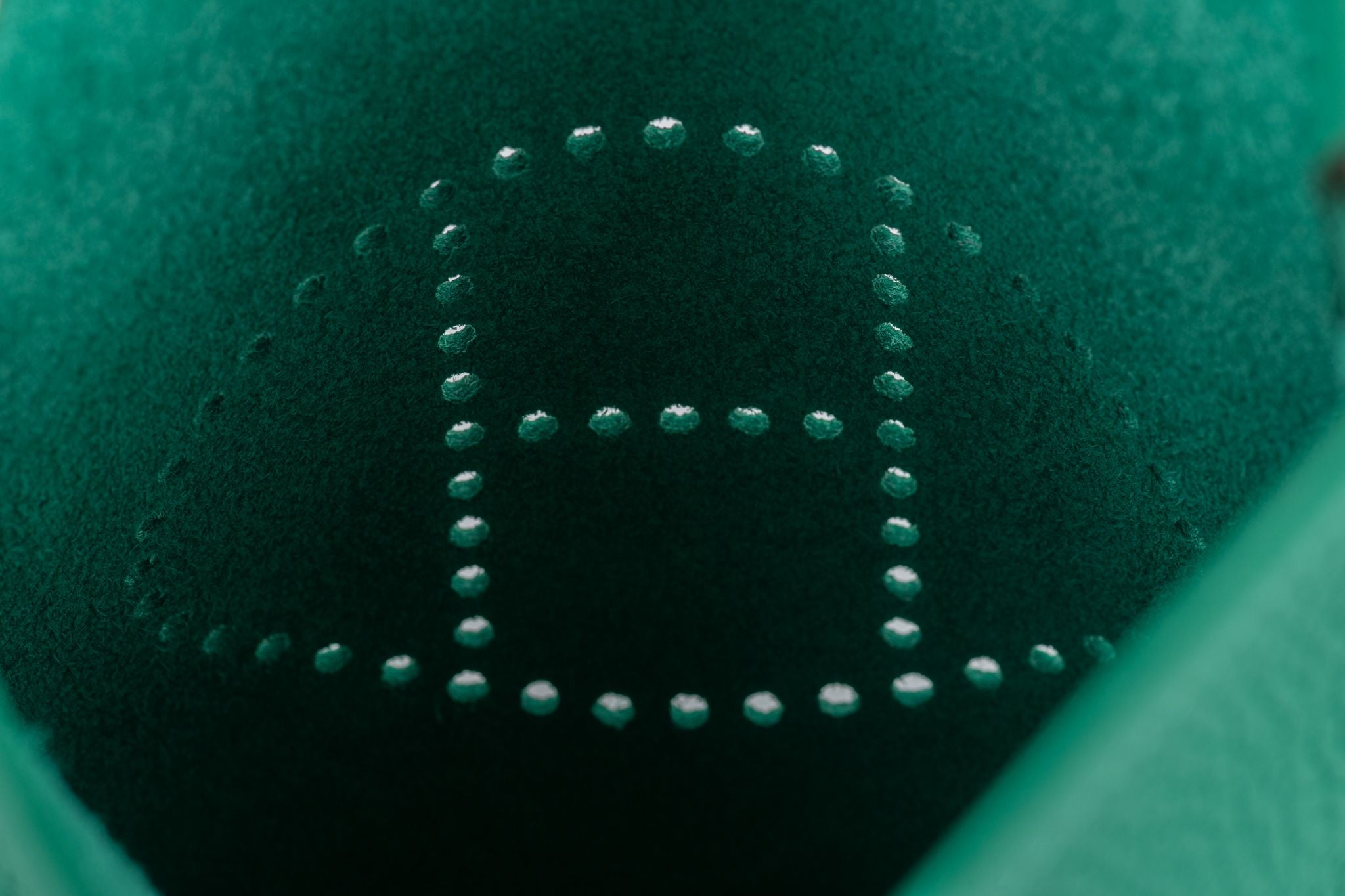 This Hermès Mini Evelyne Bag feature vert vertigo Clemence leather, gold hardware, a detachable flat strap, and an open top with a tuck closure and perforated “H” logo on the front. Date Stamp first letter W (2024). Comes with booklet, original dustbag and box.