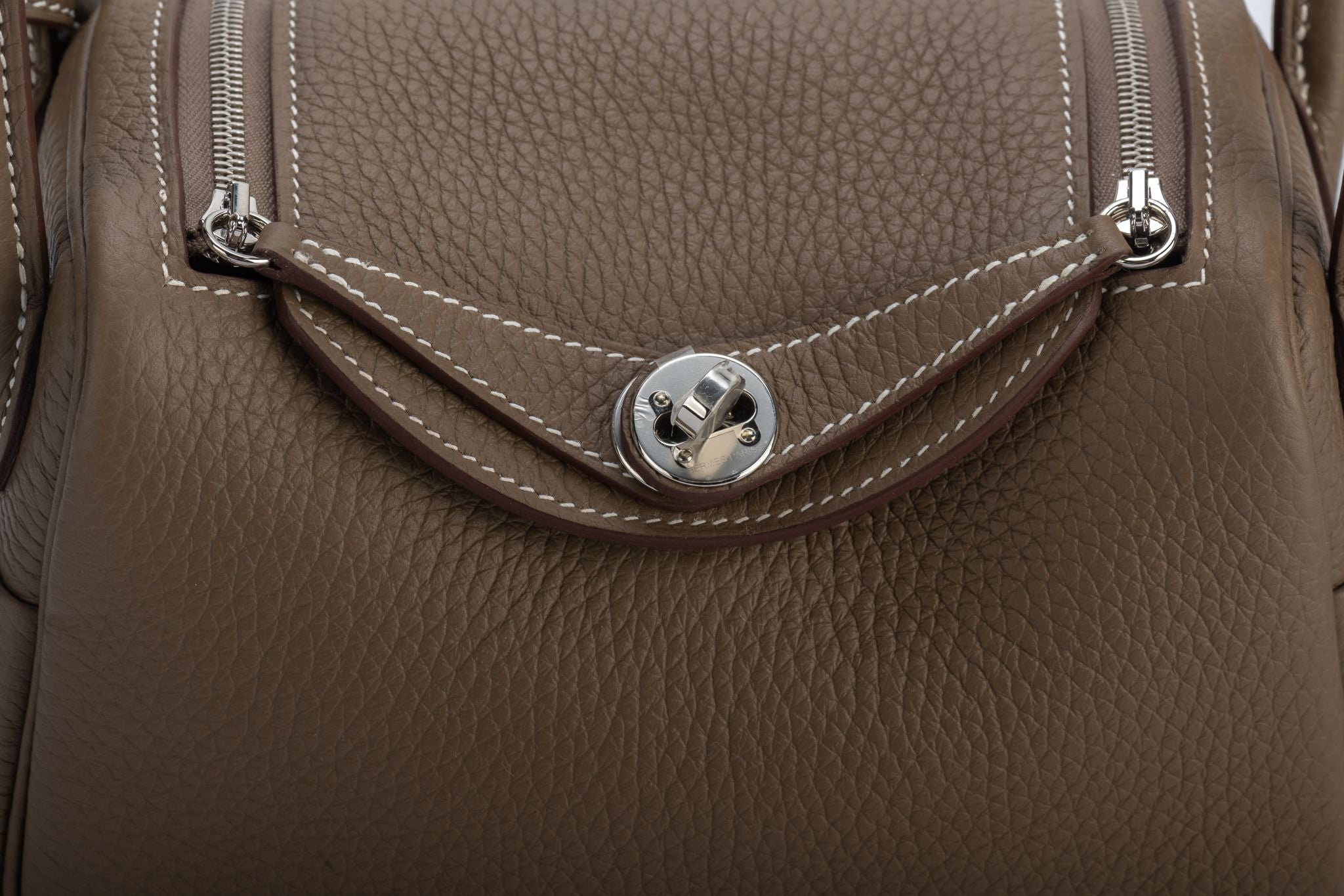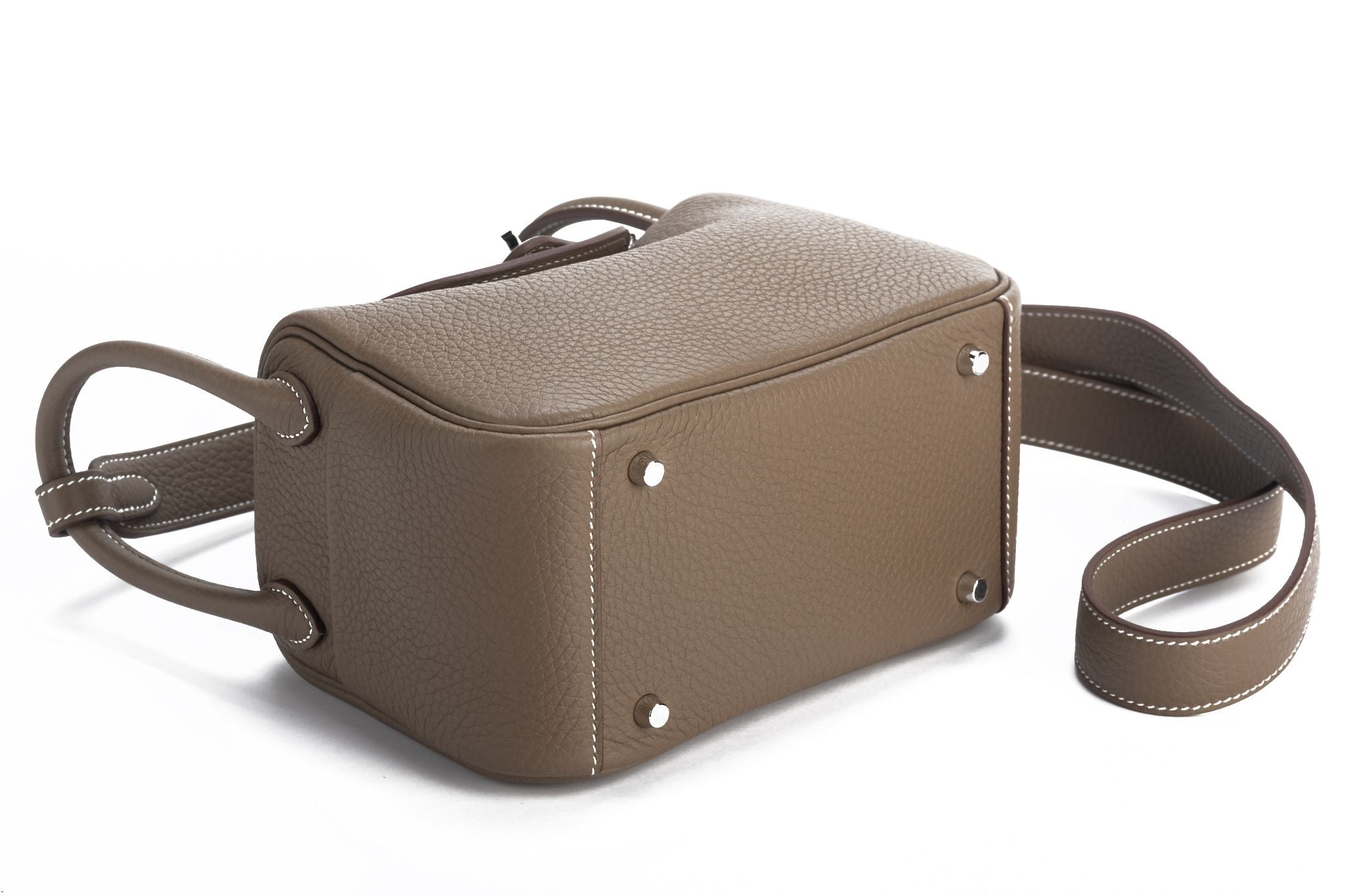 Hermes brand new in box mini lindy etoupe togo leather with palladium hardware. Date stamp Z, 2021. Coveted new size , can be worn in three ways, also cross body. Two interior pockets. Comes with dust cover and original box.