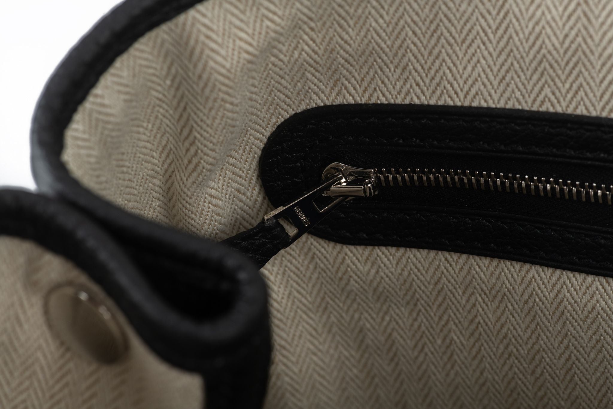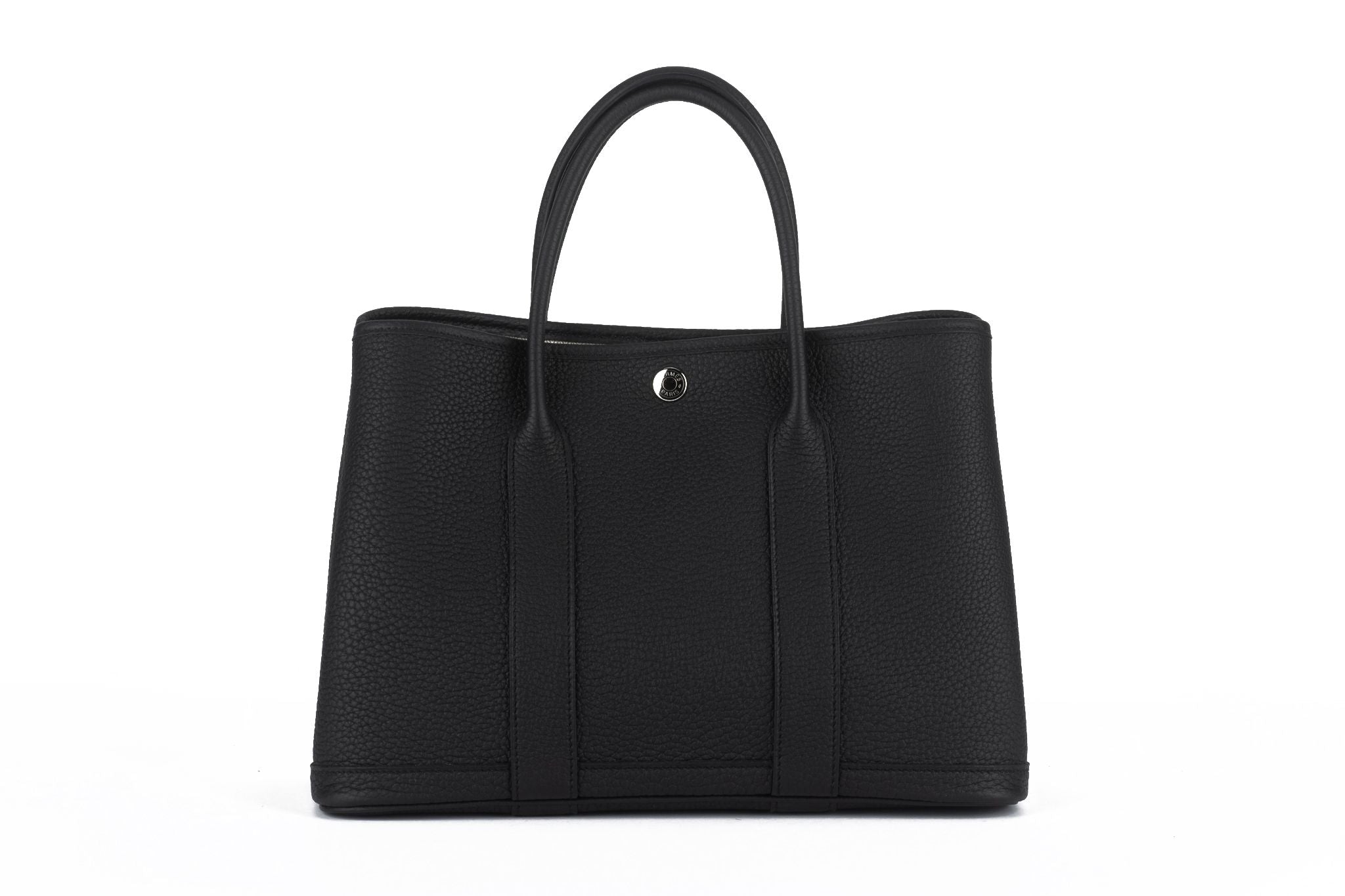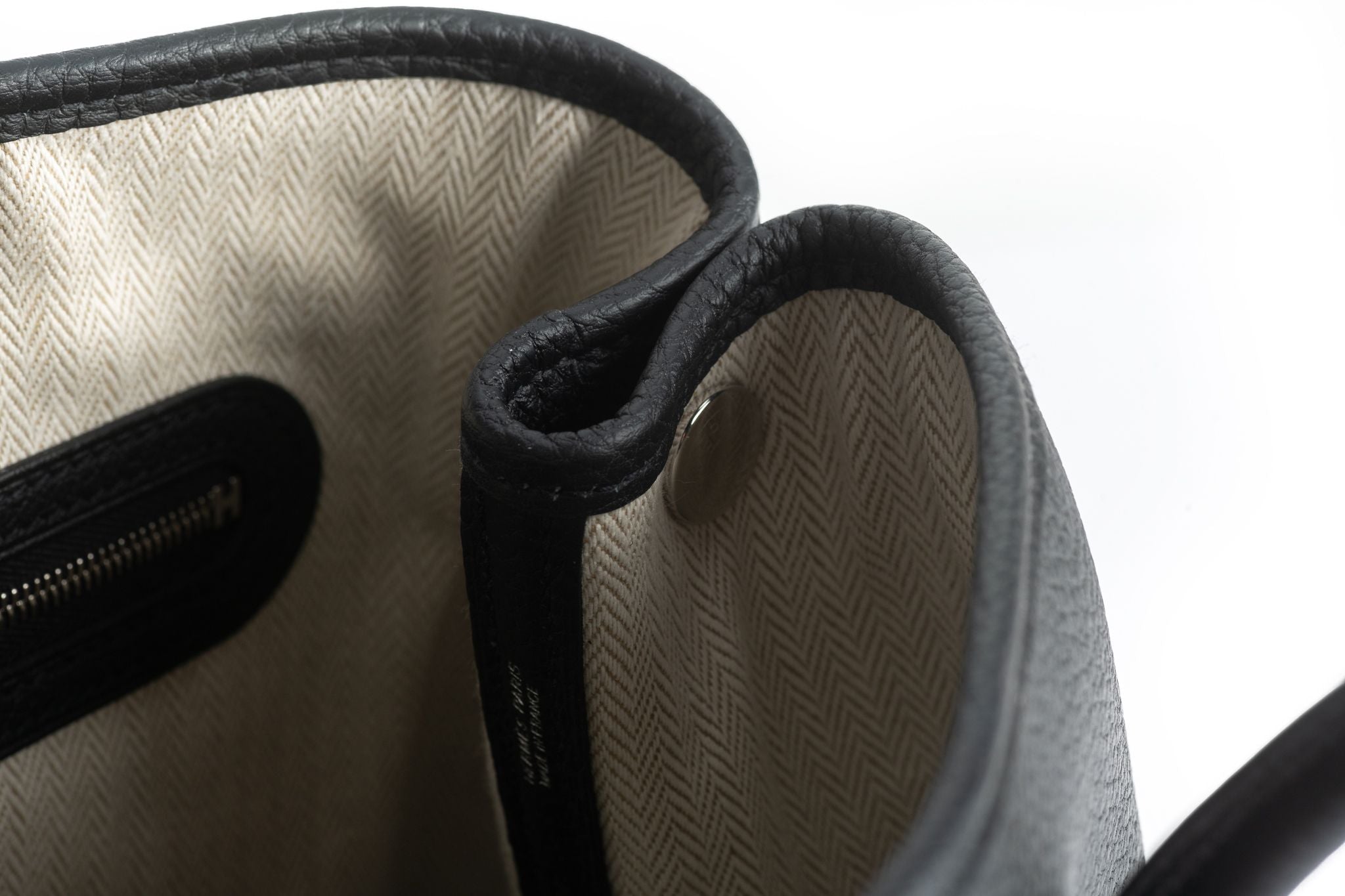 This Hermès Garden Party features black negonda leather and palladium hardware, with rolled handles, snap closures at the side and top, interior toile H canvas, and a single interior pocket. Date Stamp - W, 2024. Brand new, comes with booklet, original dust cover and box.