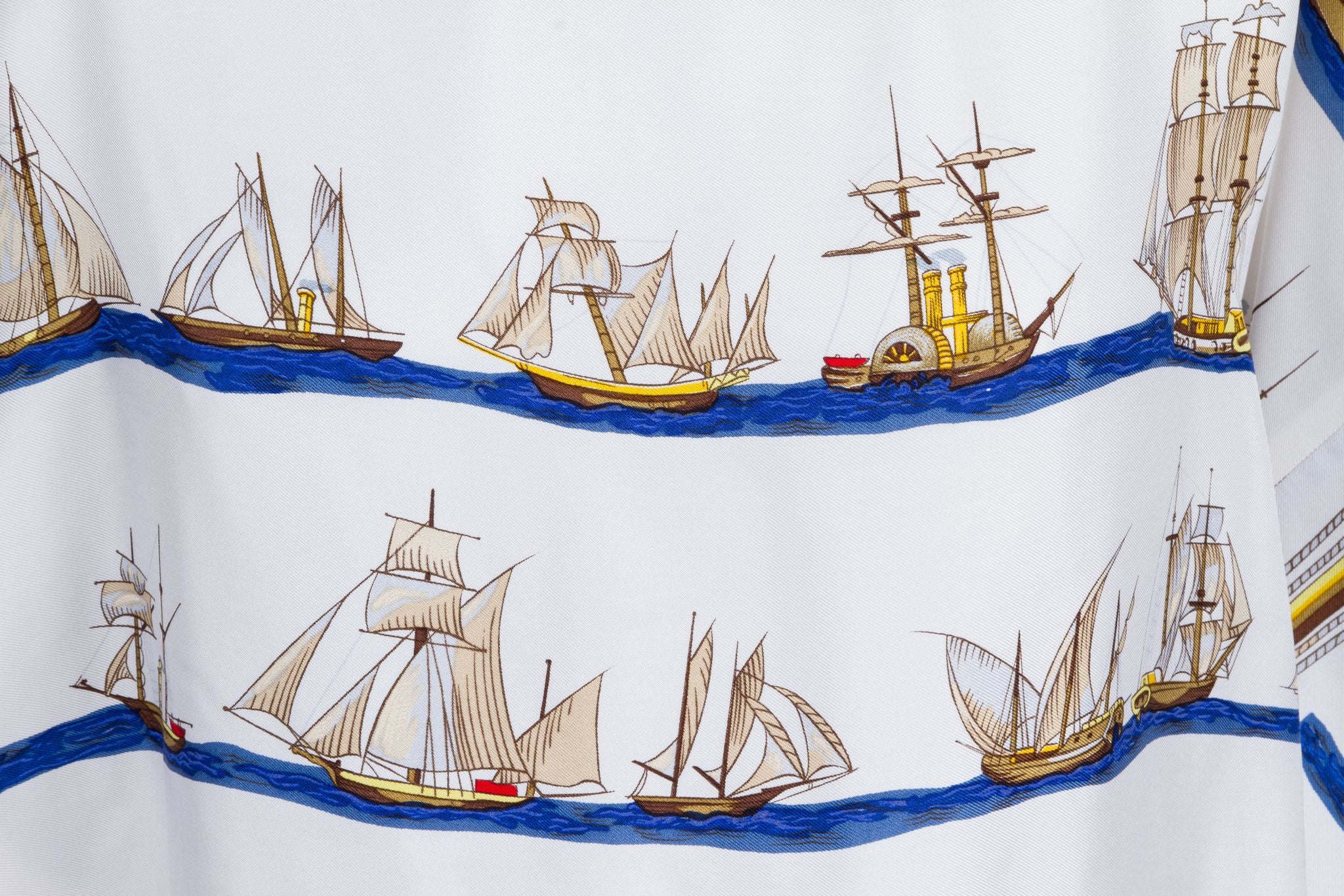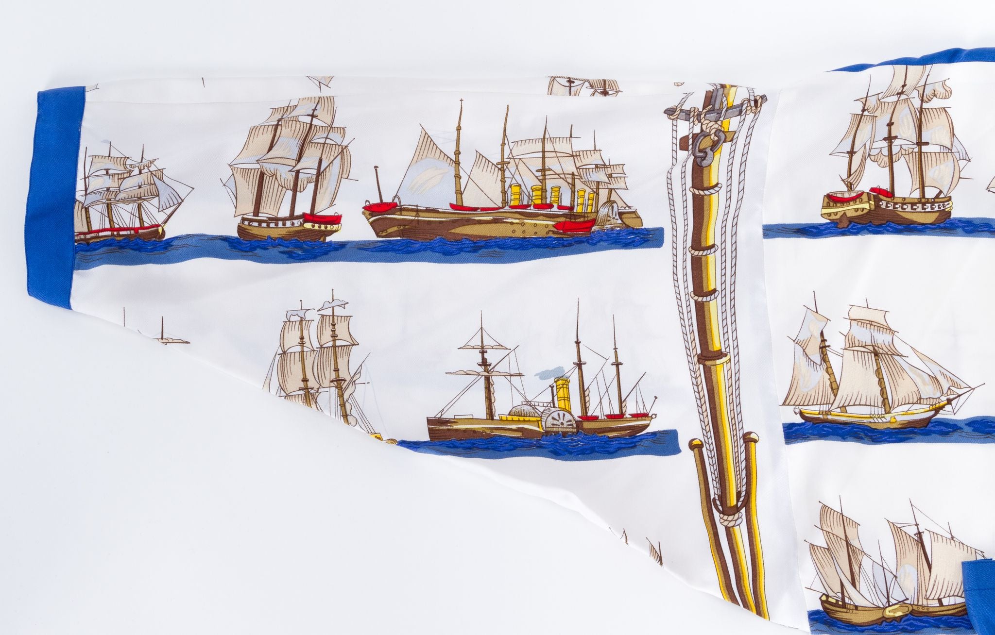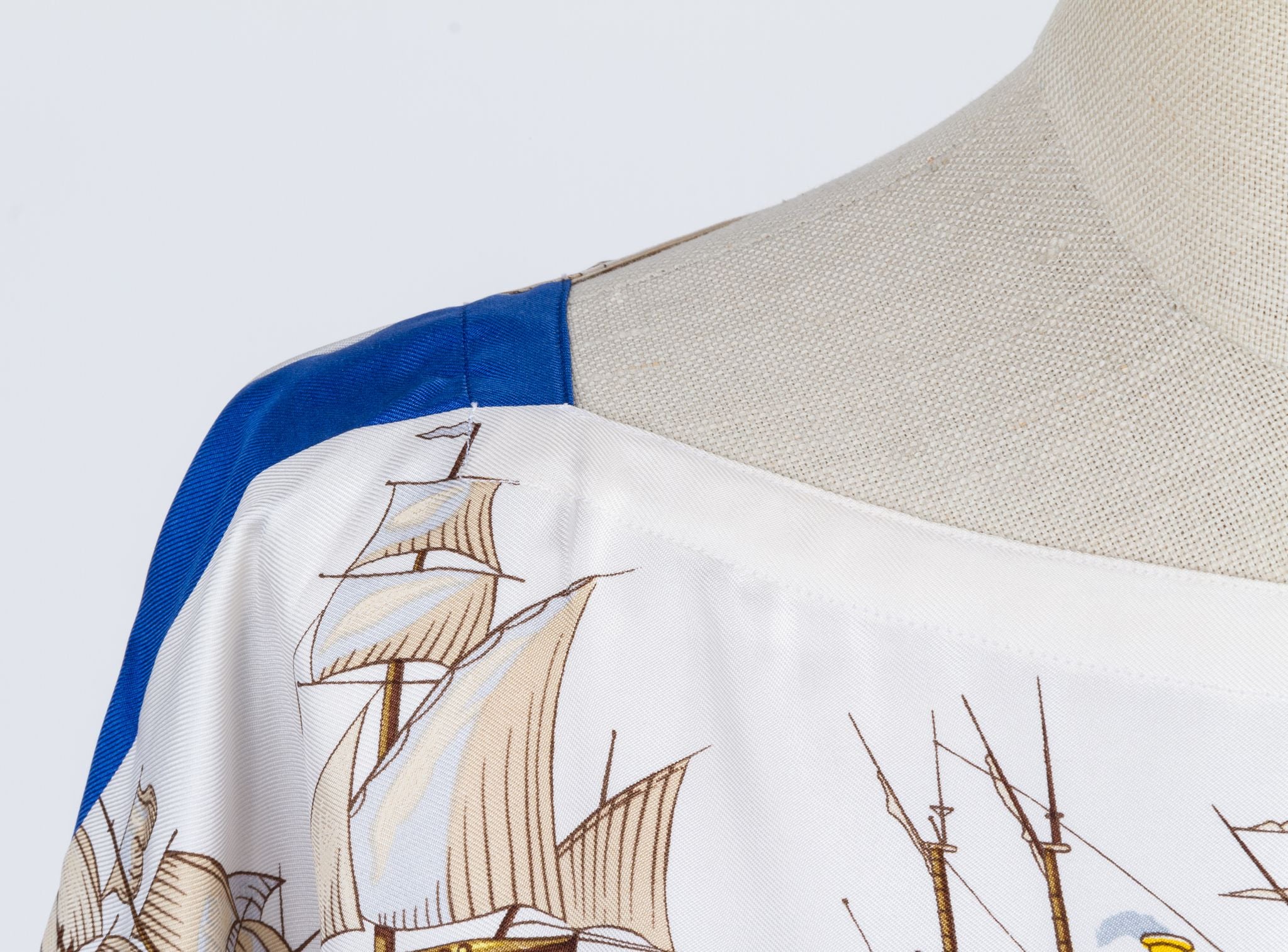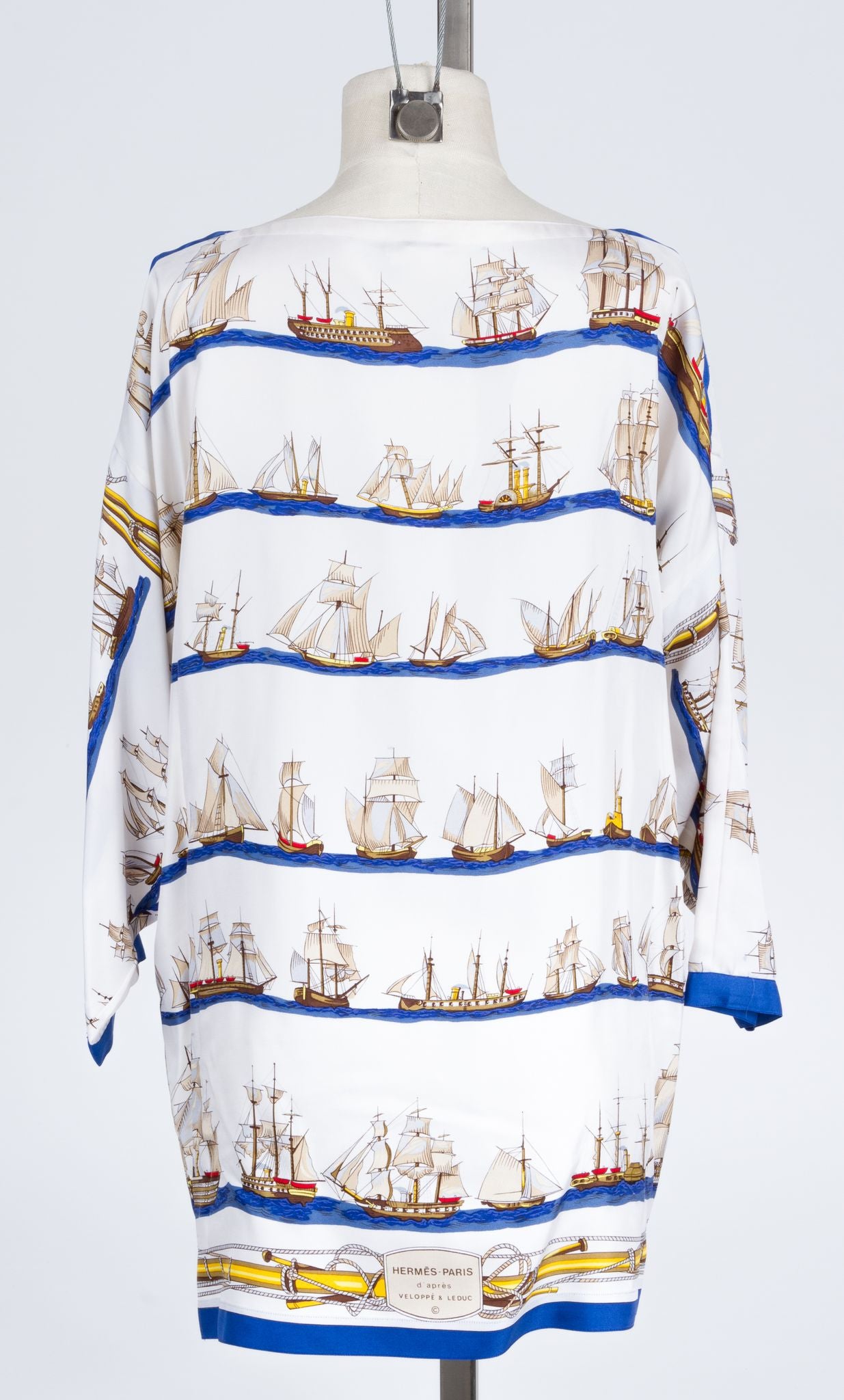 Hermès dress made out of 100% silk in french size 42. The pattern shows sailing boats and vessels . It's in an excellent condition. Neck to hem 29.5" / 75 cm Bust 25" / 64 cm Neck11.5" / 29 cm Shoulders 25.5" / 65 cm