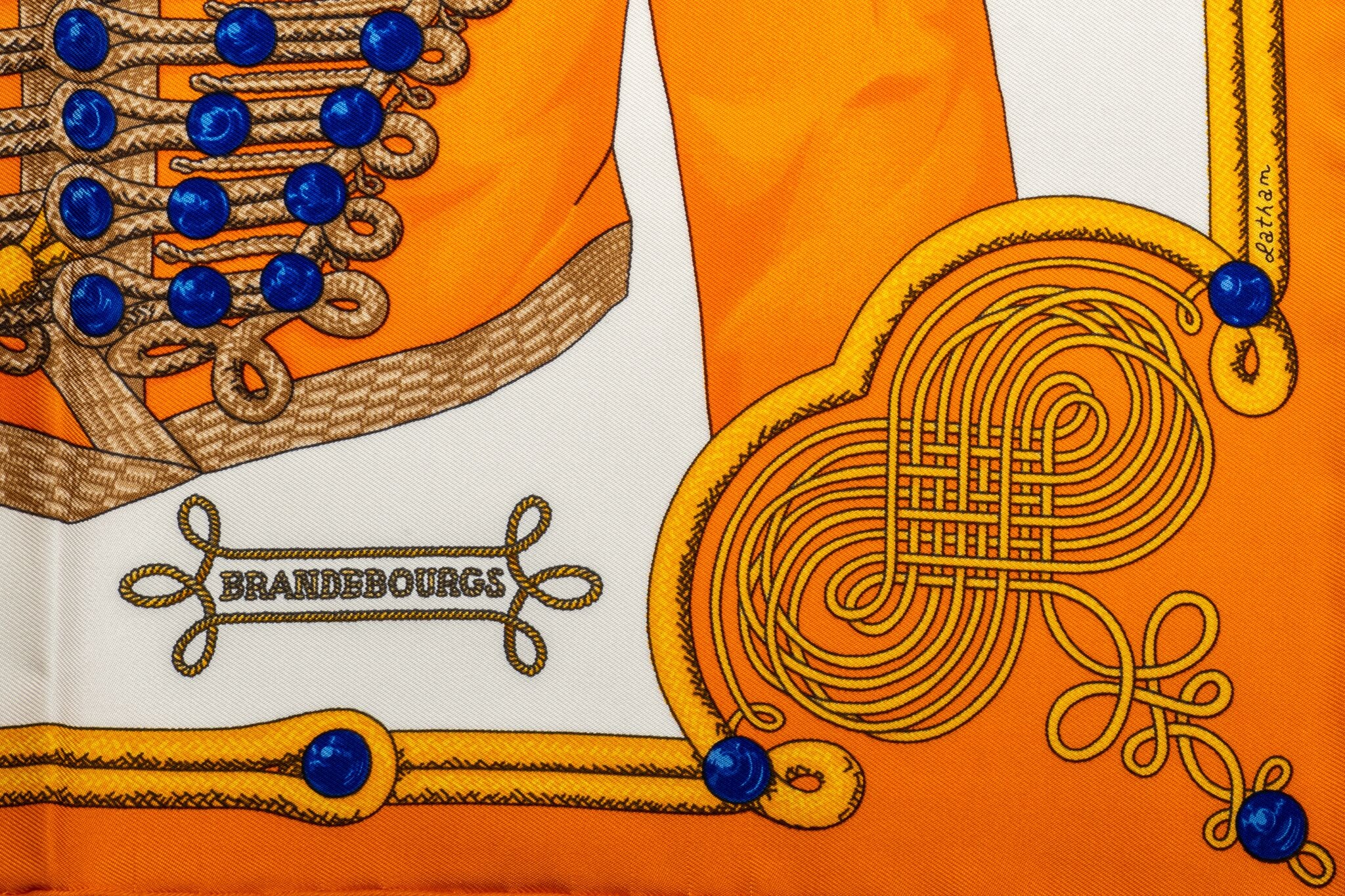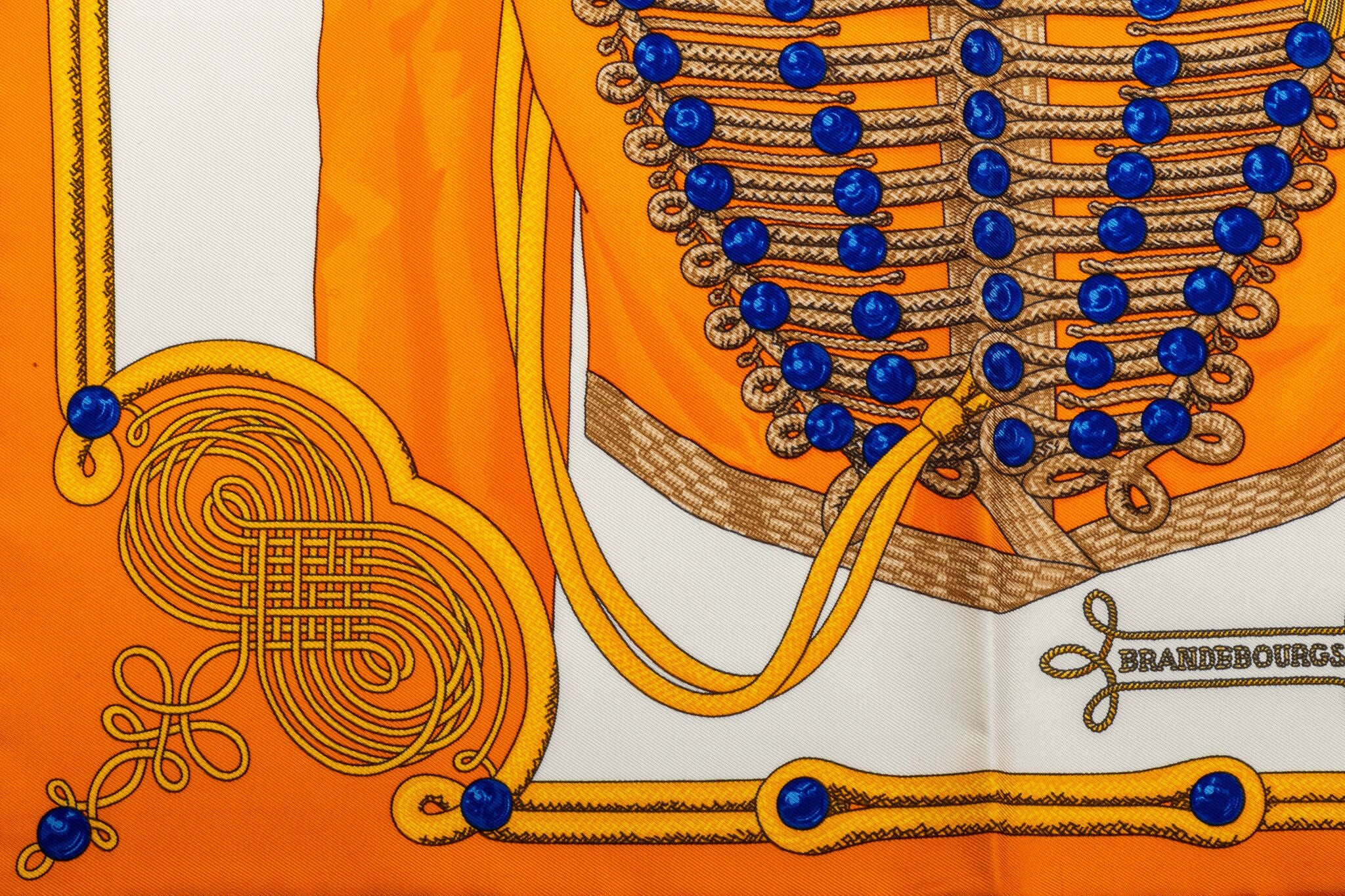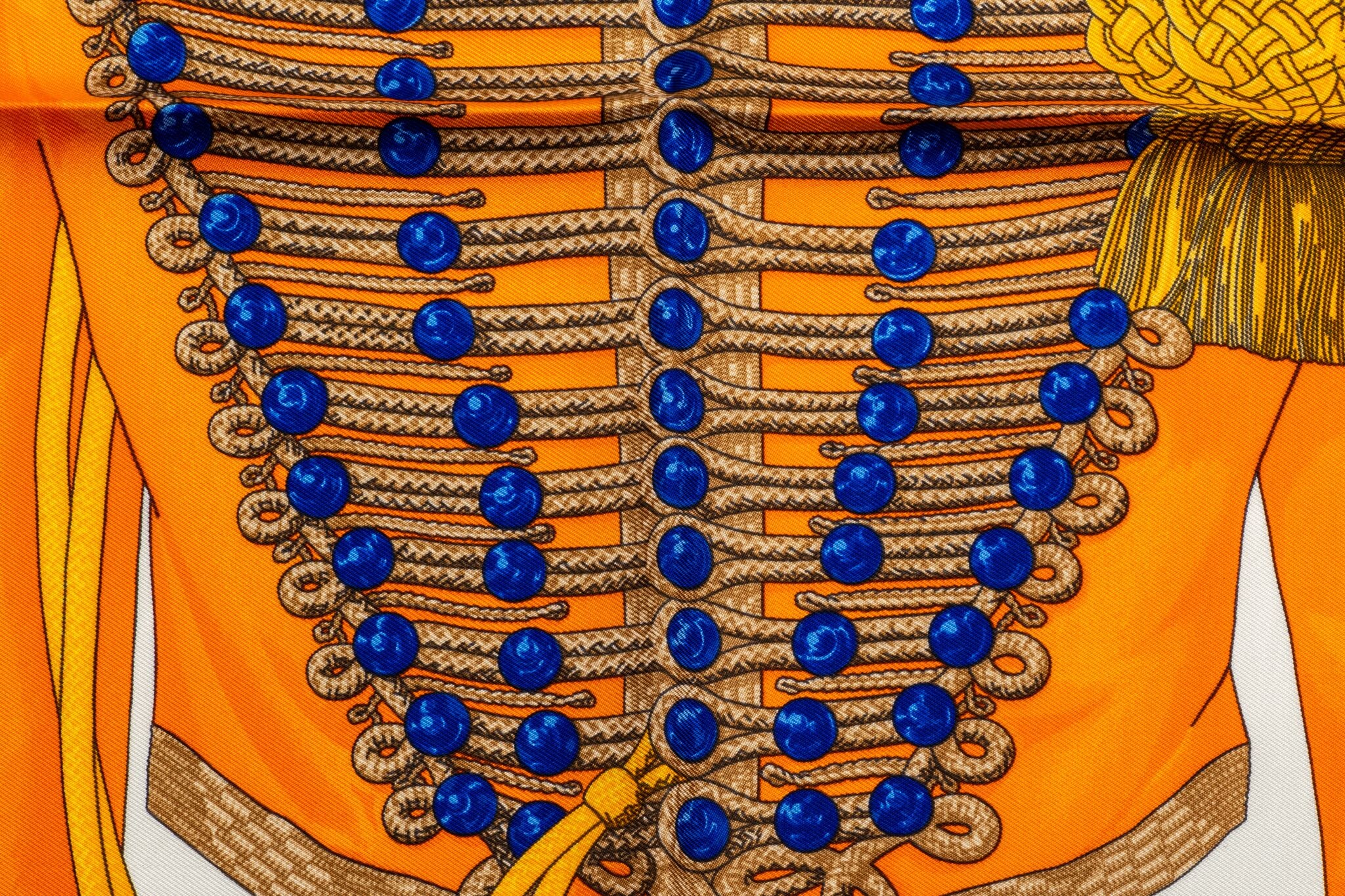 Hermès limited edition yellow silk Brandebourgs gavroche scarf. Hand-rolled edges. New in box.