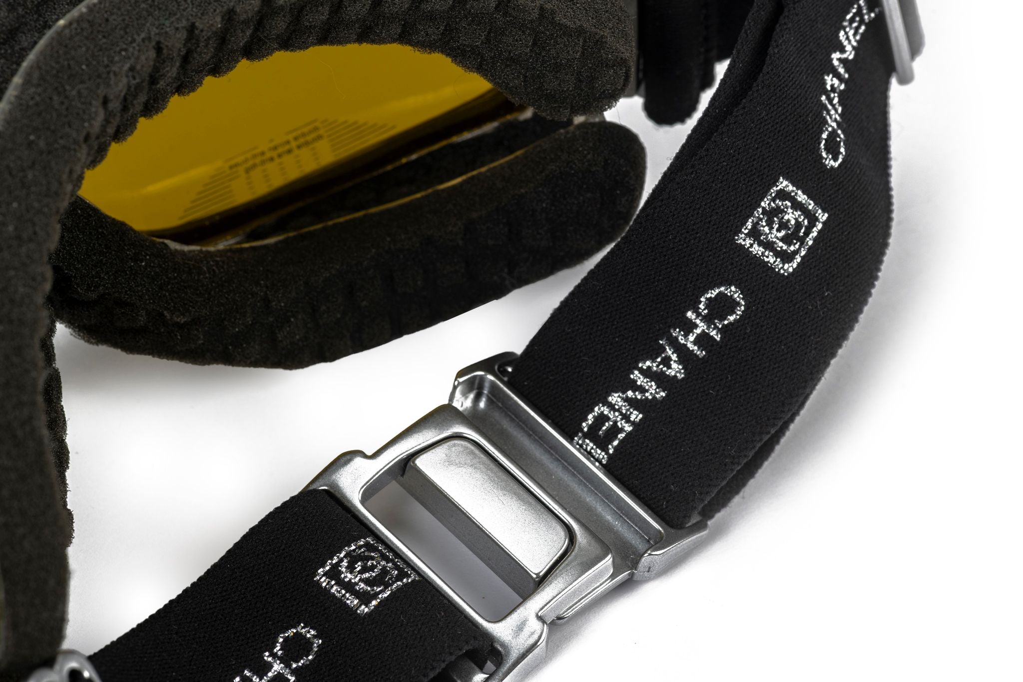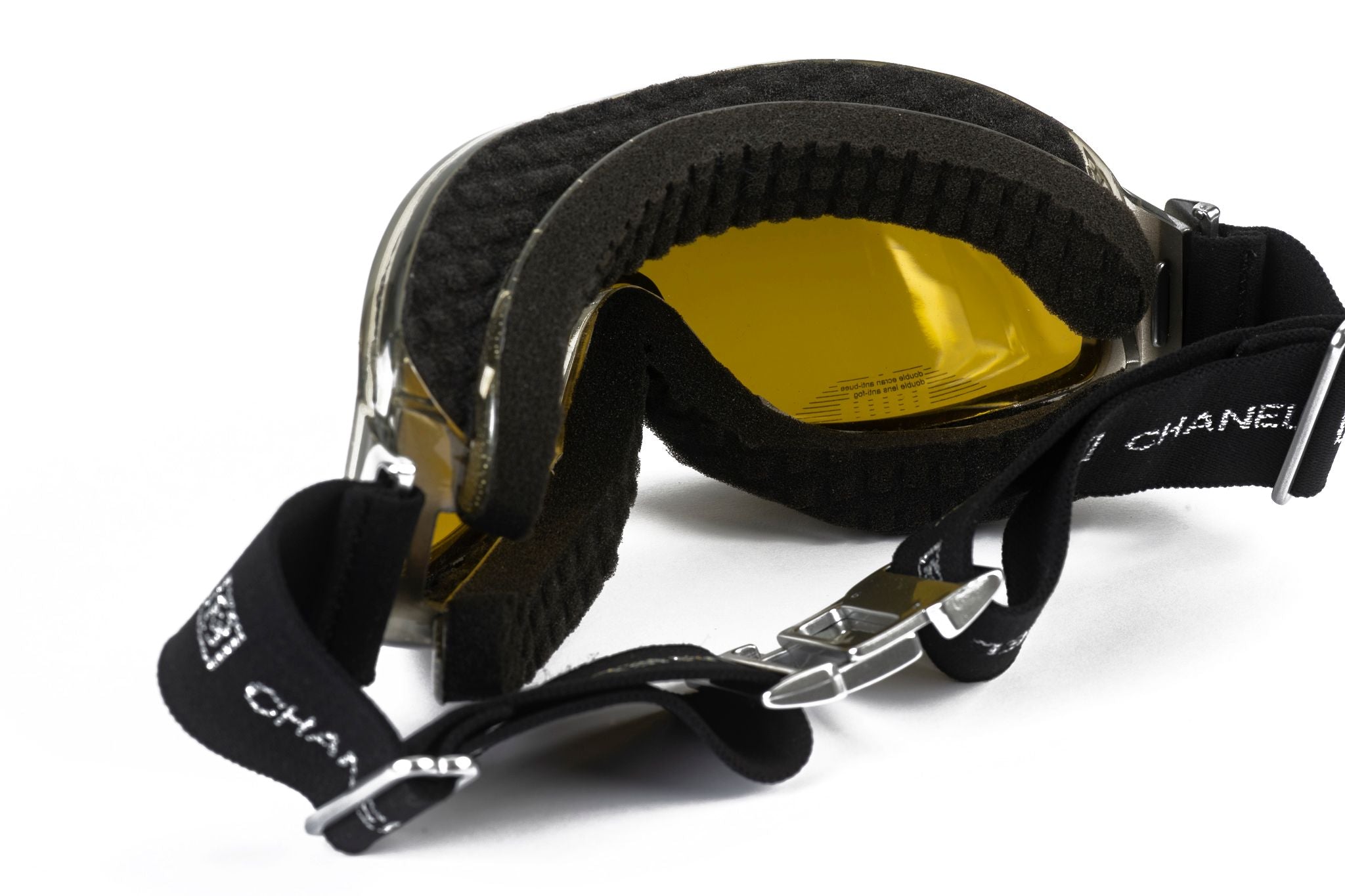 Chanel by Karl Lagerfeld Polarized Ski Goggle Ski Collection features polarized double-lens with rubber trim and antifog, foam layered interior & bottom perforated slits, adjustable elastic headband, metallic buckles, iridescent 'CC' logo band detailing. Comes with original dustcover.