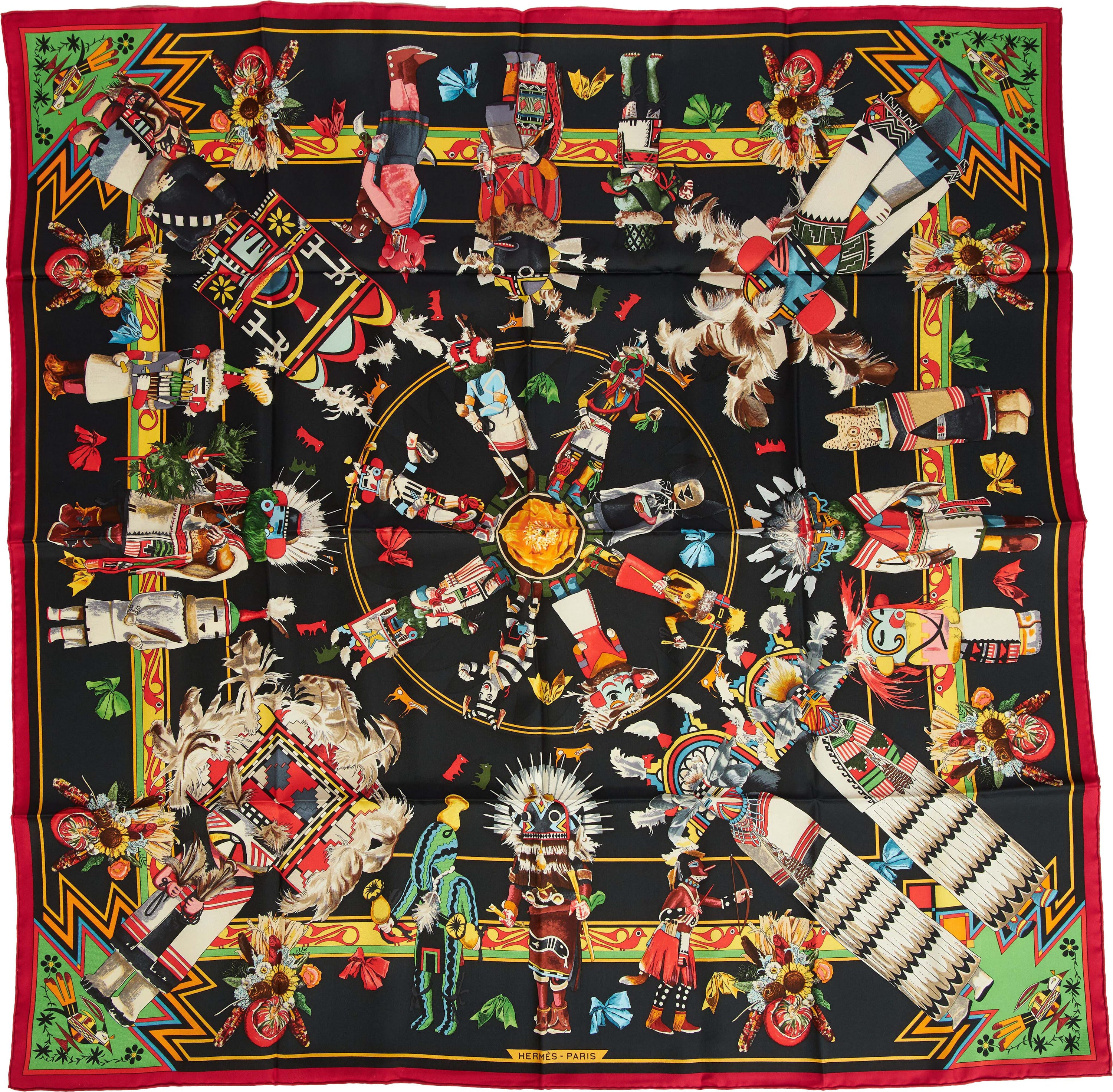 Hermès Black Silk Kachinas Scarf