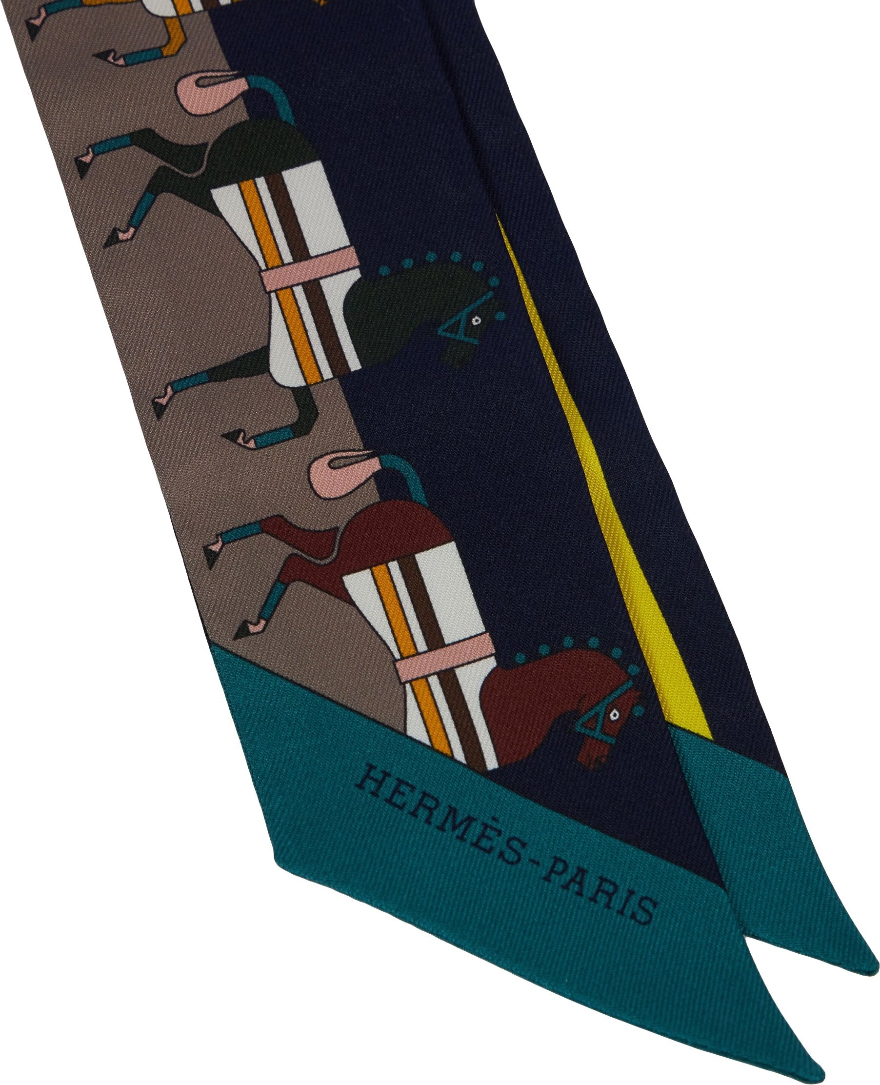 Hermes black dressage horses twilly scarf with hardware. Comes in box. Dry-clean only.