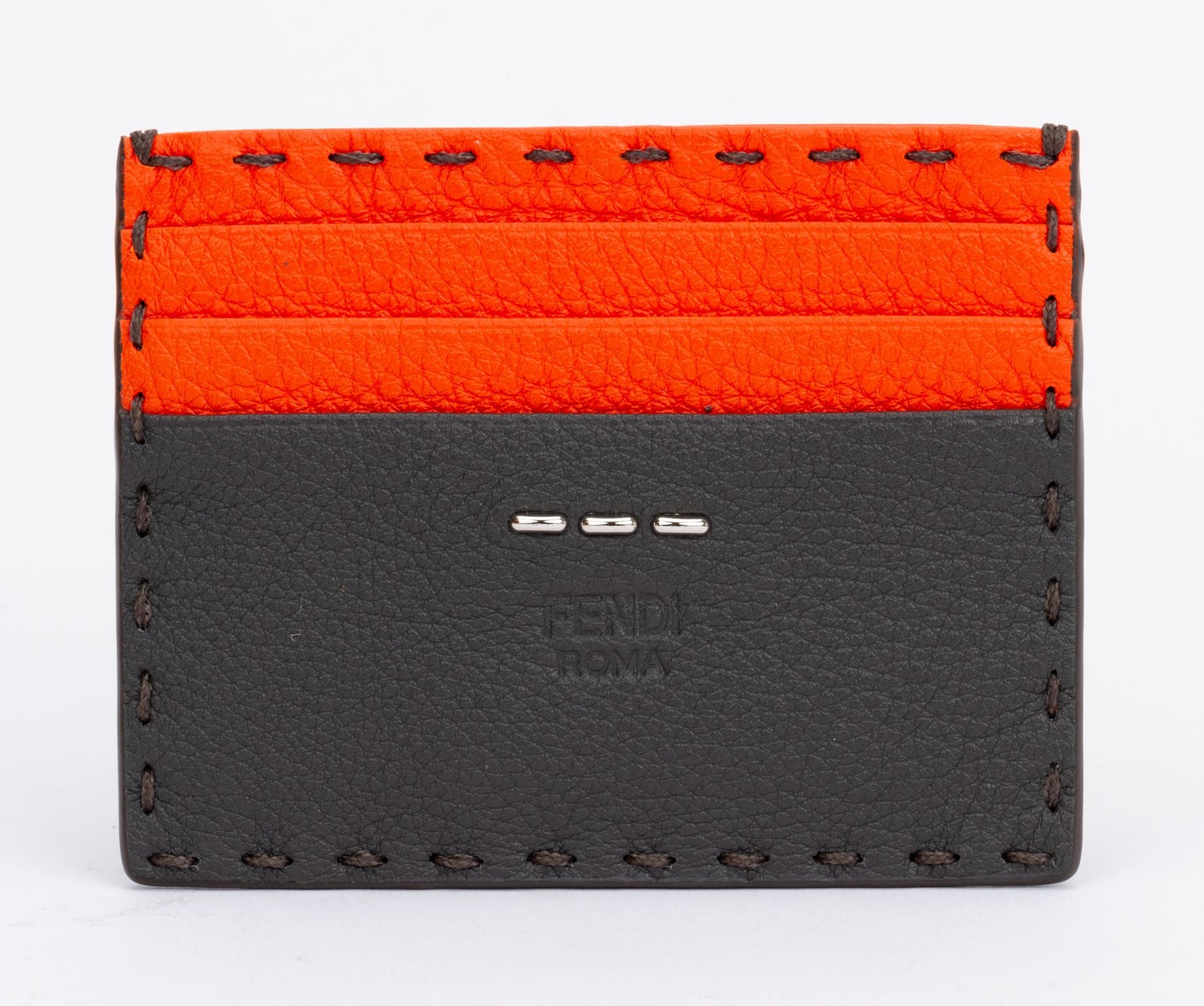 Fendi new Selleria hand made 2 tone credit card case. Includes tag, original box and dust cover.