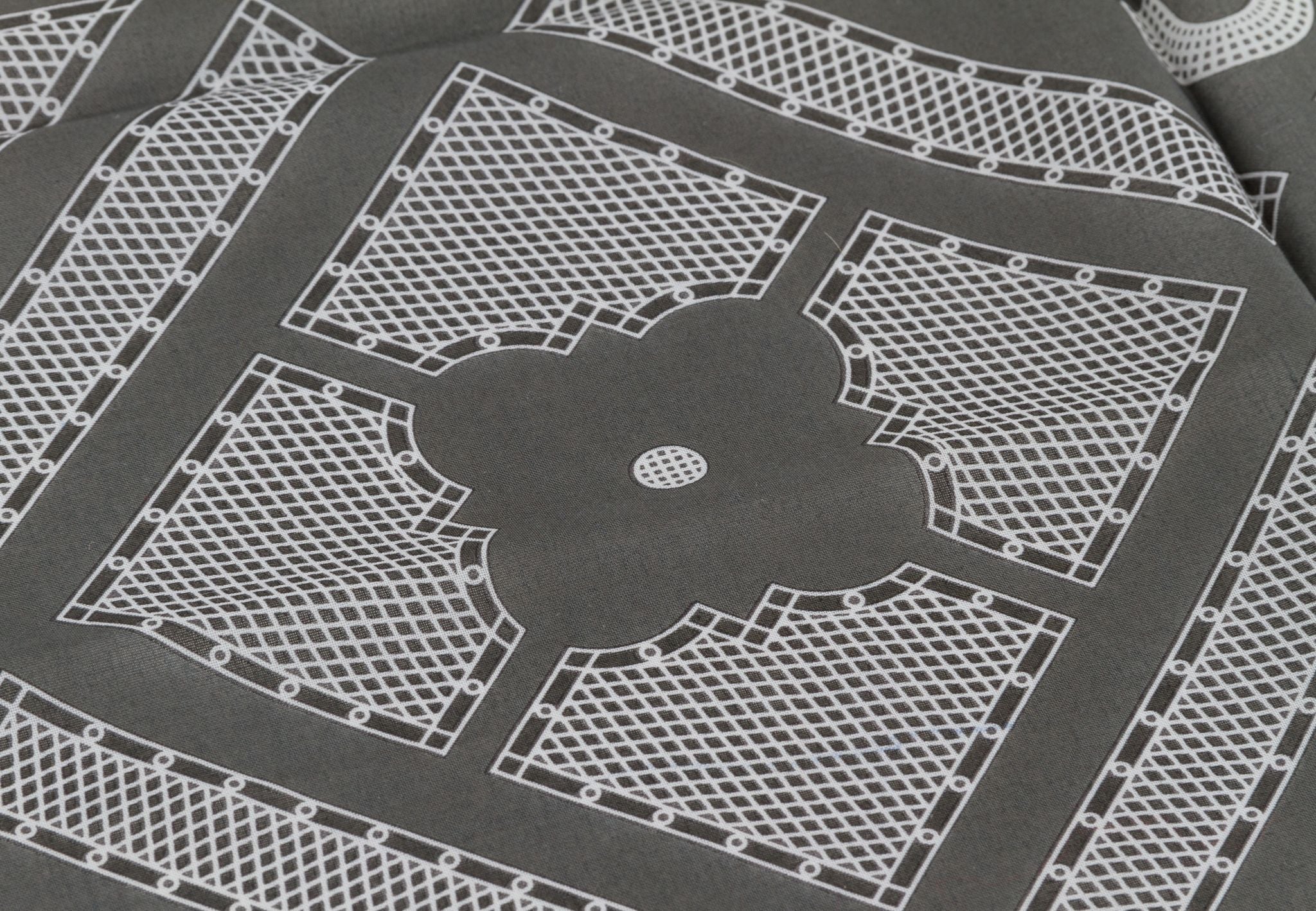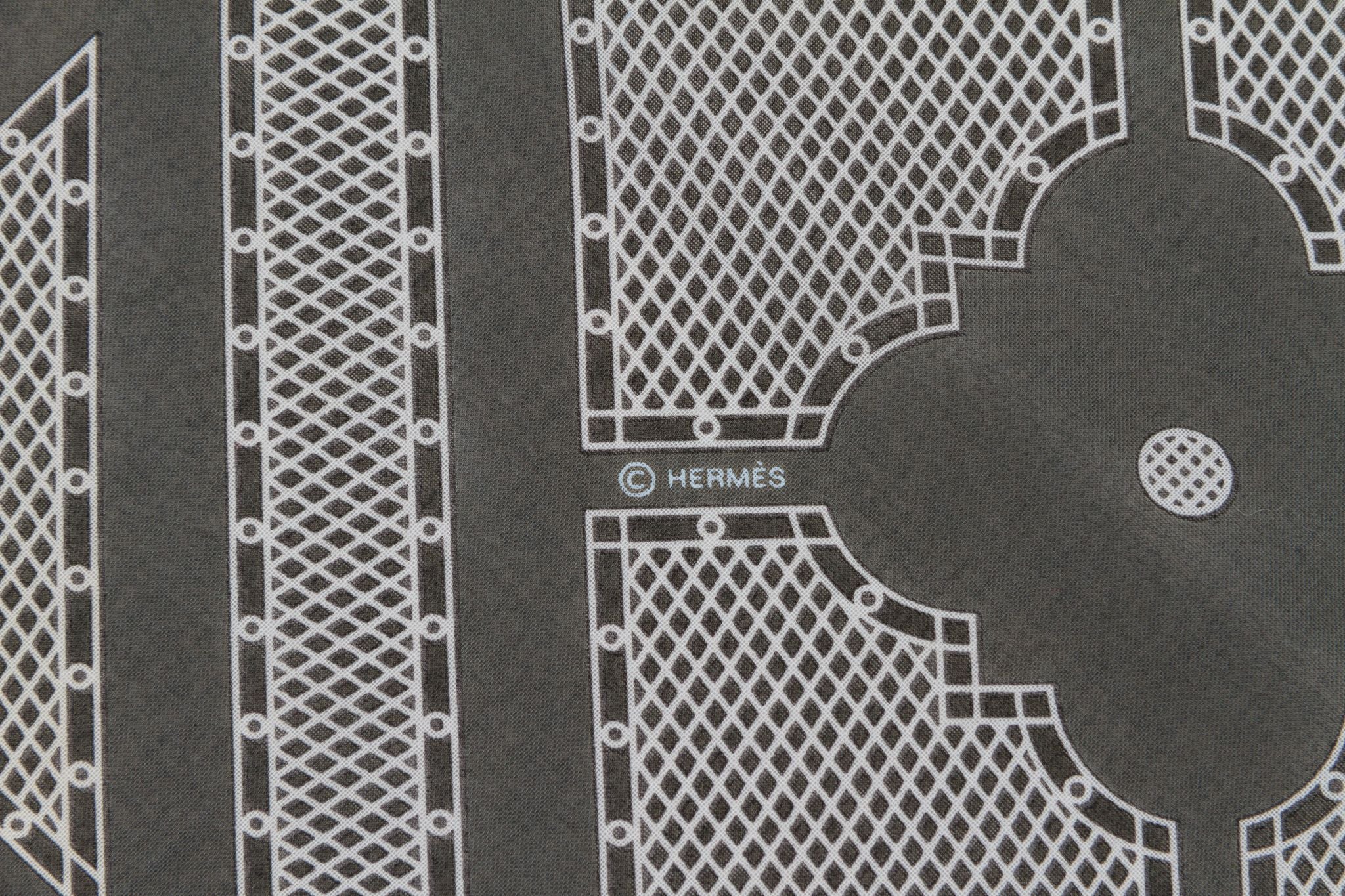 Hermès 100% cotton geometric grey pochette with hand rolled orange piping. Excellent condition.