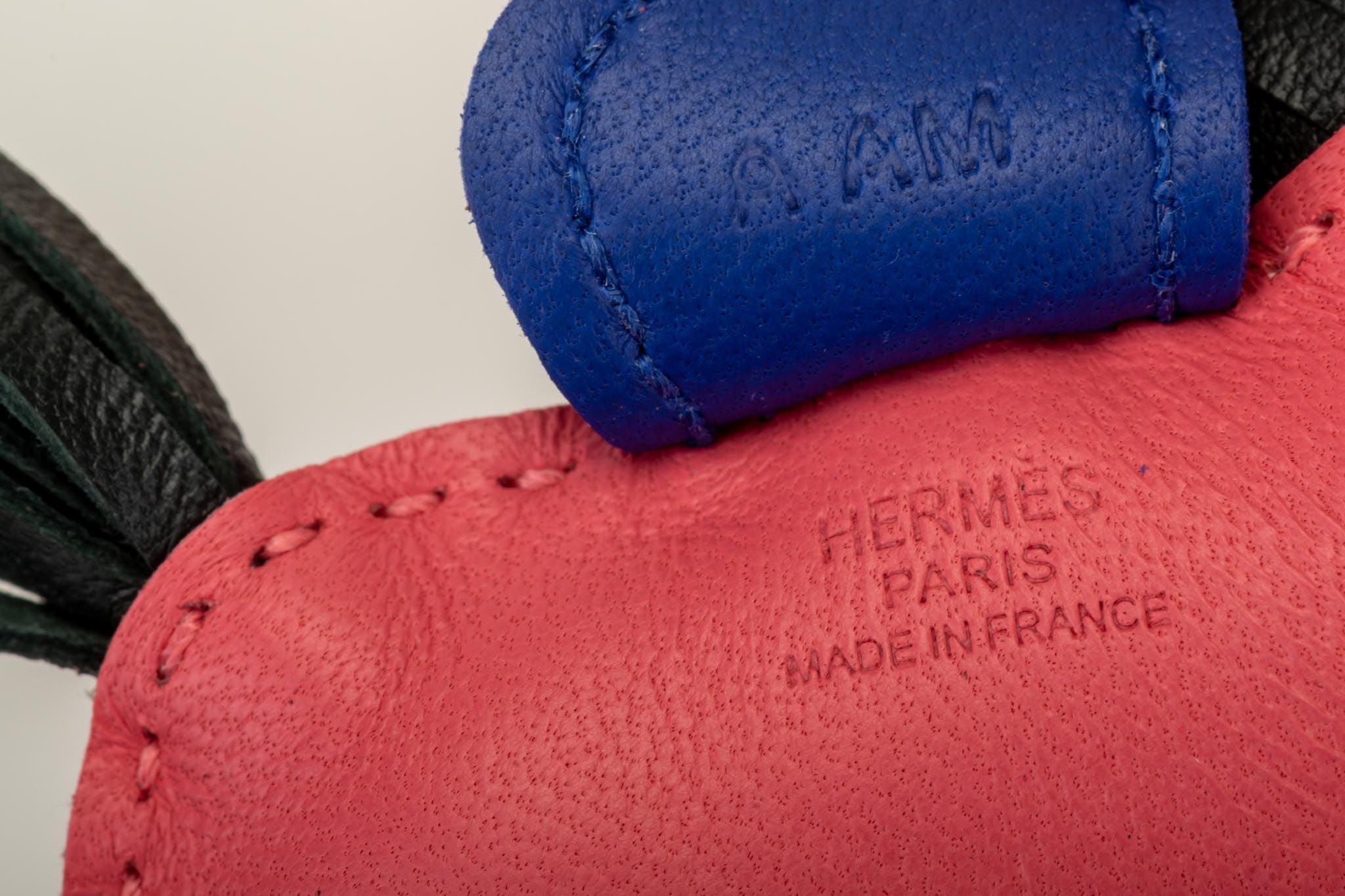 Hermès PM Grigri Rodeo collection horse charm. Rose azalee, blue and black. Includes original box and ribbon.