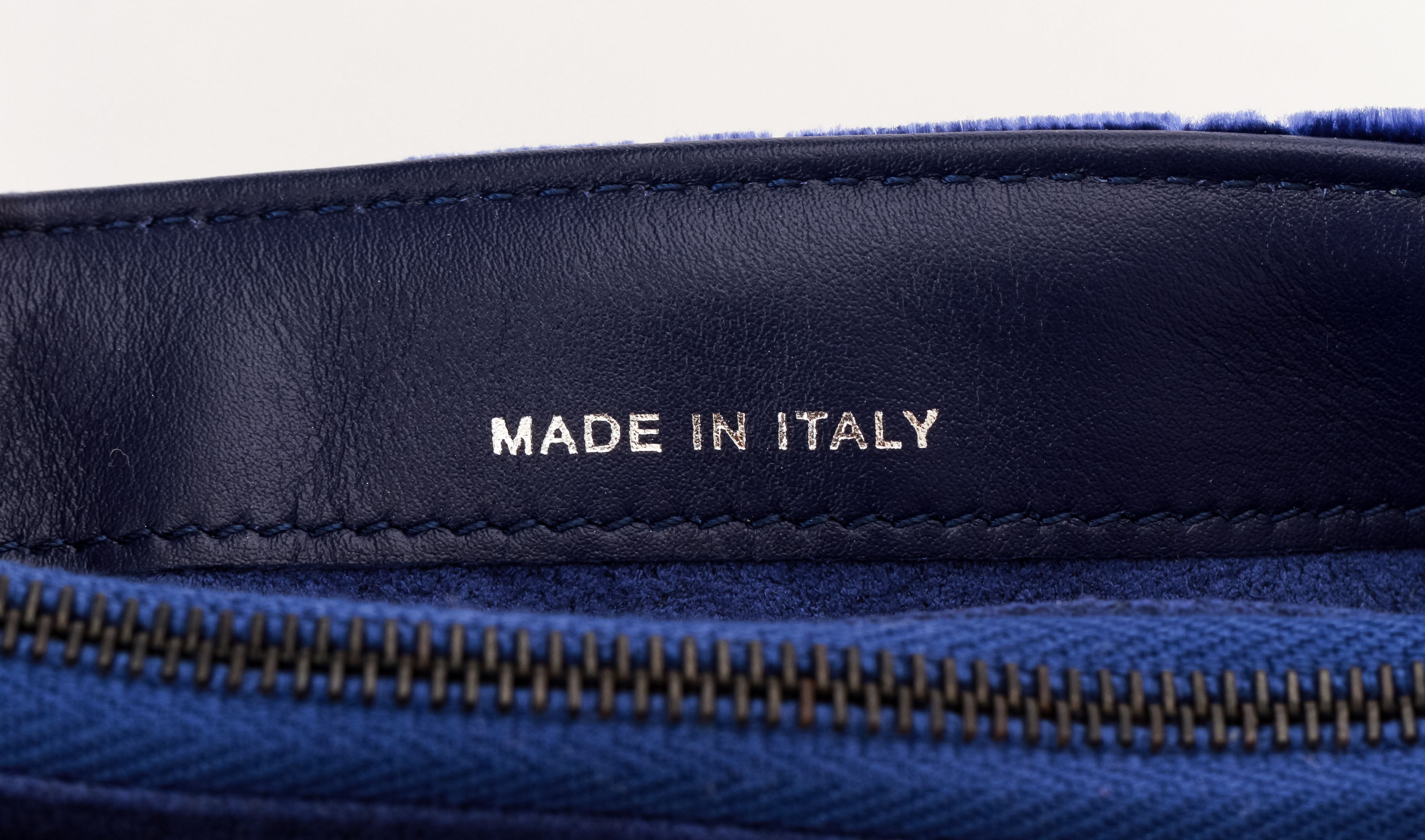 Chanel blue velvet mini cross body bag. Shoulder strap 23". Comes with hologram, id card and origianl dust cover. Collection 20, 2014/2015. Mint condition.