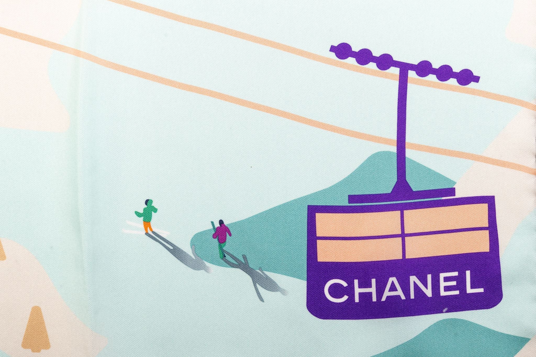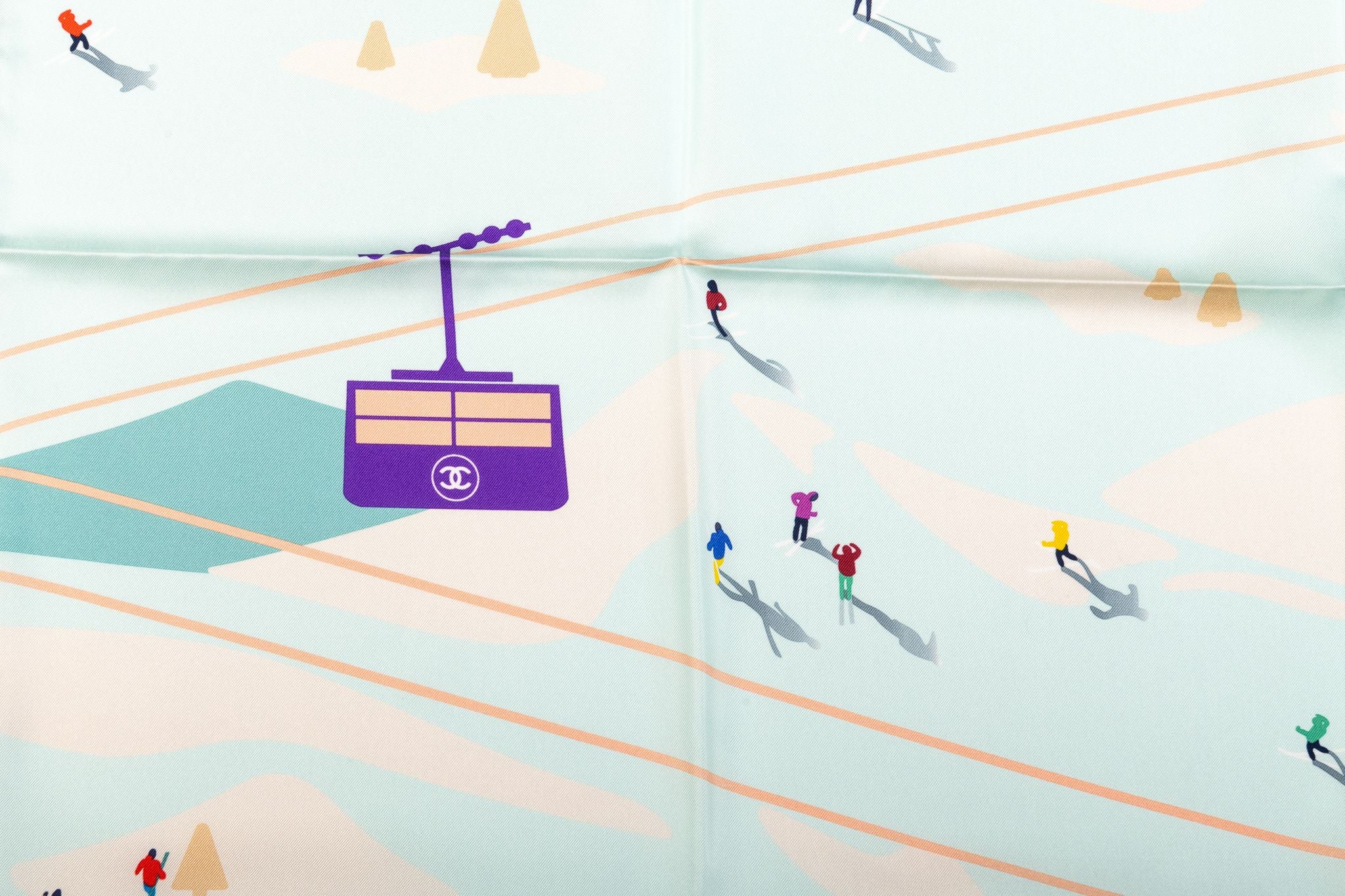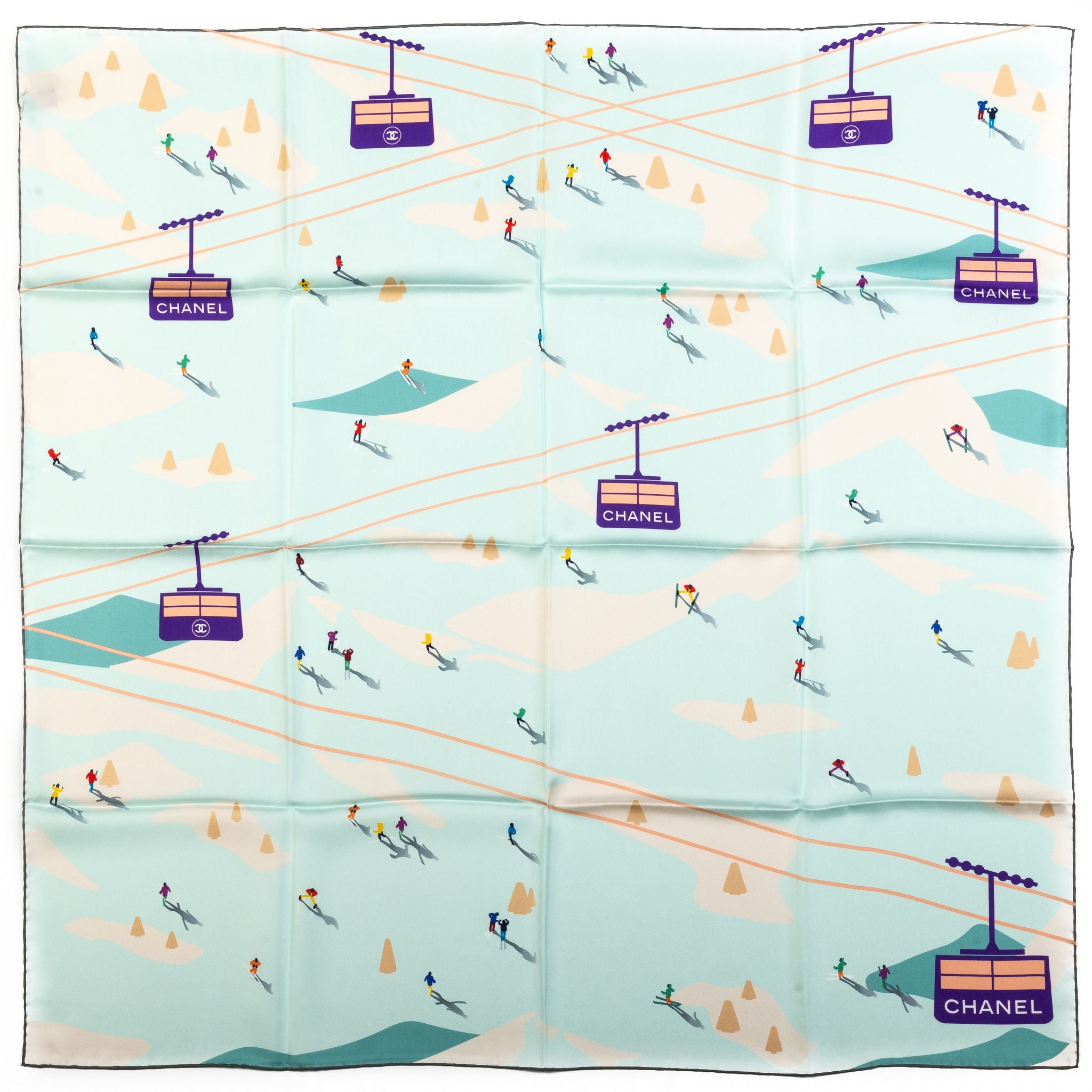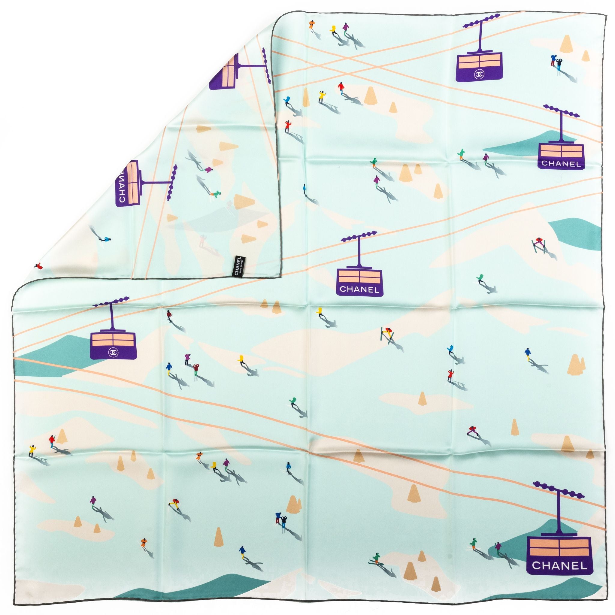 Chanel brand new mountains design 100% silk scarf in seafoam and purple combination . Hand rolled edges. Care tag.
