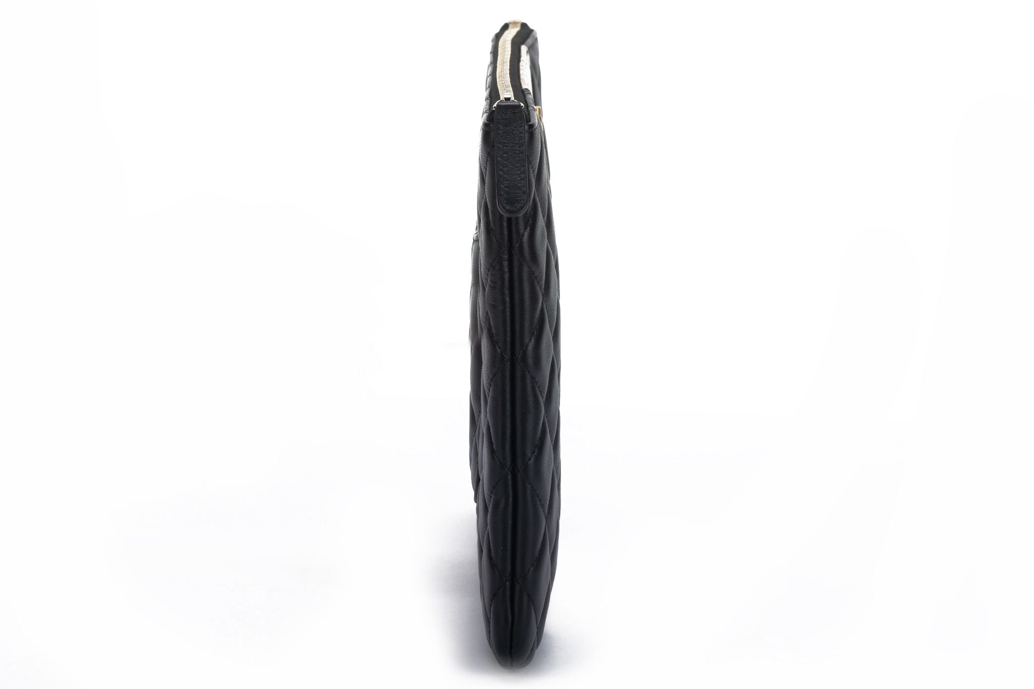 Chanel new black quilted and gold croc embossed leather clutch. Collection 28. Comes with hologram, di card, dust cover and box.