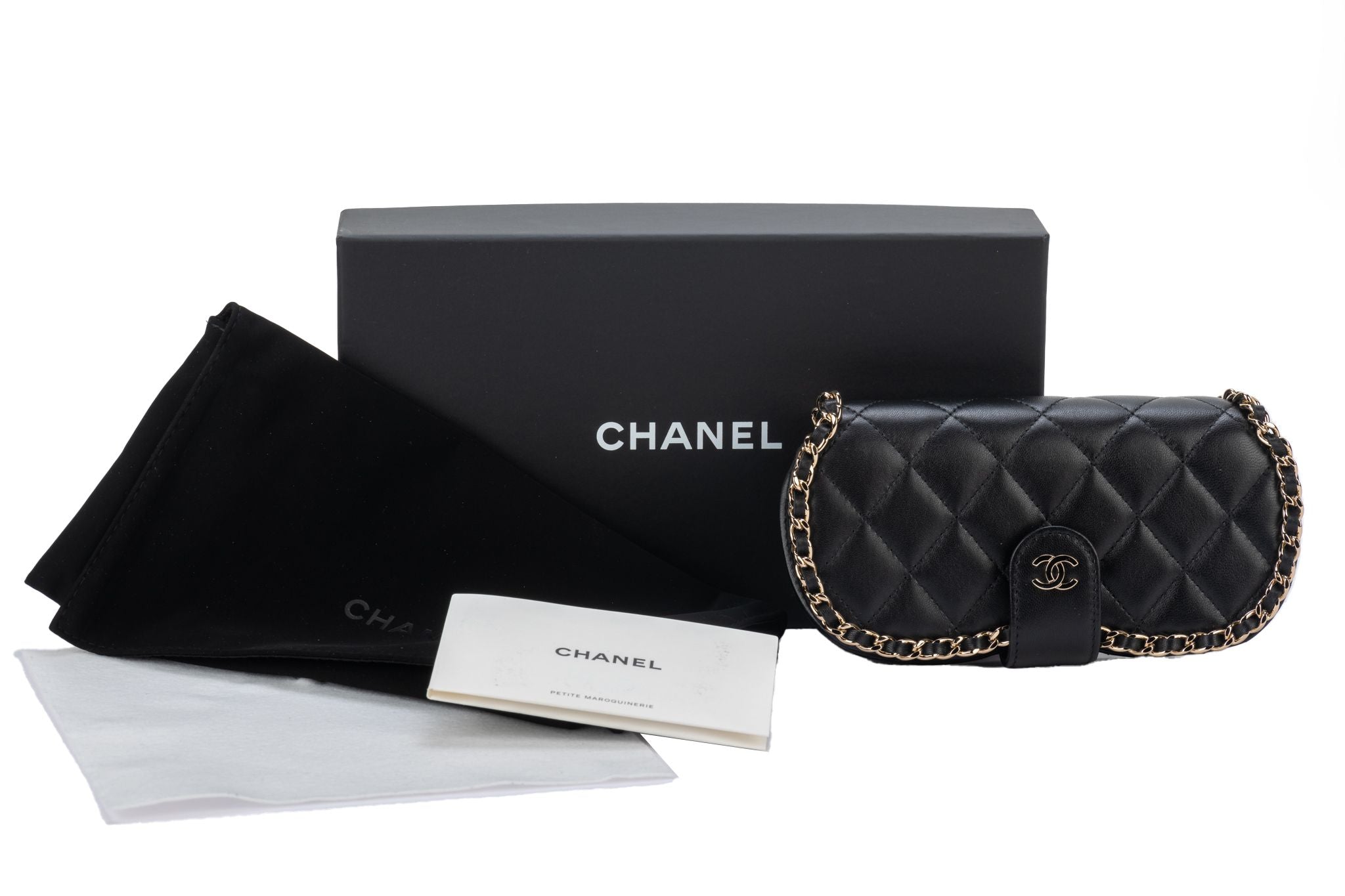 Chanel new rare and collectible black quilted sunglasses case. Can be worn cross body. Chain 22” detachable. Collection 32. Comes with hologram, booklet, dust bag and original box.