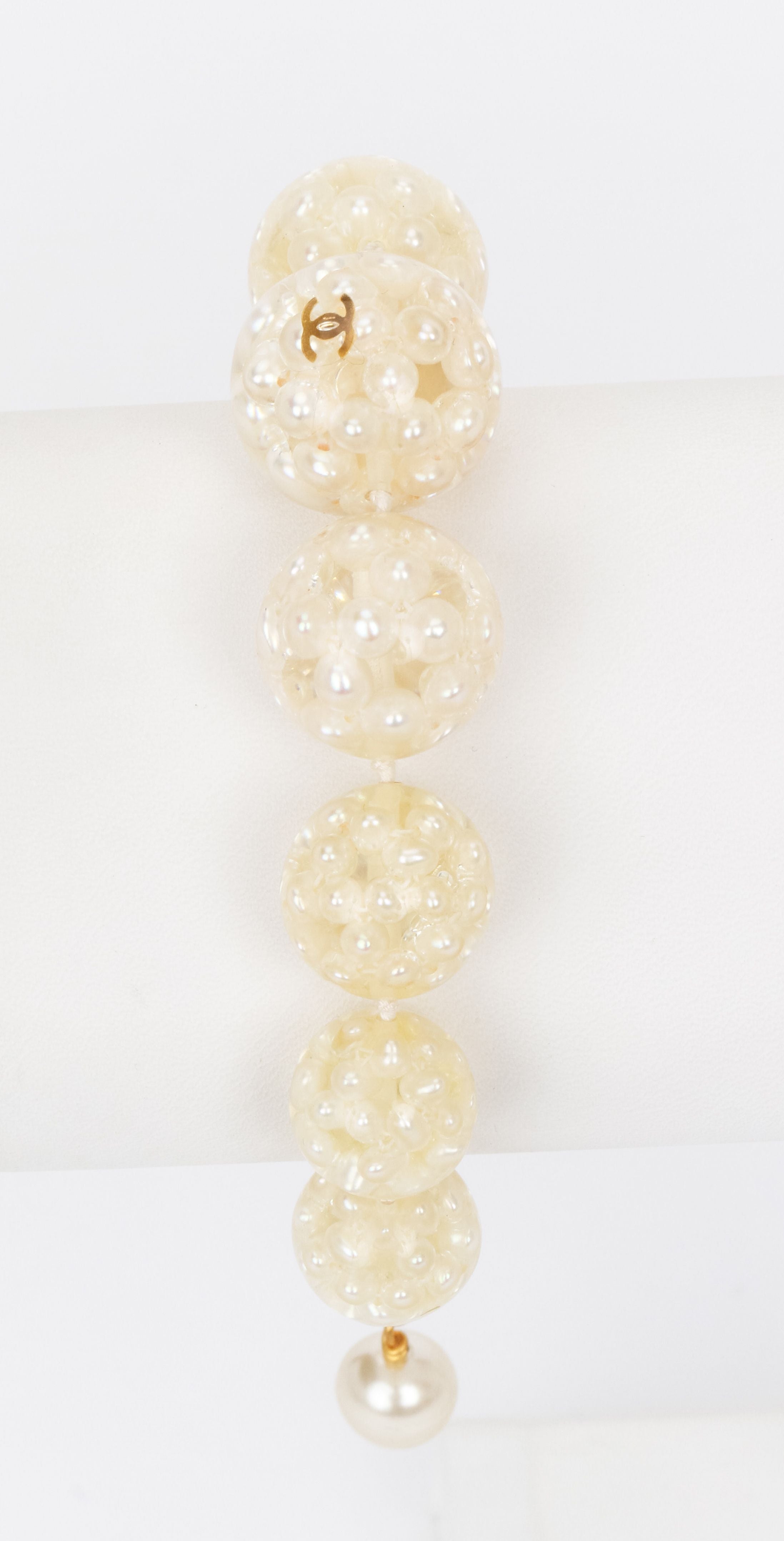 Chanel bracelet with nine spheres, each filled with micro pearls. adjustable length