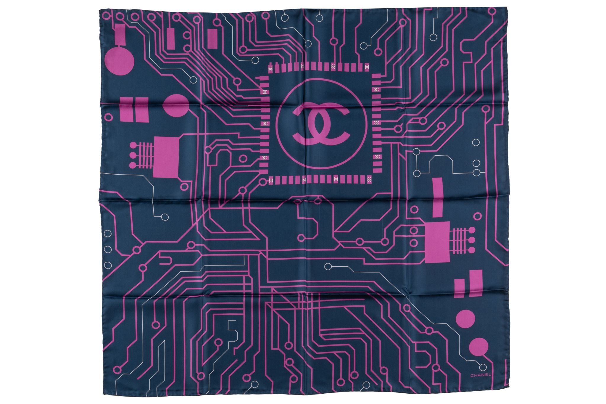 Chanel "Echarpe en Soie" Silk Scarf is in 1005 silk and violet. Brand new in unused condition.