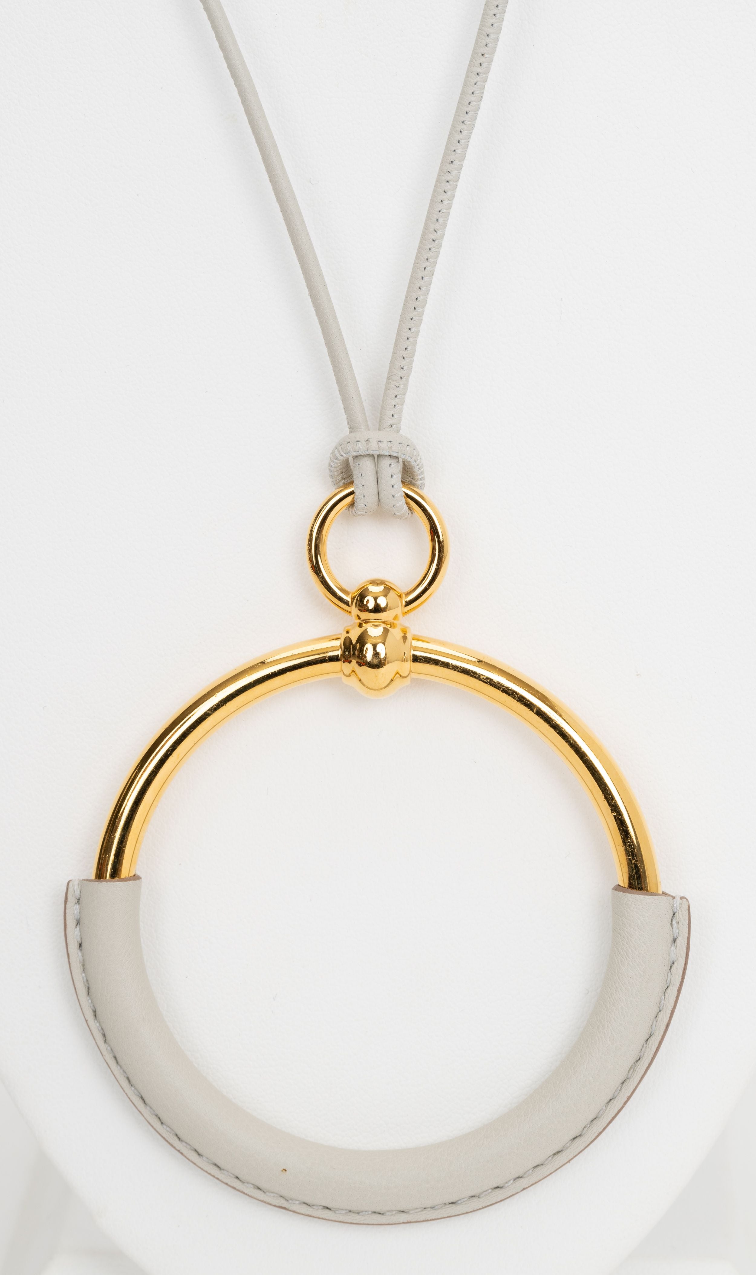 The Hermès White Leather Loop Pendent Necklace is a timeless statement piece. Features a simple but elegant pendant, D 3". New with original dust cover .