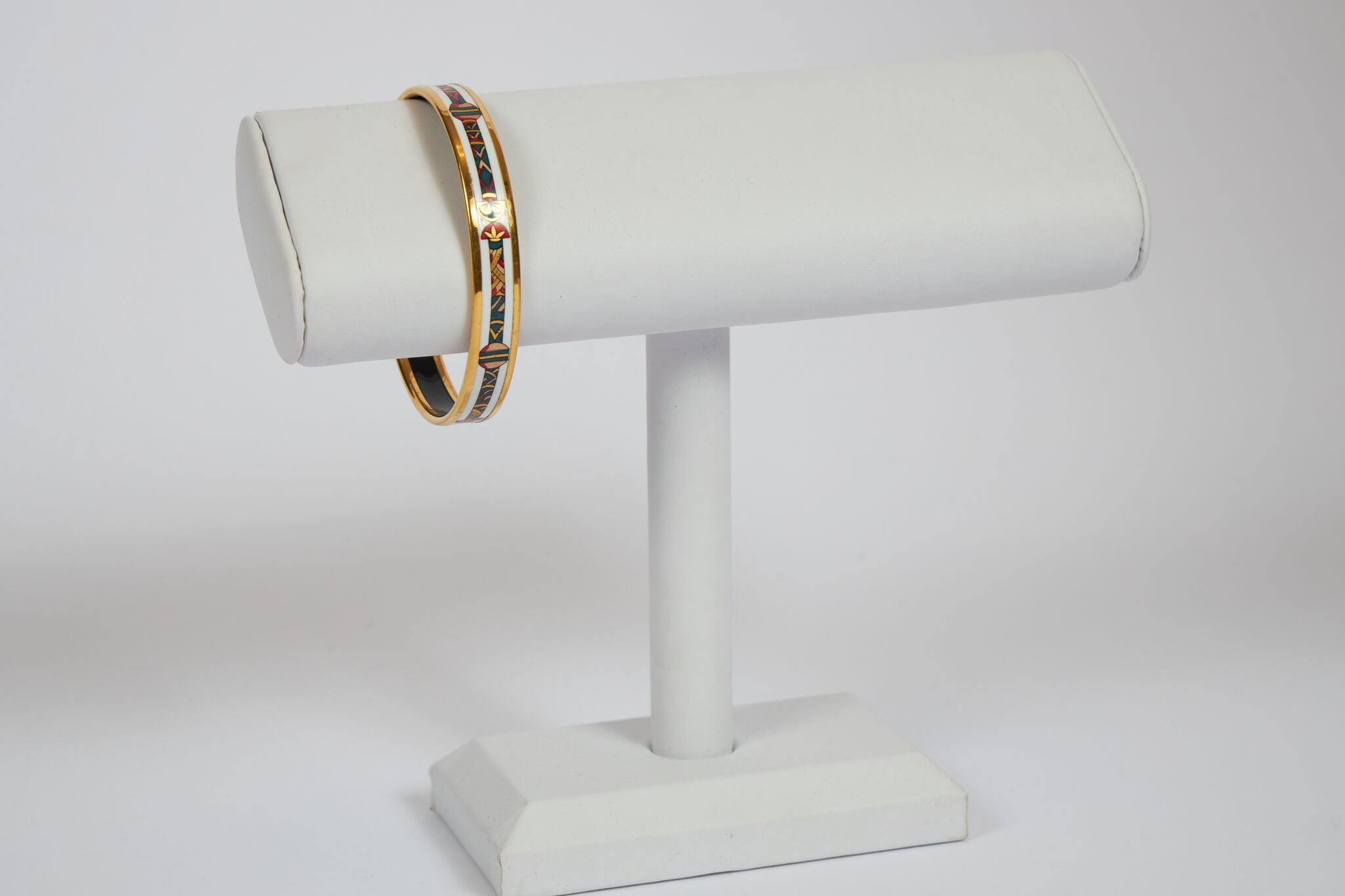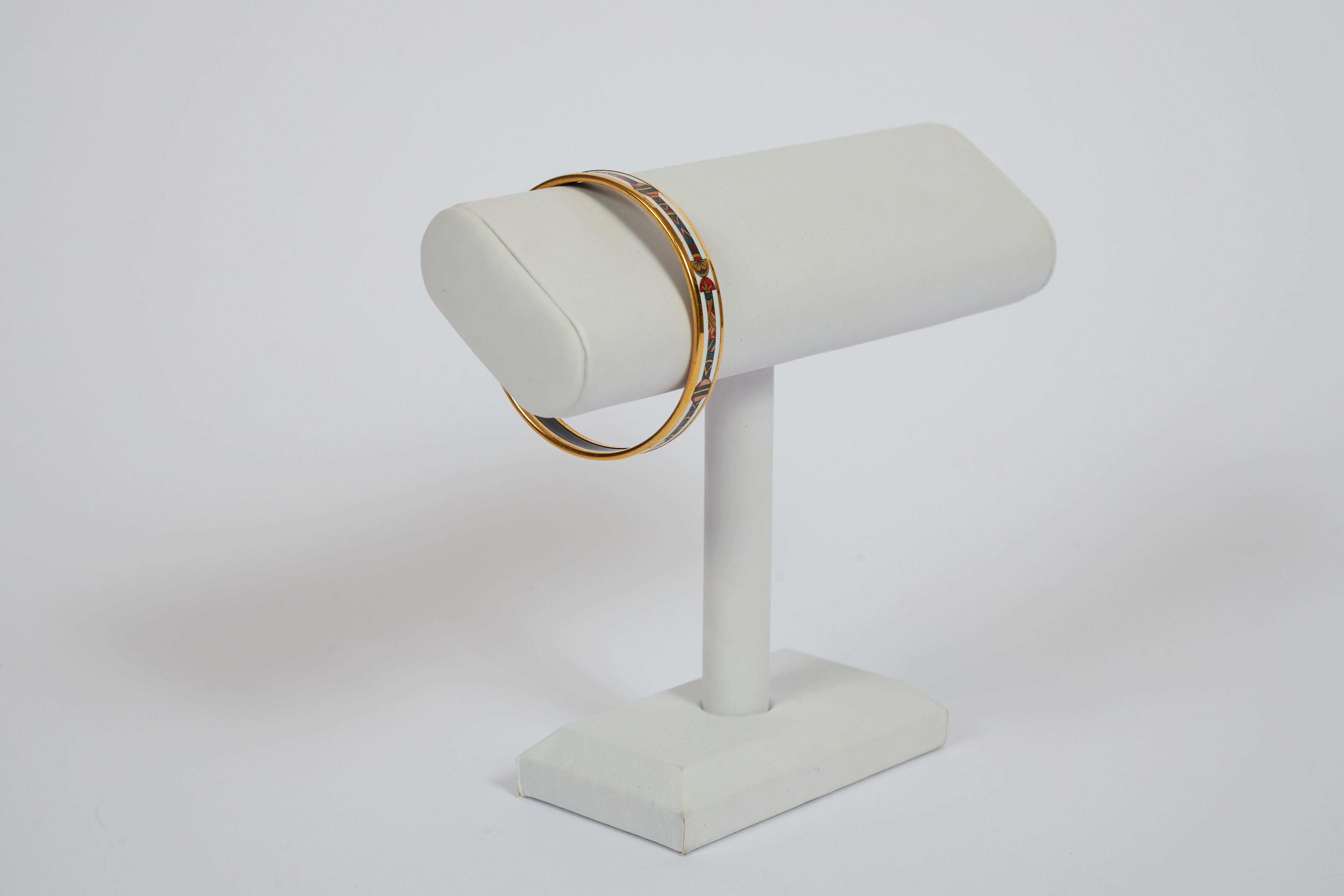 Hermès thin white and green enamel and goldtone bangle. Comes with velvet pouch. Interior, 7.85" circumference.