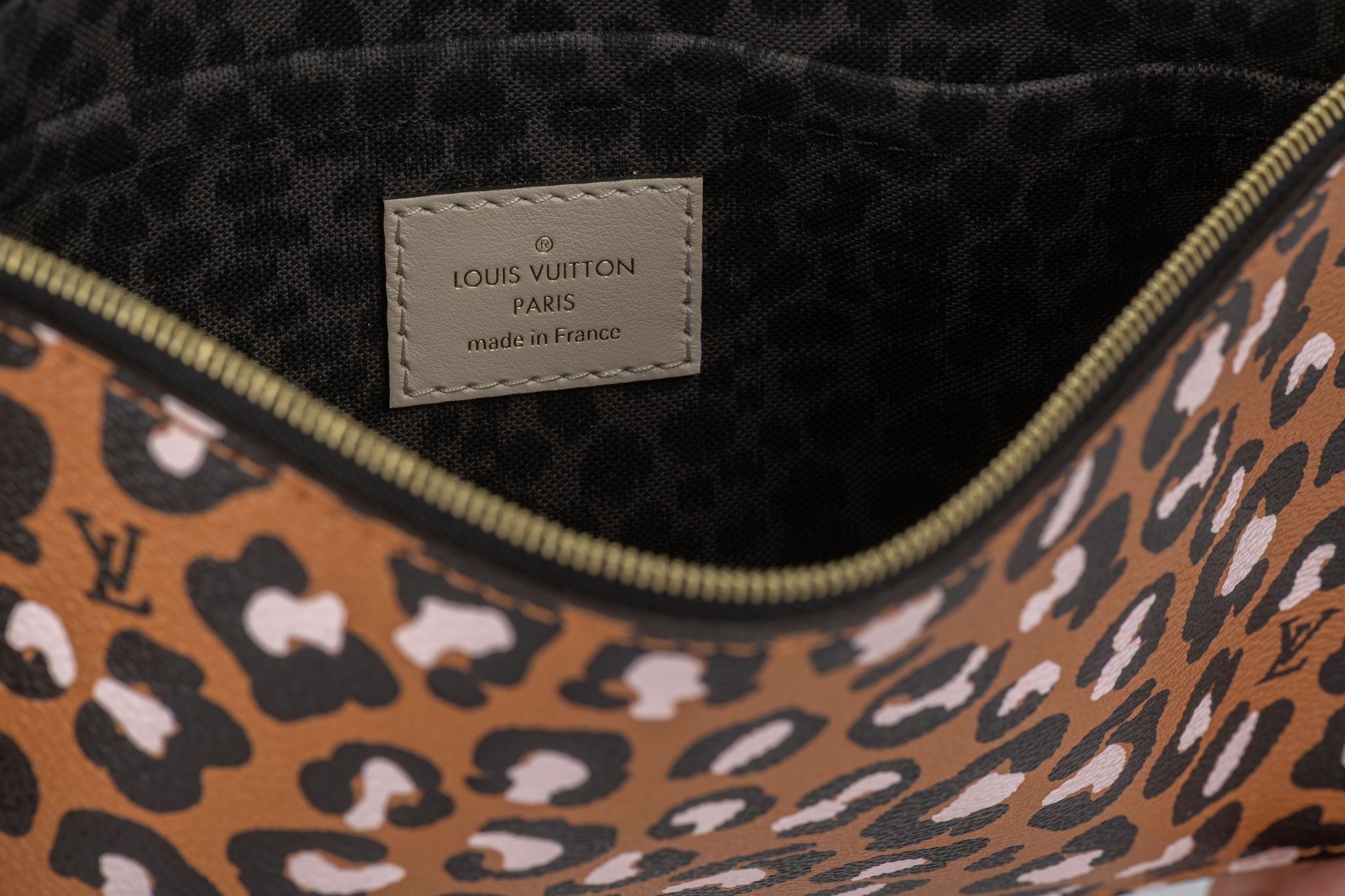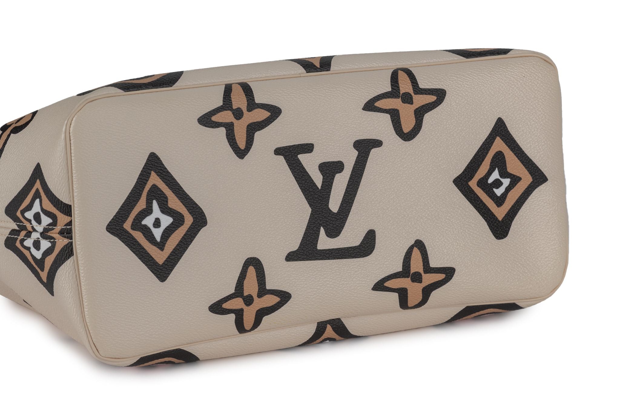 This Louis Vuitton `Wild At Heart'' Neverfull GM tote in cream monogram coated canvas with golden tone hardware, removable leopard print pouch, and cream leather top strap handles. Handles drop 8". Comes with original dustbag and box.