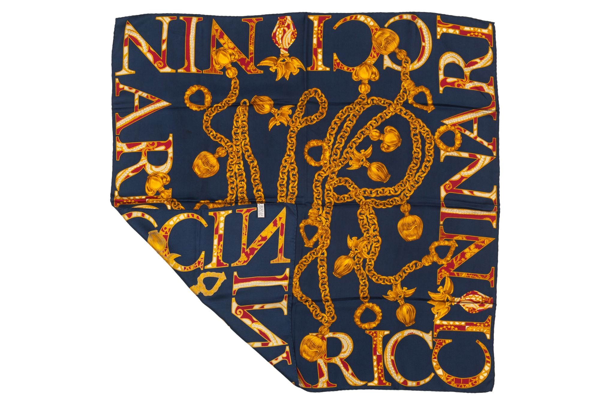Nina Ricci Vintage Silk Scarf in Black/Gold. Item is in excellent condition.