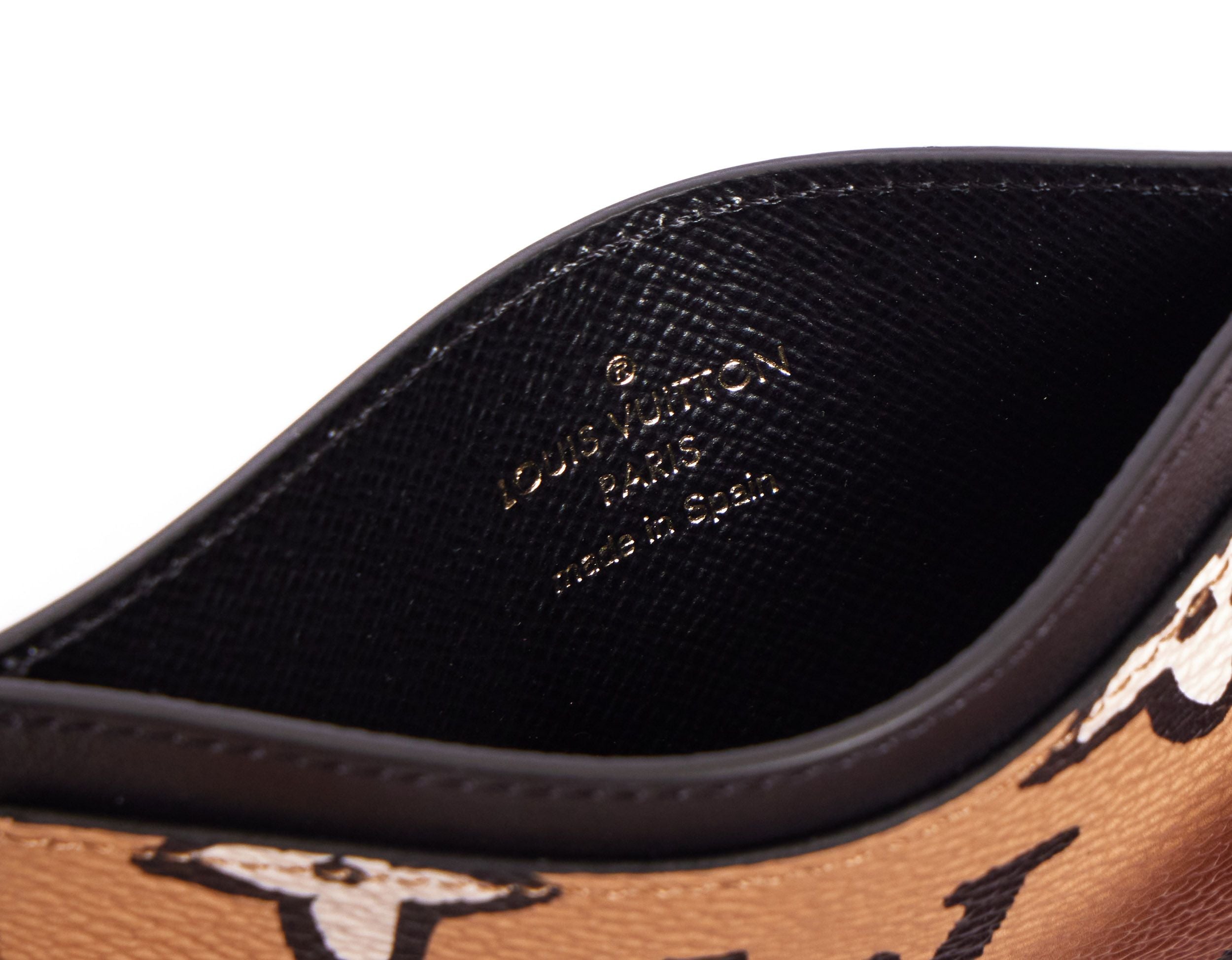 Special edition monogram canvas card holder, part of the Wild at Heart seasonal animation. Black cowhide leather lining with 3 card slots. Comes with original box and dust cover