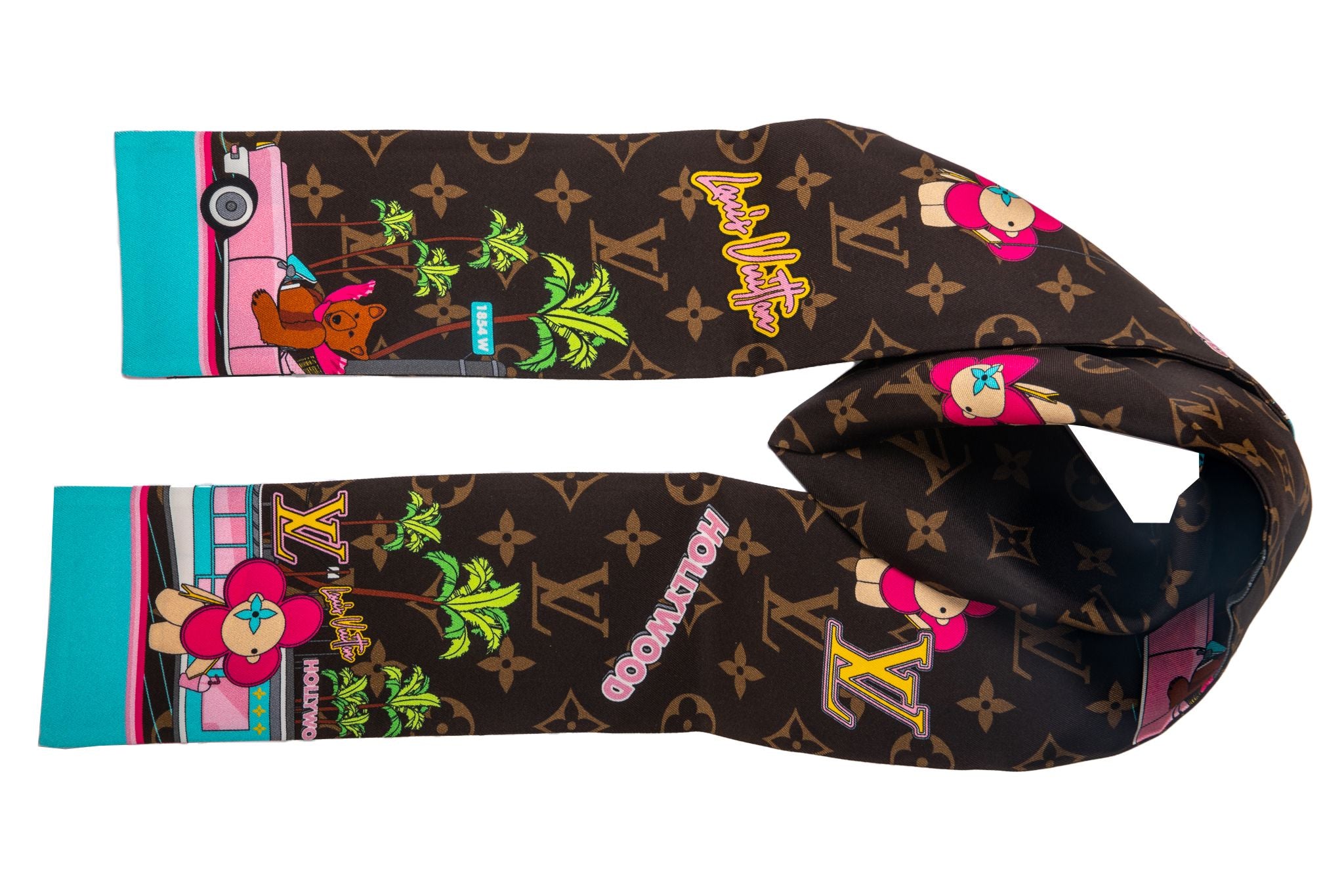 Louis Vuitton Christmas 2021 silk bandeau with Vivienne in Hollywood design. Brand new in original box .