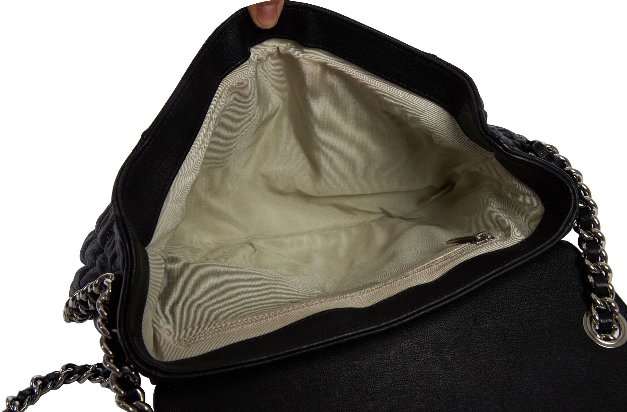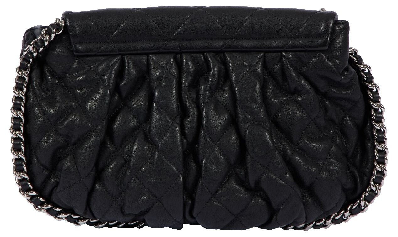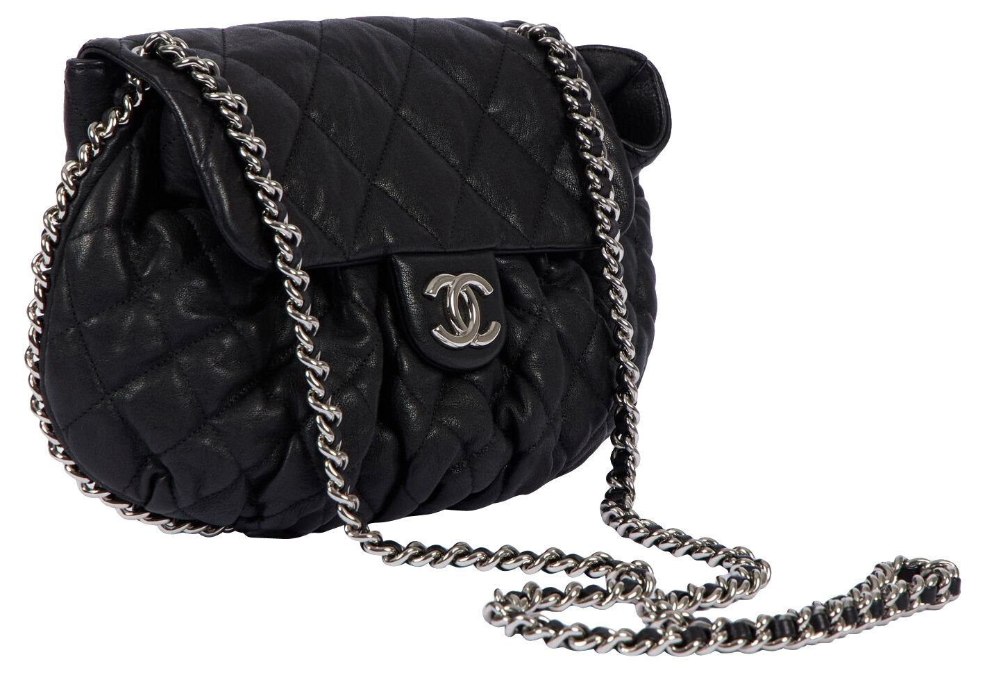 Chanel medium black quilted chain-around cross-body bag. Silver-tone hardware. Comes with hologram and dust cover. Minor wear.