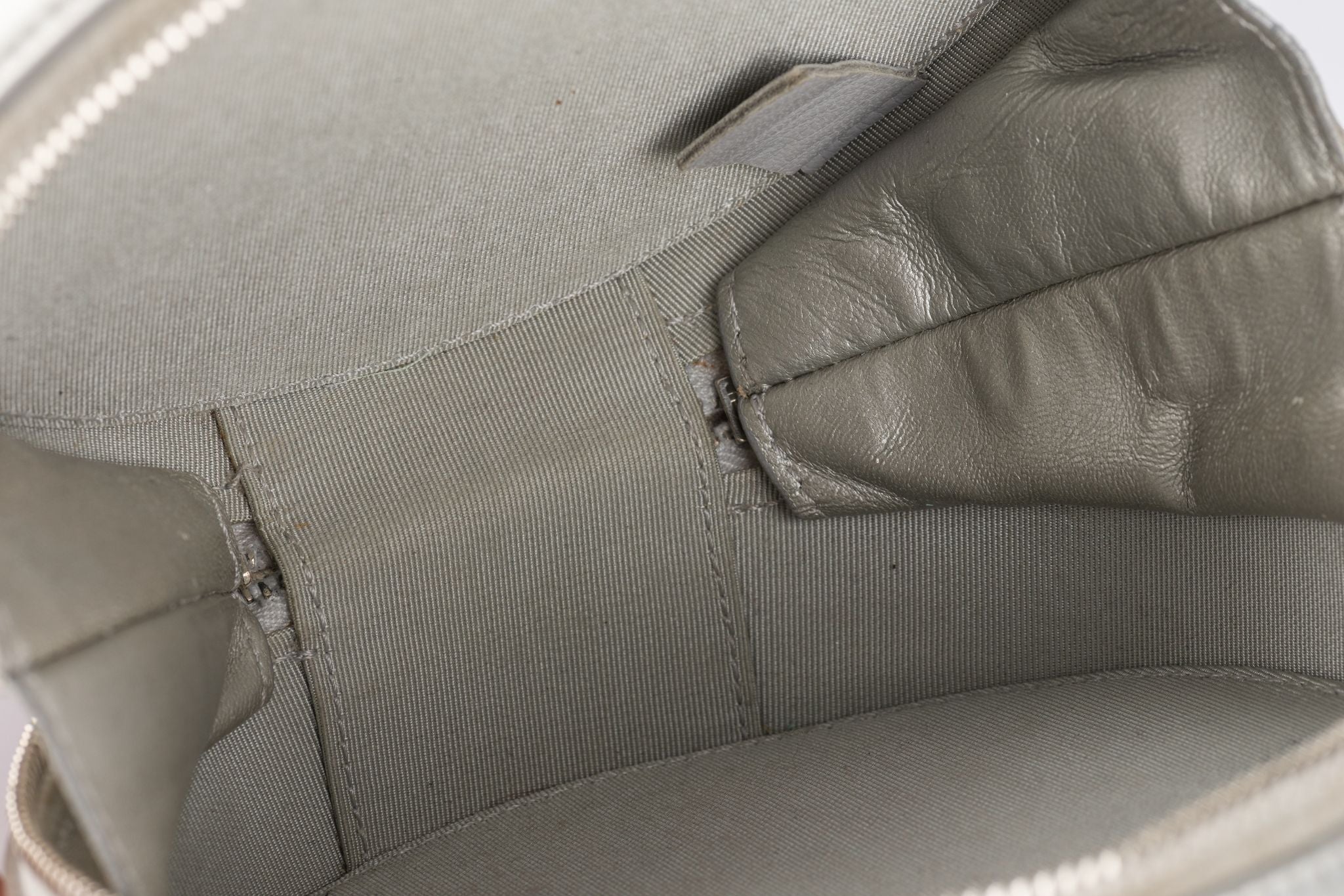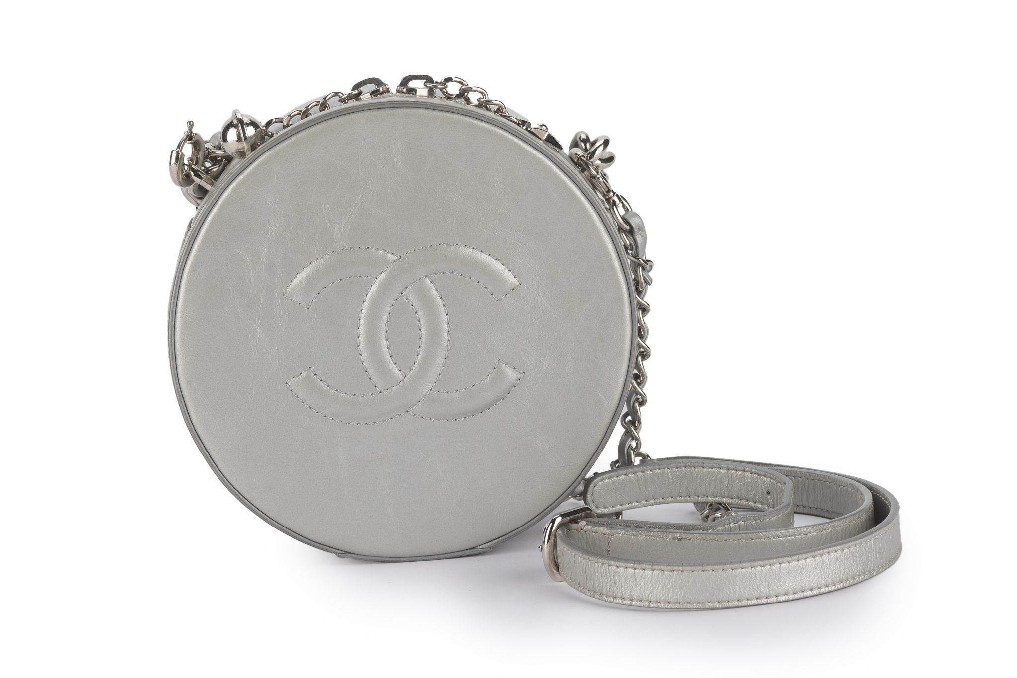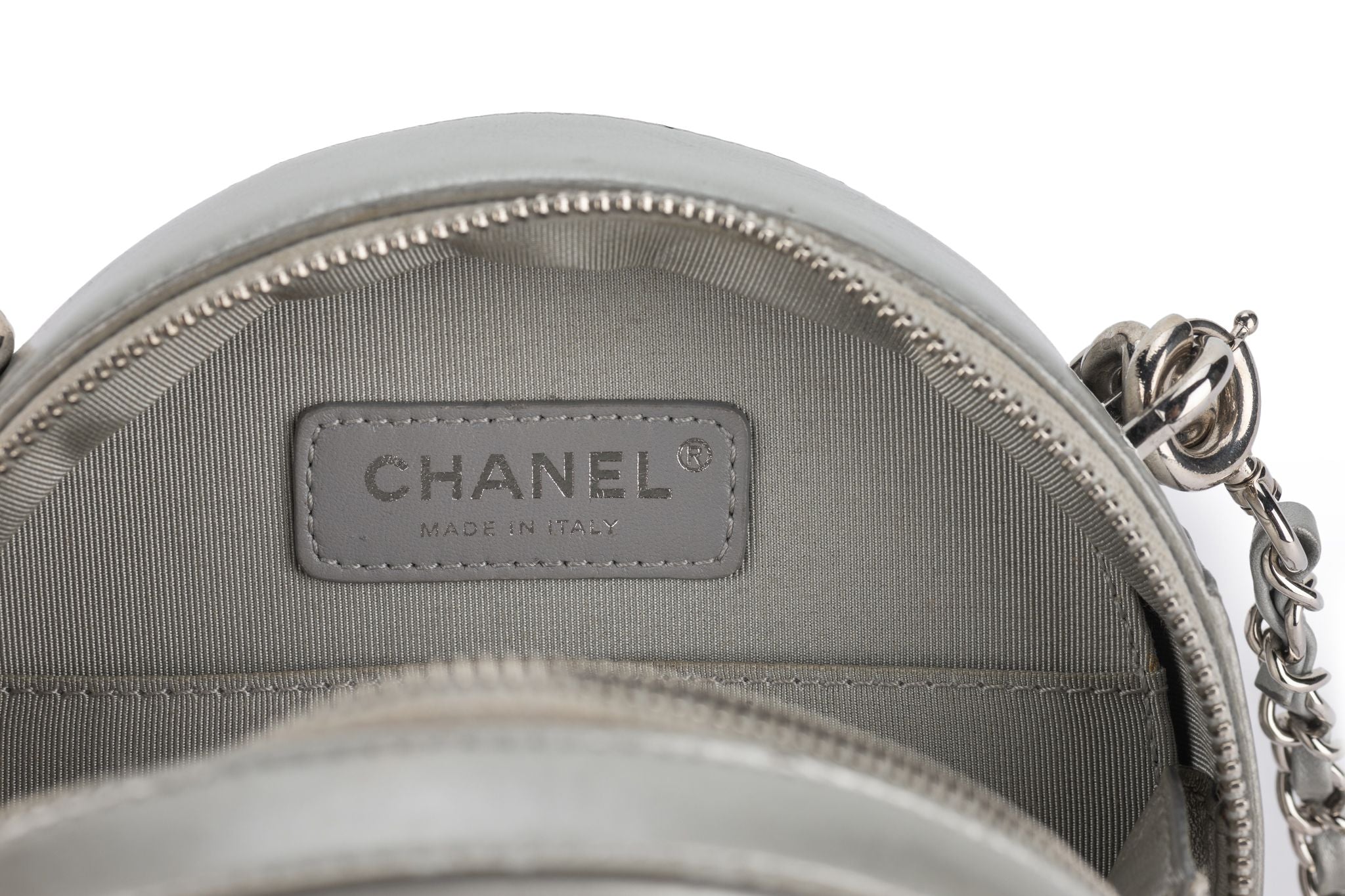 The Chanel Glazed Round As Earth Evening clutch with silver hardware exudes timeless elegance, it is perfect for upscale evenings. Its glazed finish and quilted back, and chic round design make it a sophisticated statement piece for any outfit. It features a detachable and adjustable shoulder strap that lets it be worn crossbody. Comes with an original dust cover. Handle drop 2.5“ First two numbers 25.