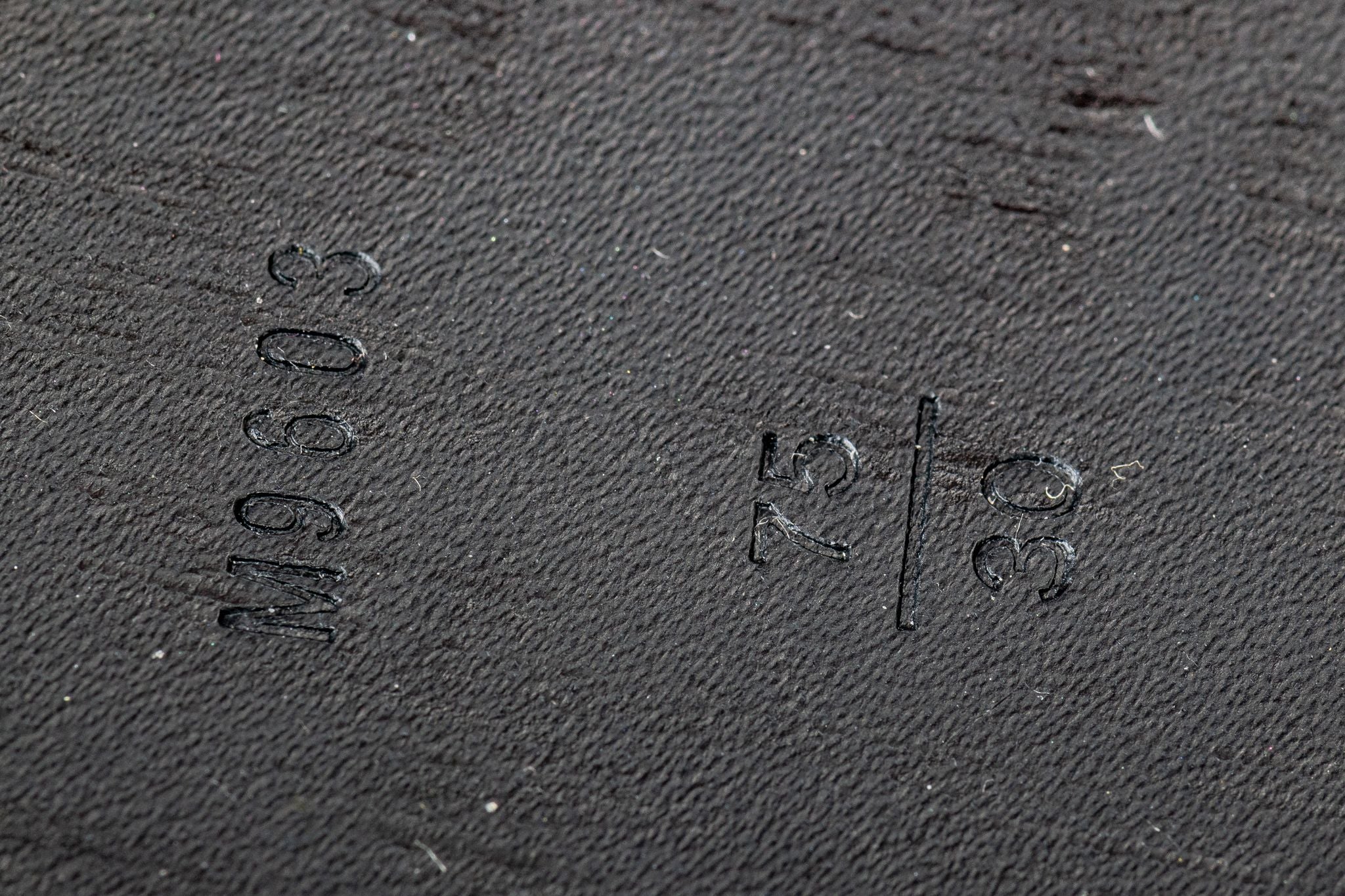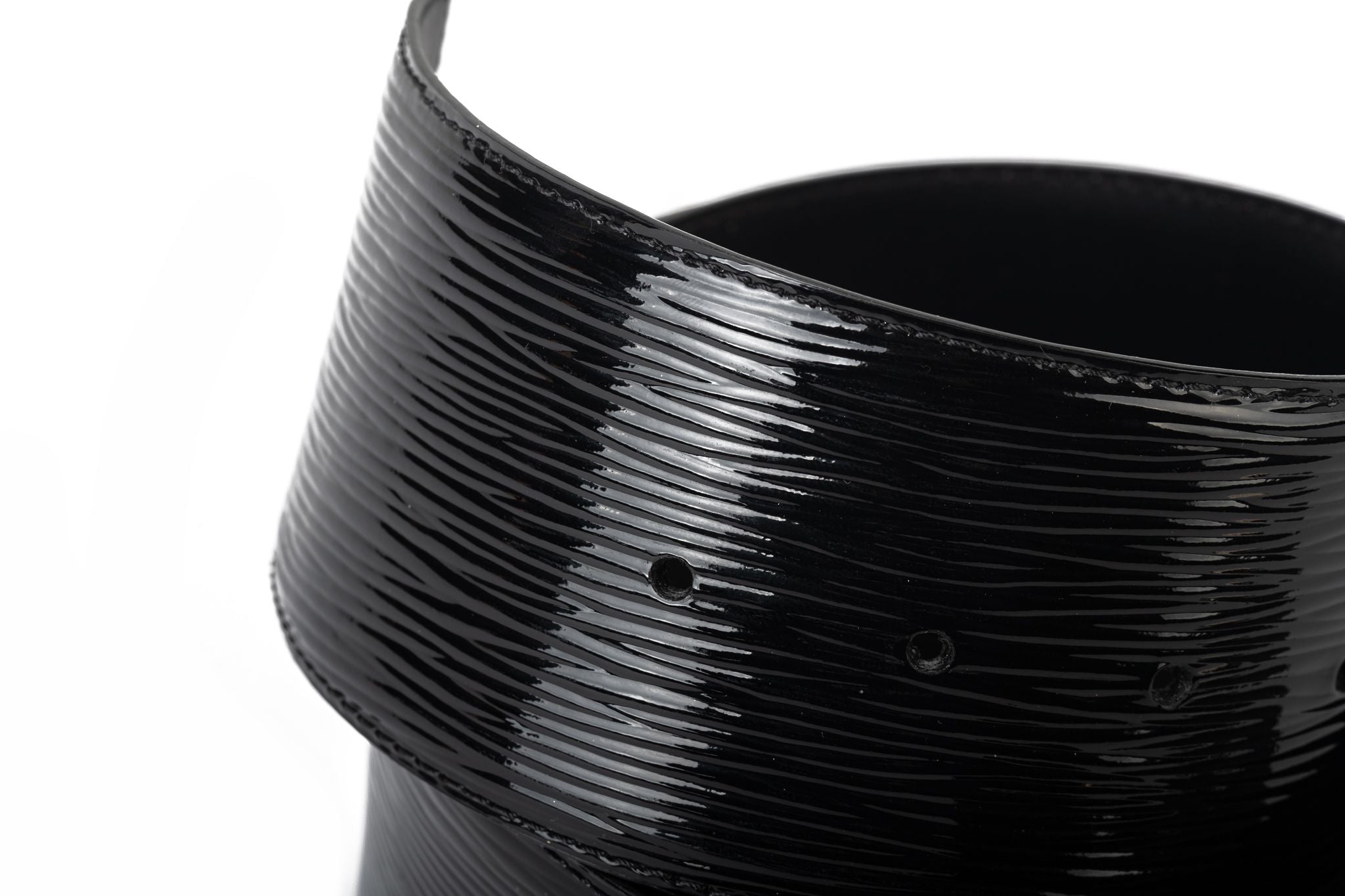 Louis Vuitton excellent condition black patent leather wide belt with oversize enamel LV buckle. 75cm/30”. Original dust cover and box.
