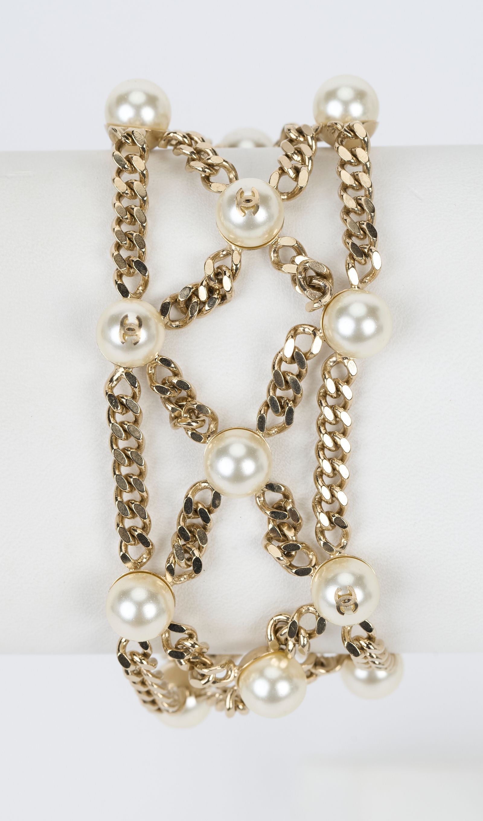 Chanel light gold chain bracelet with pearl cc logo accents.Excellent condition. Collection autumn 2018. Comes with velvet pouch.