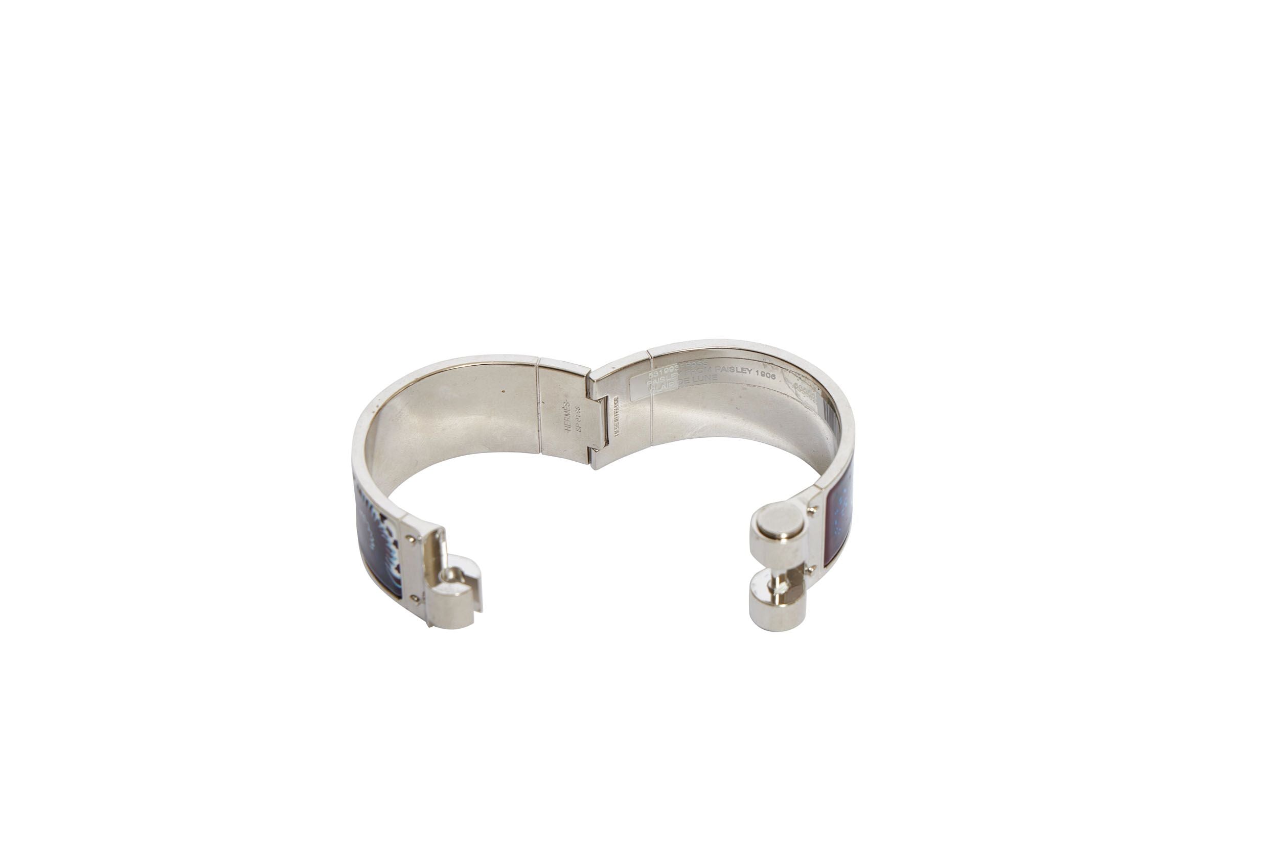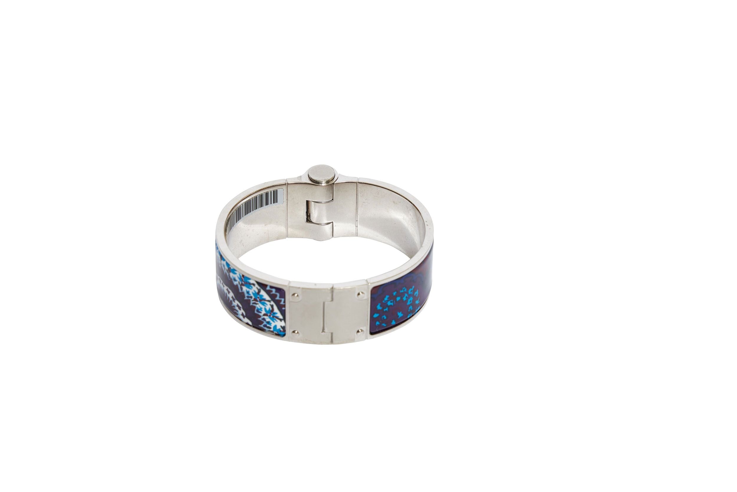 Hermes multicolor printed enamel Clic Clac bracelet with palladium tone hardware Comes with original box