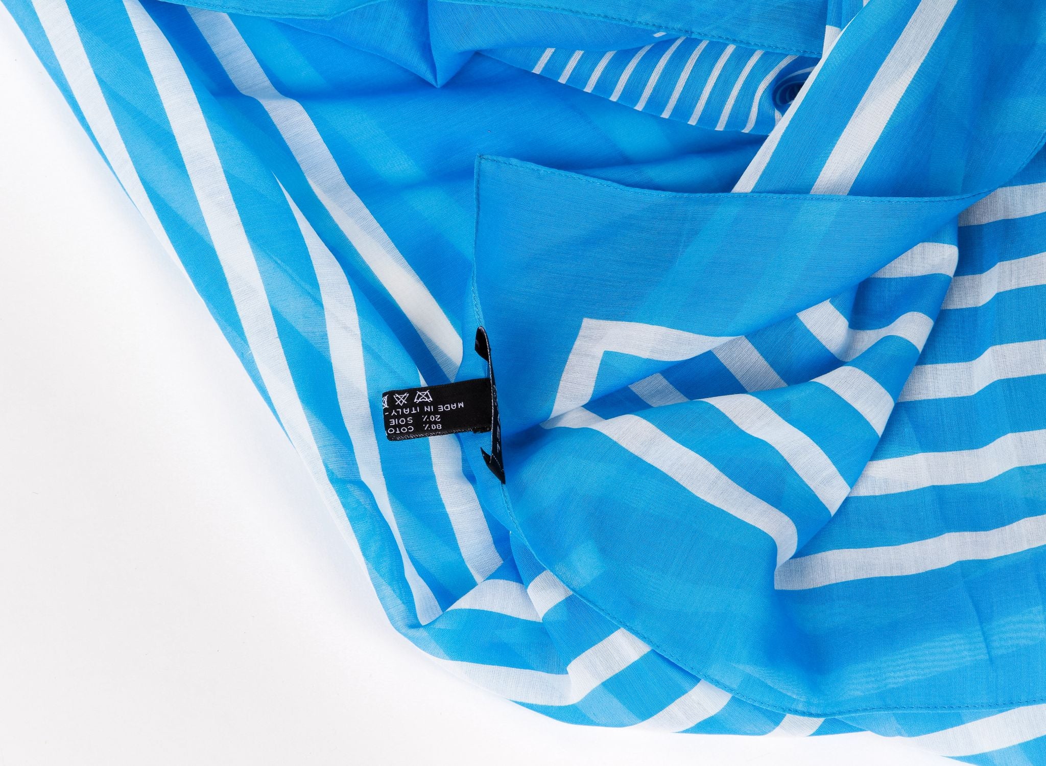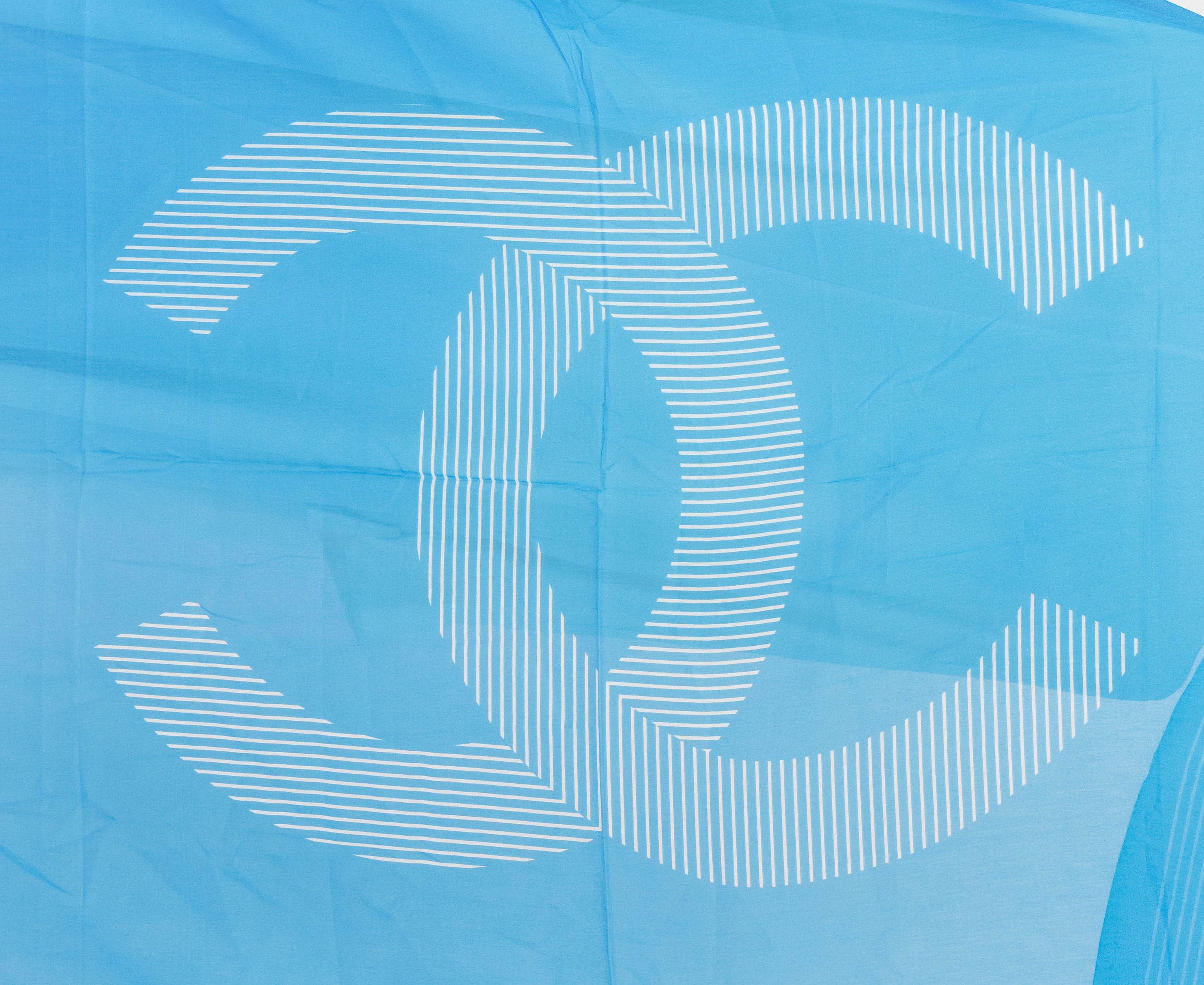 Chanel new turquoise and white striped design sarong , 80% cotton, 20% silk, 78" x 55"