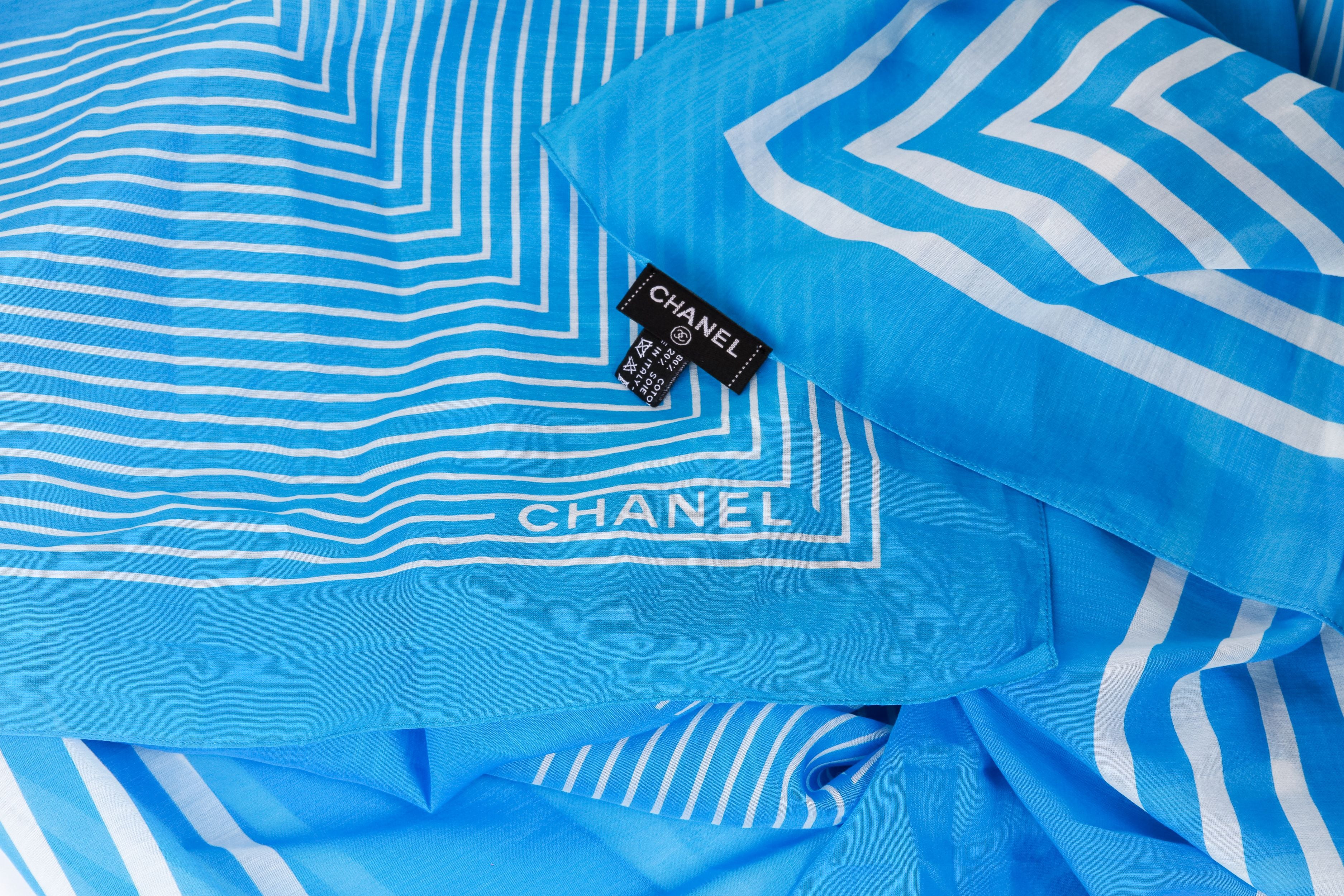Chanel new turquoise white stripe shawl