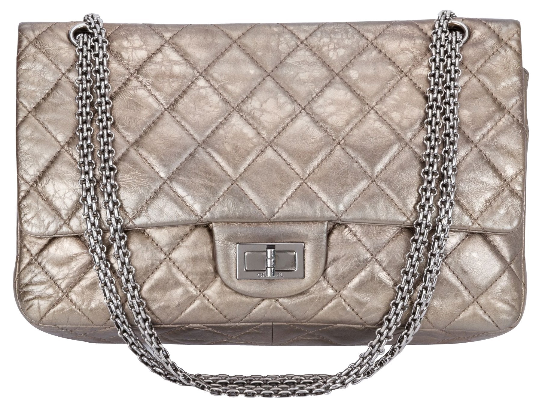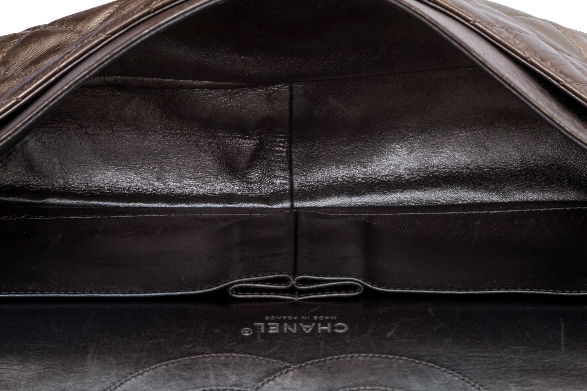Chanel dark gold metallic reissue jumbo flap with ruthenium hardware. Shoulder drop, 11"/20"L. Collection 2006/2008. Comes with hologram and original box. Minor wear.
