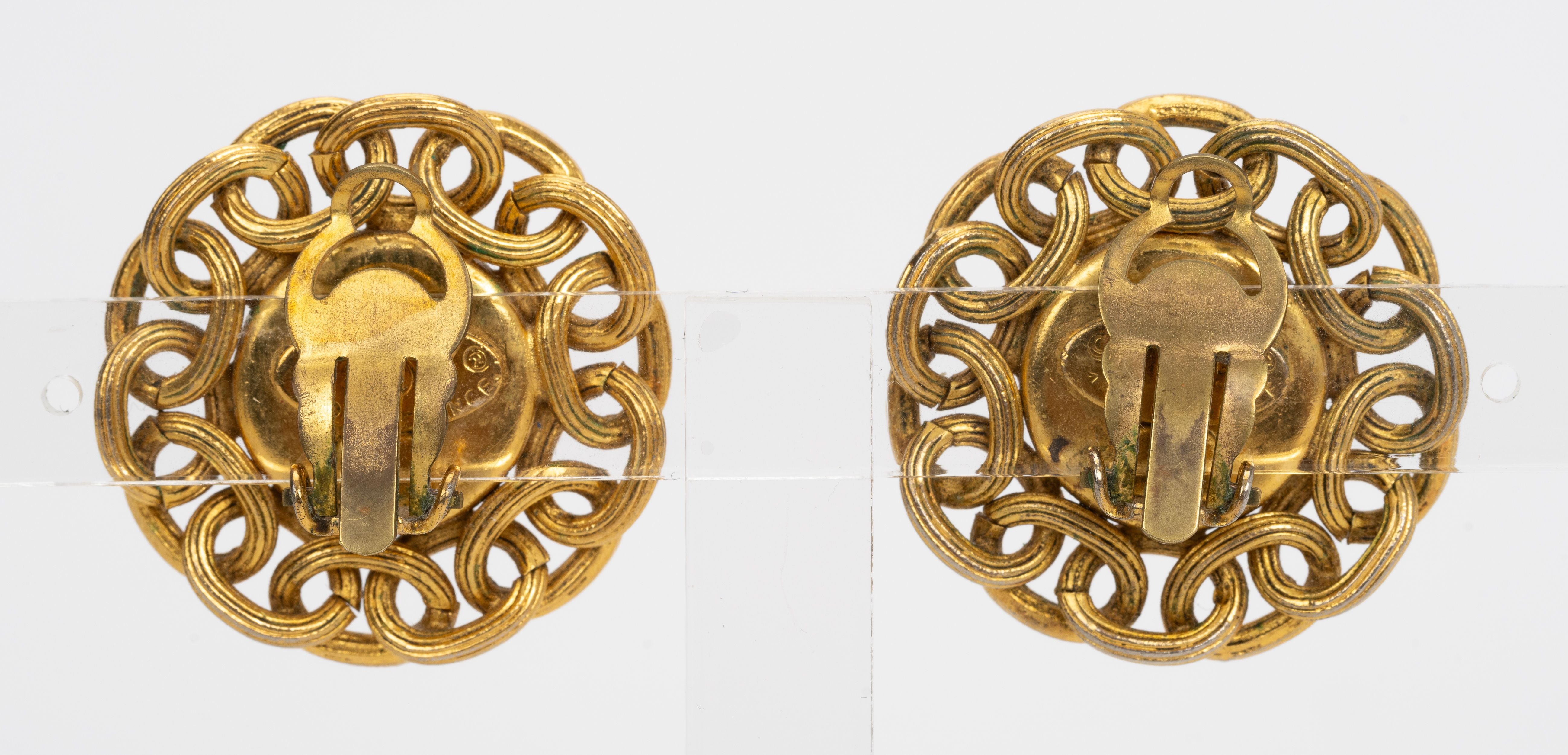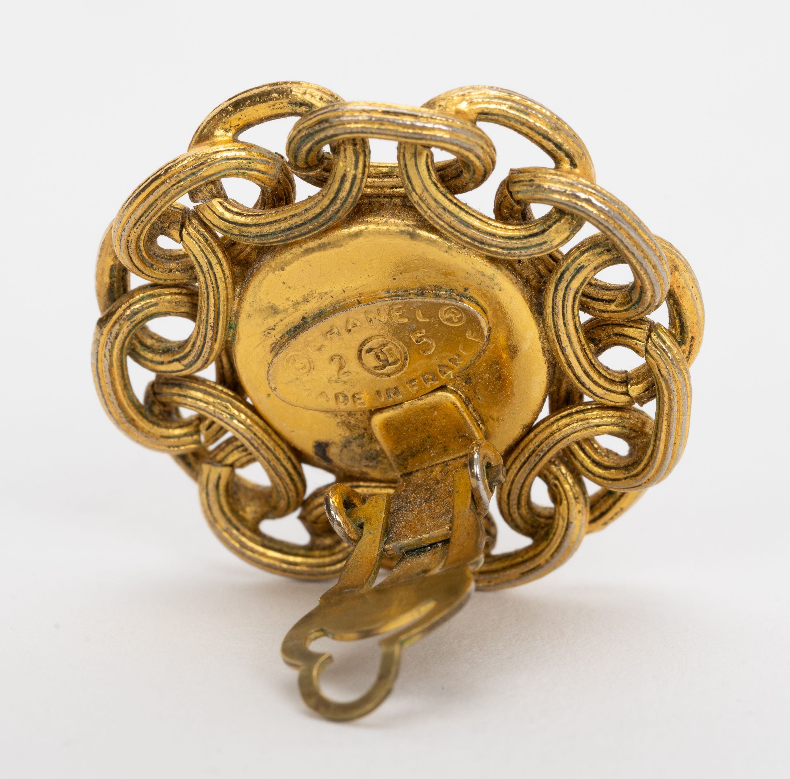 Chanel faux Pearl clip Earrings Gold and White. Minor wear on pearls, collection 25, mid 80s, designed by Victoire de Castellane. Comes with velvet pouch.