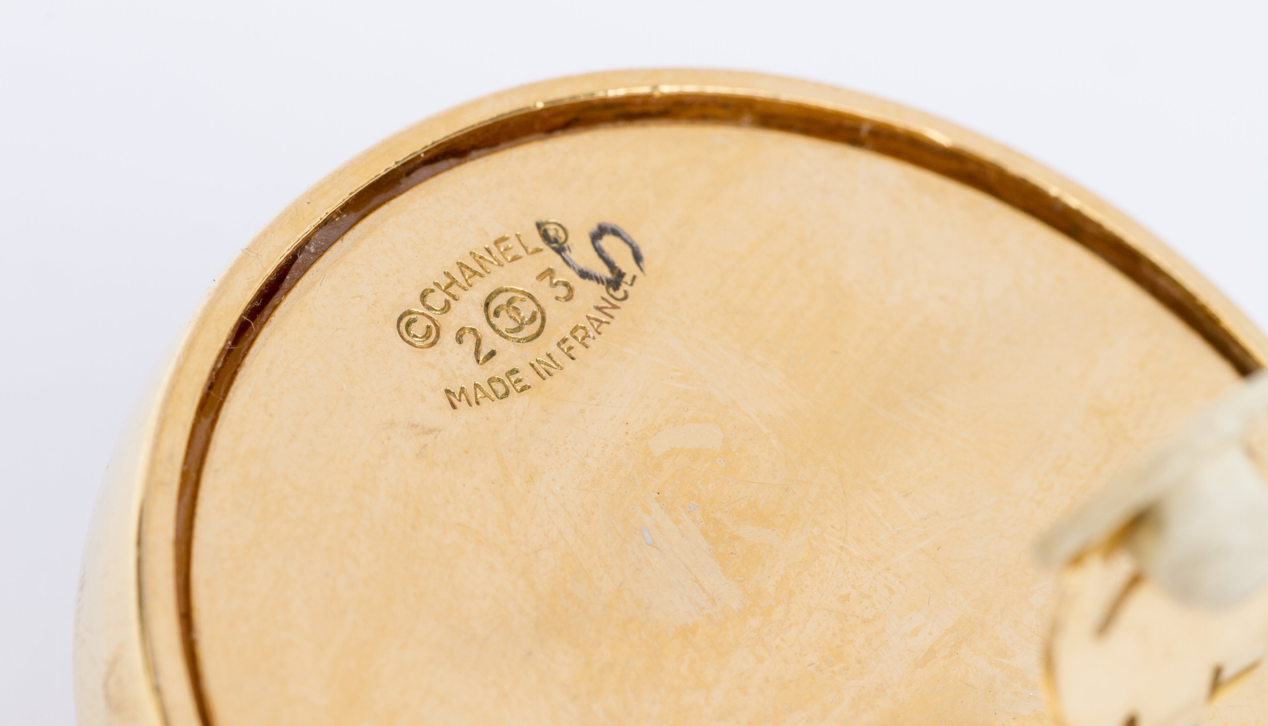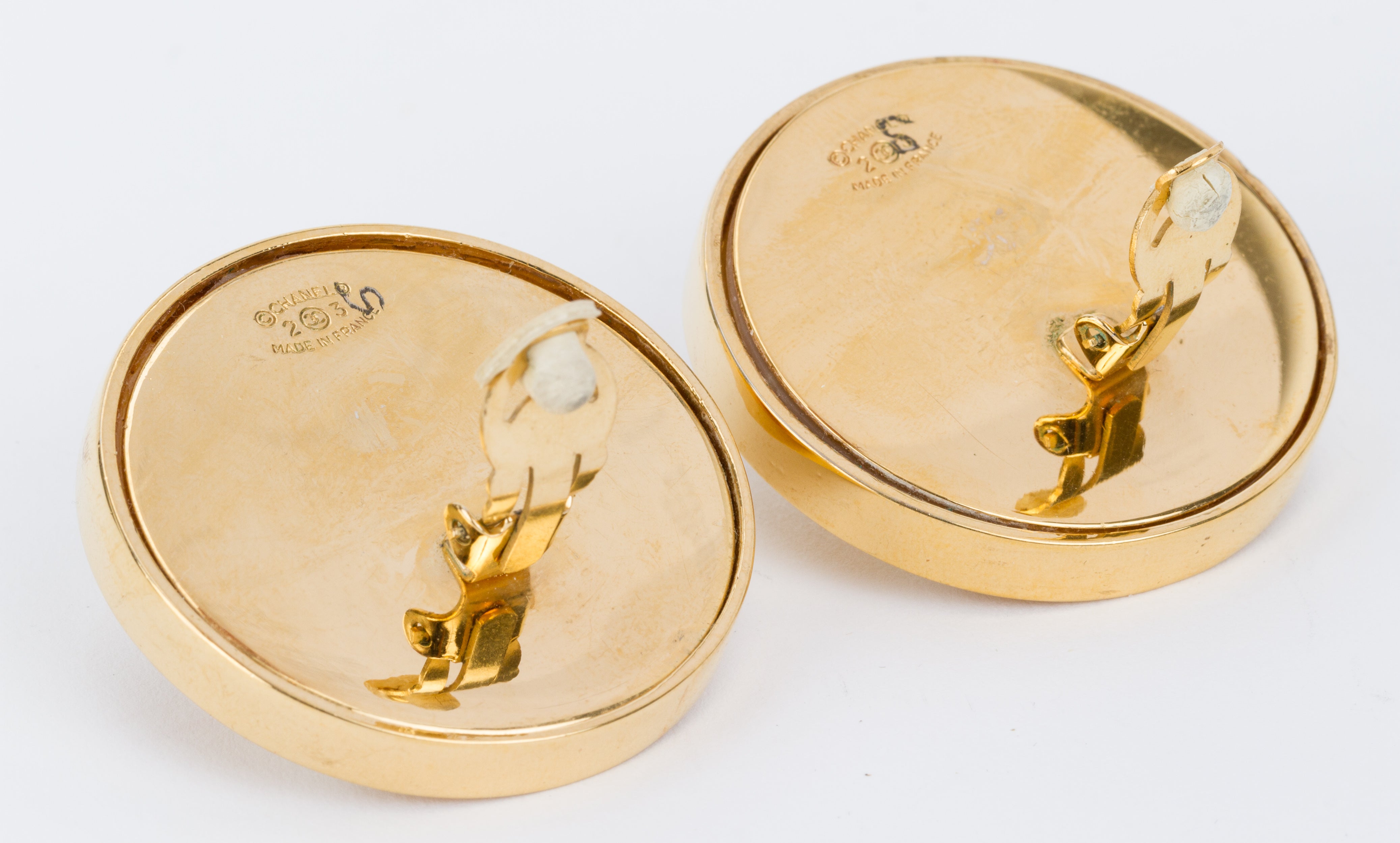Condition: Very Good; minor wearEra: Vintage: 1.25" L x 1.25" HMaterials: rhodiumColor: gold Chanel oversize...