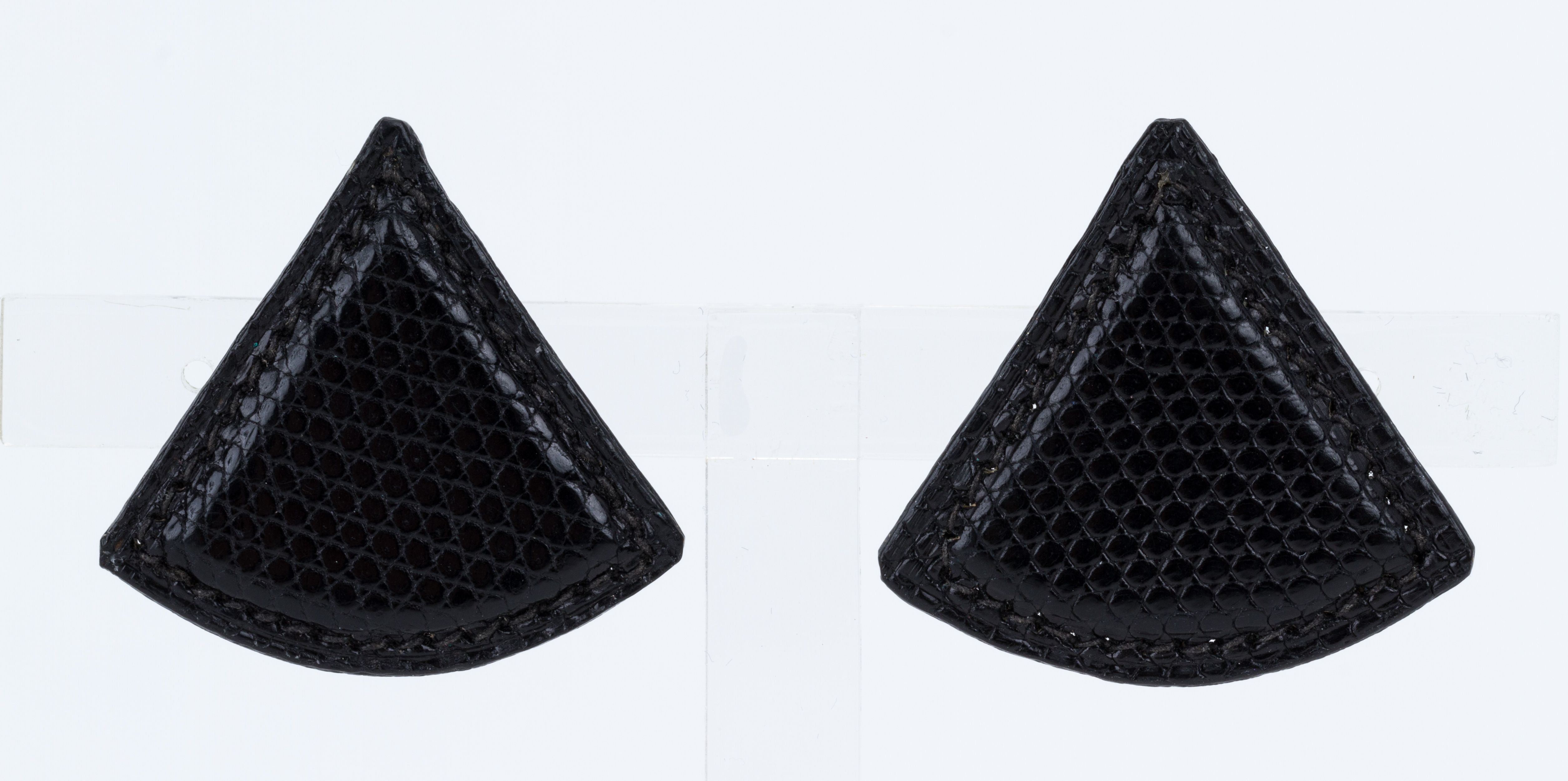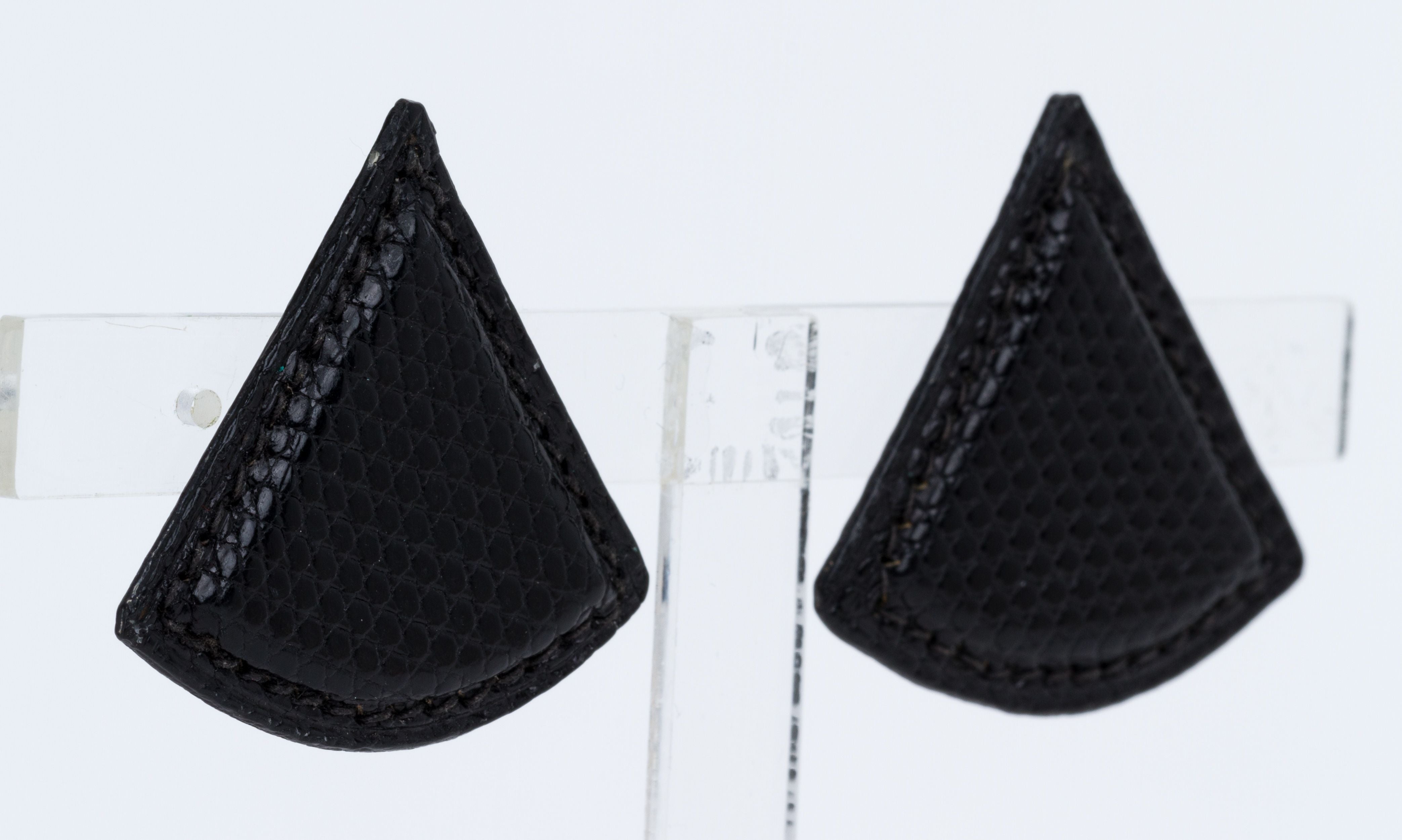 Hermes vintage chic lizard leather triangle clip earrings. Come with velvet pouch.