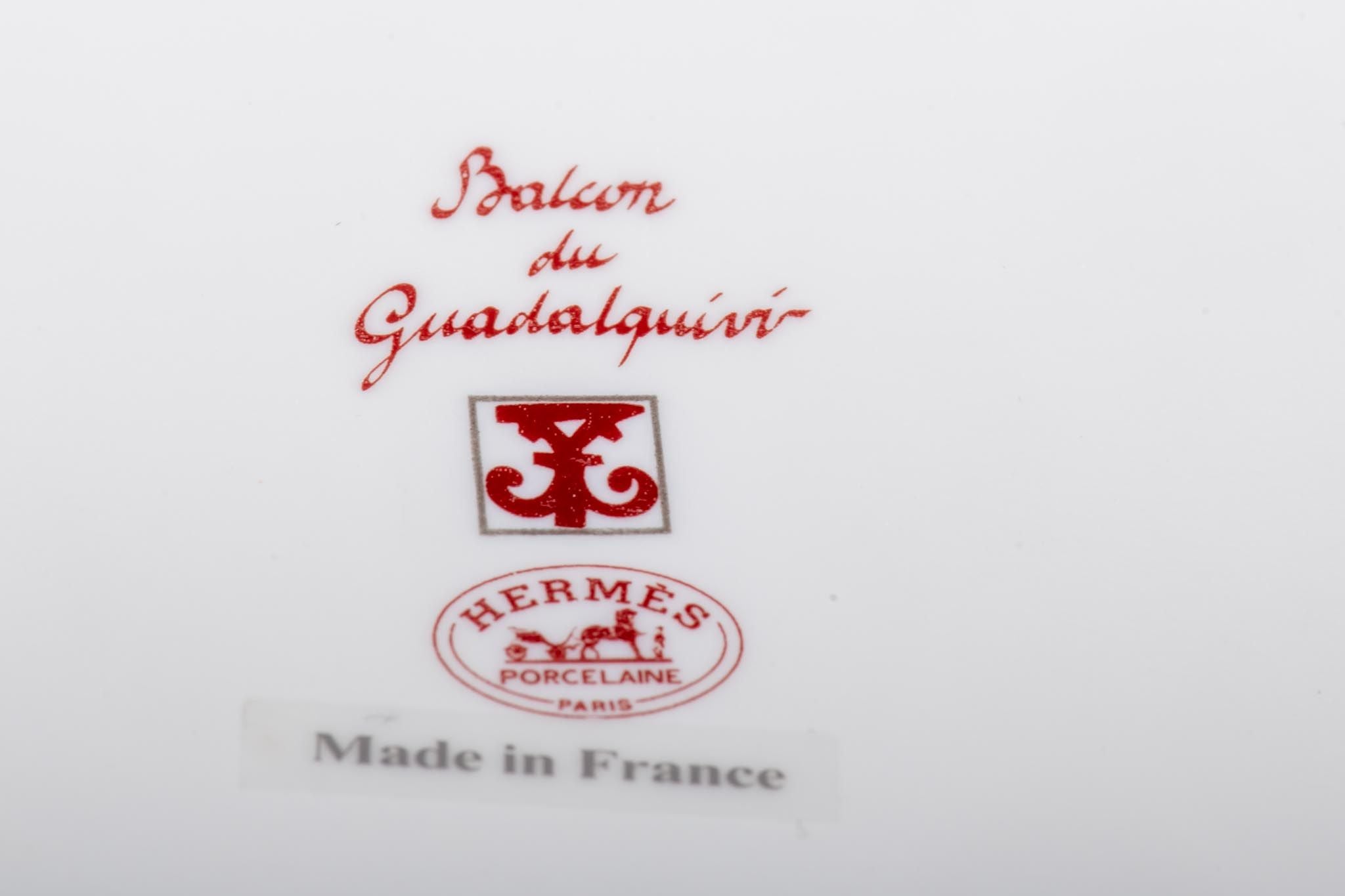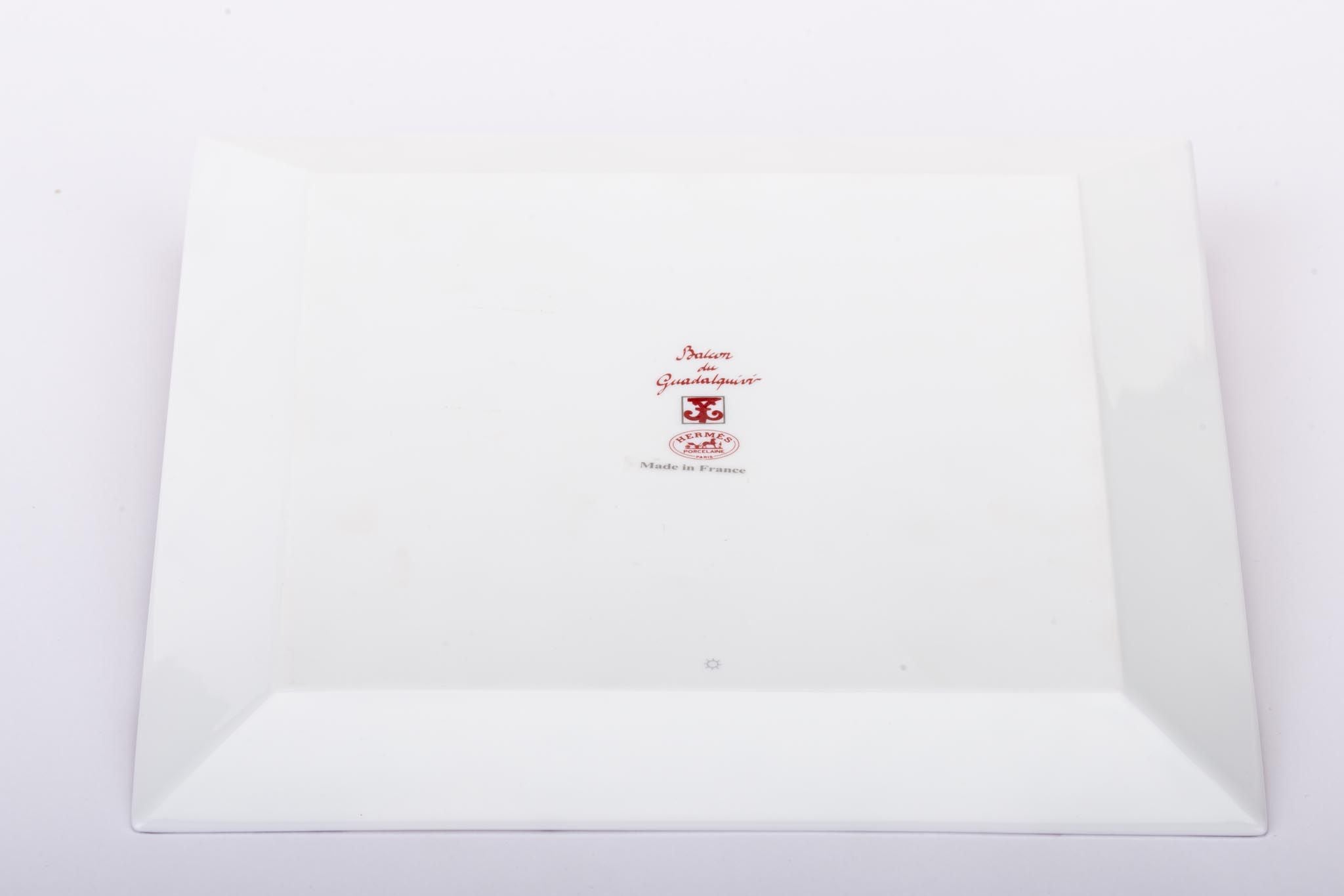 Hermès Limoges porcelain square plate in the Balcon du Guadalquivir pattern. Comes with original box.