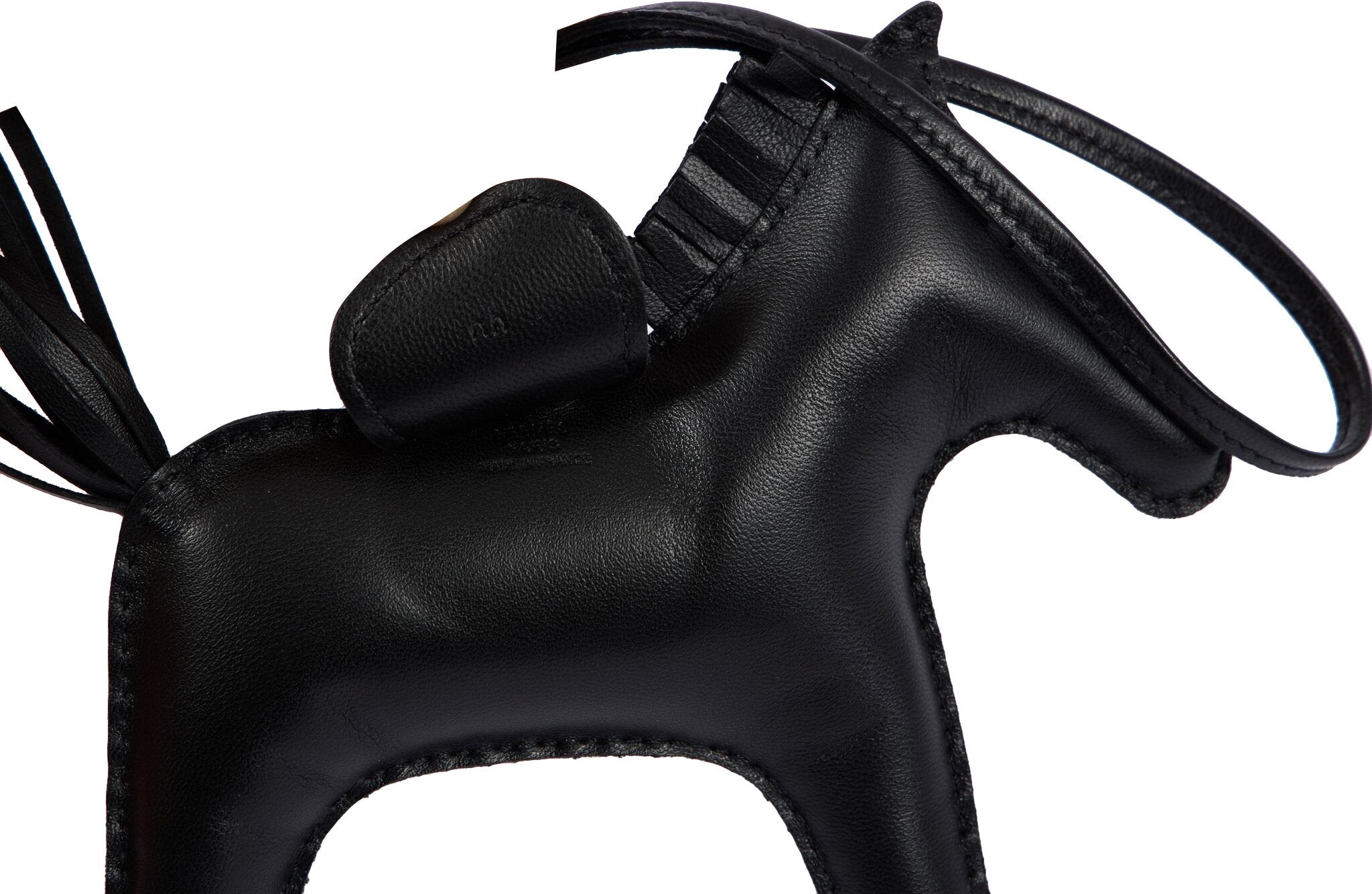 Hermès large Grigri Rodeo bag charm in black Swift leather. Brand new with original box, ribbon, and shopping bag.
