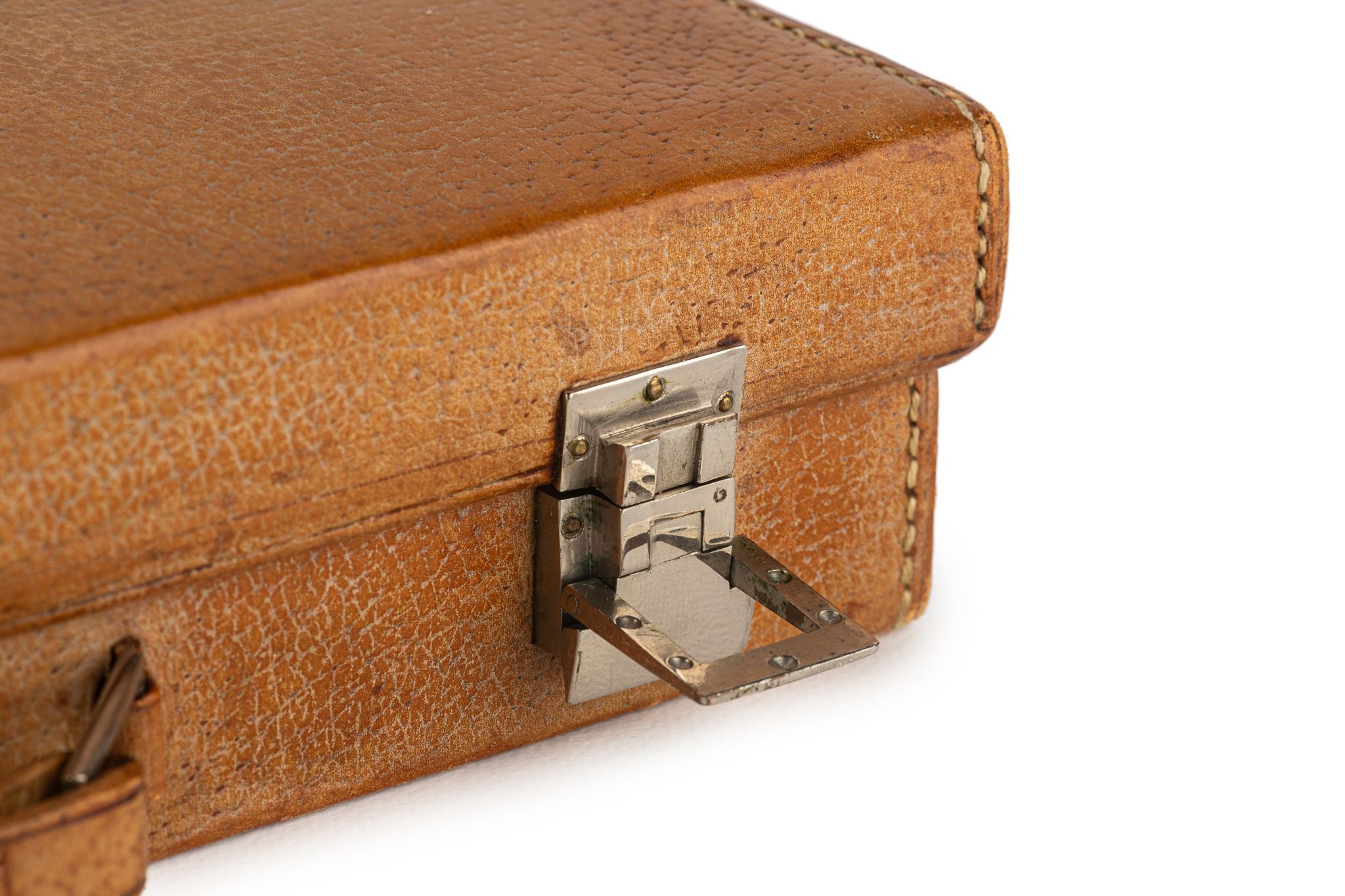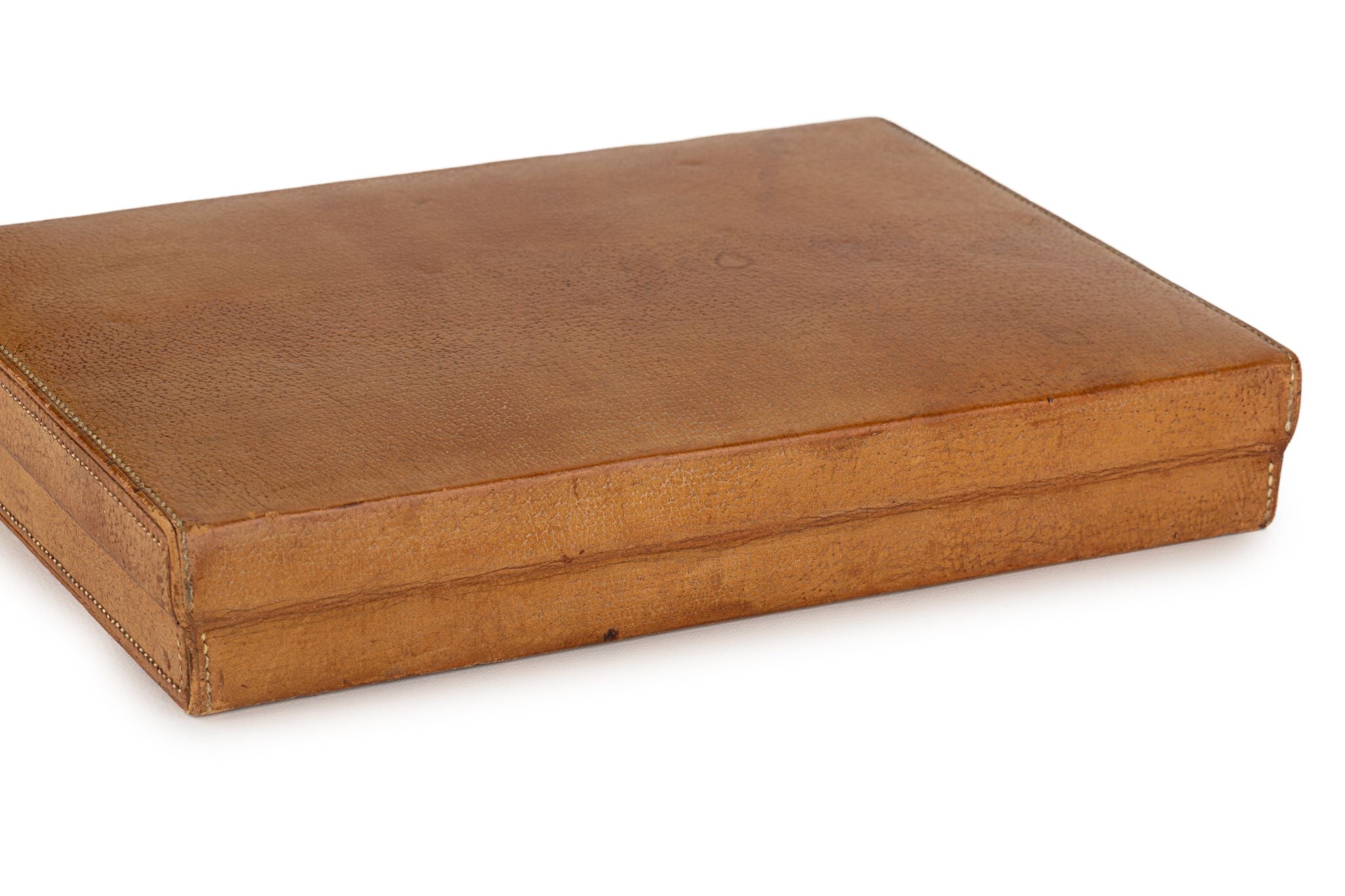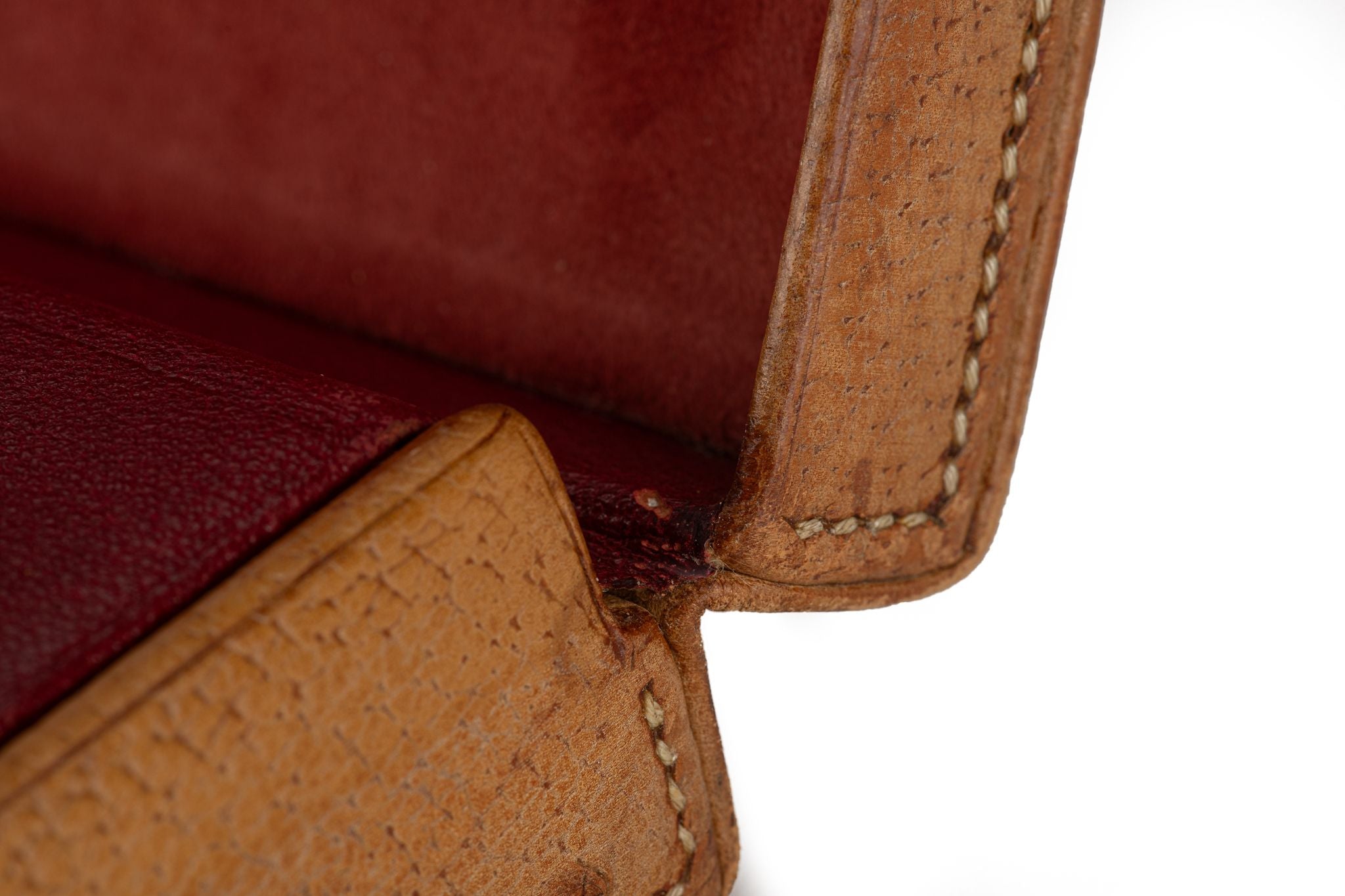 This Vintage Hermès grooming travel set is composed by a leather luggage with 2 silver metal bottles, 1 silver metal box, 2 wood brushes, 1 leather jewelry box, one bifold leather case with: 1 wood shoe horn, a silver metal razor, a blade holder, 1 leather pouch for a com, manicure set, 1 rectangular mirror.