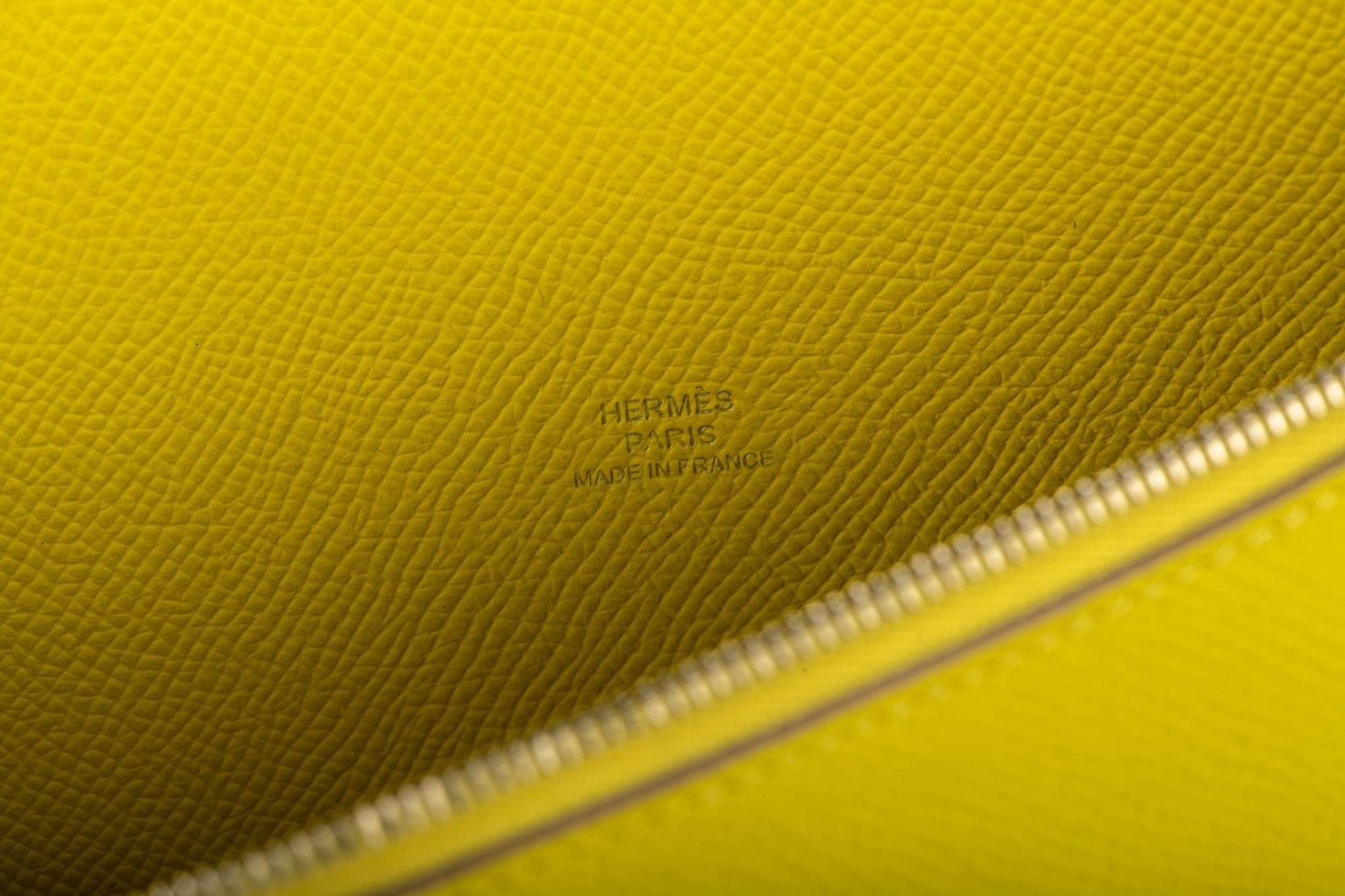 Hermès lemon yellow Epsom leather clutch with palladium zipper. In a tridimensional shape, this clutch is a novelty for the 2017 collection. Brand new in box with dust cover and ribbon.