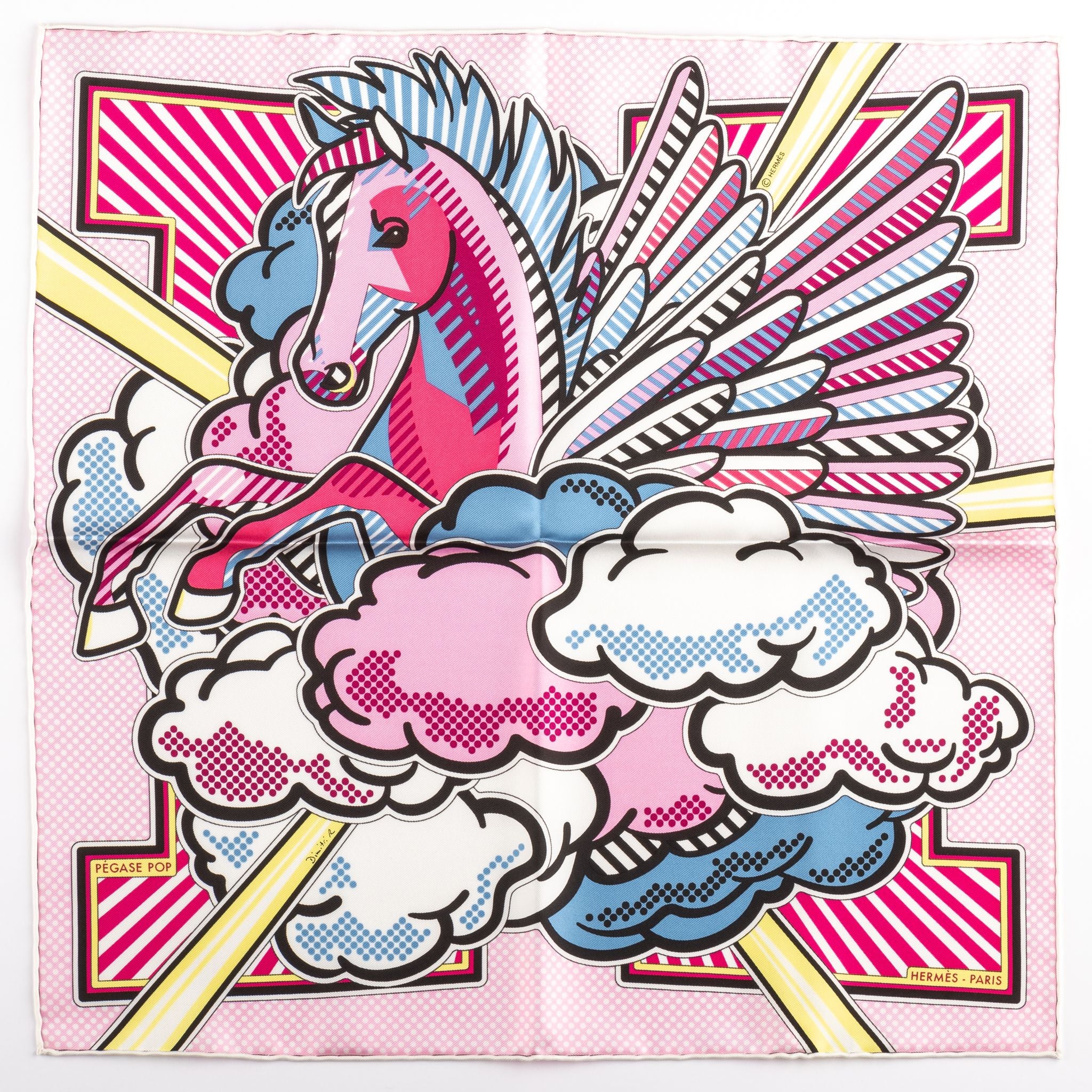 Hermes limited edition "Le pegase pop" by Dimitri Rybalchenko. Silk gavroche, brand new in box.
