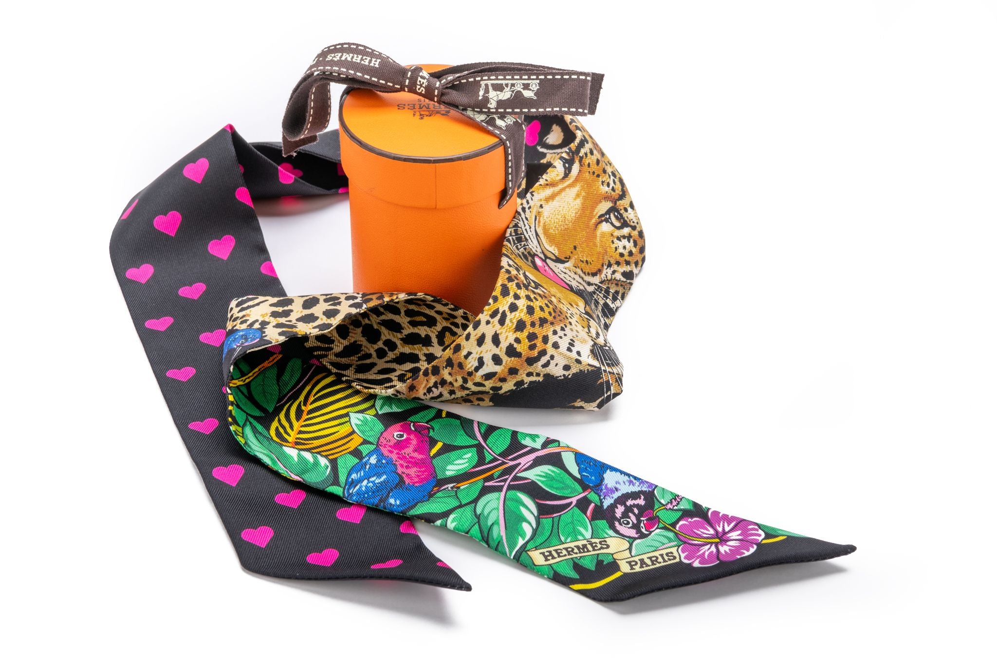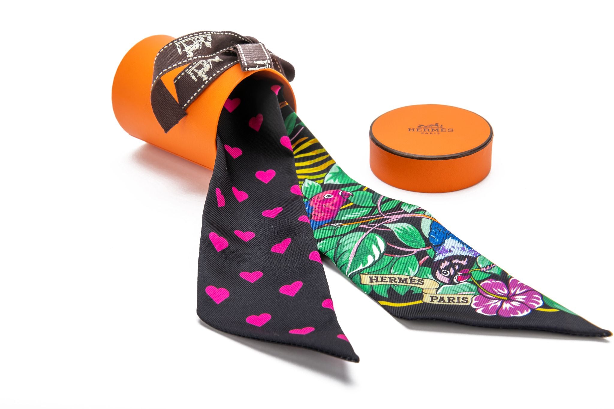 Hermès new Jungle Love limited edition hearts twilly . Designed by Robert Dallet, iconic subject. Comes with original box.