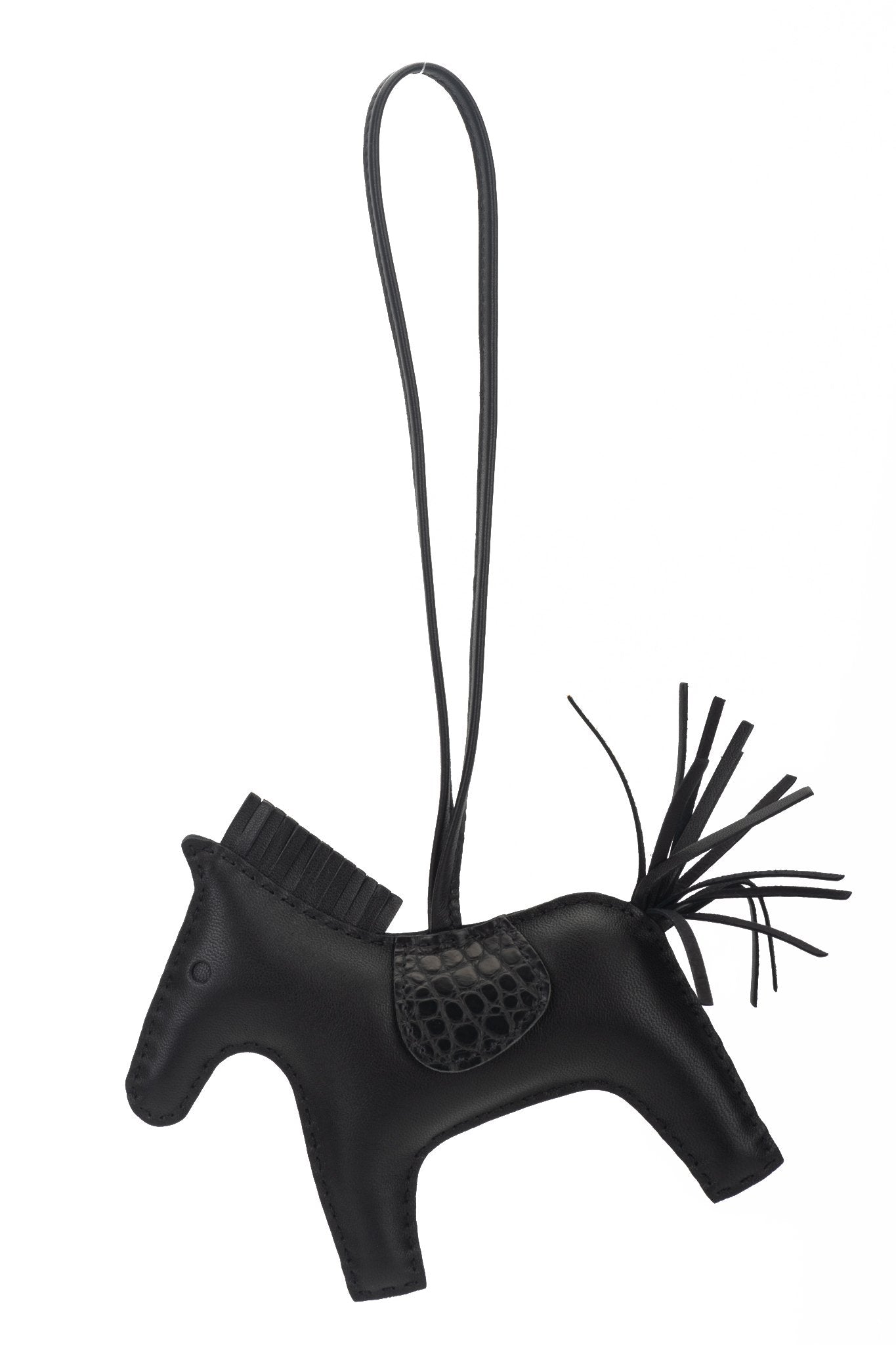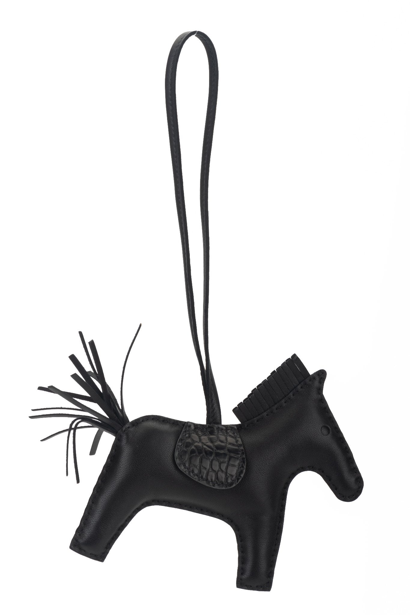 HERMES Milo Lambskin Matte Alligator Touch Grigri Rodeo Horse Bag Charm MM So Black. Date stamp Z for 2021 . Comes with original box.