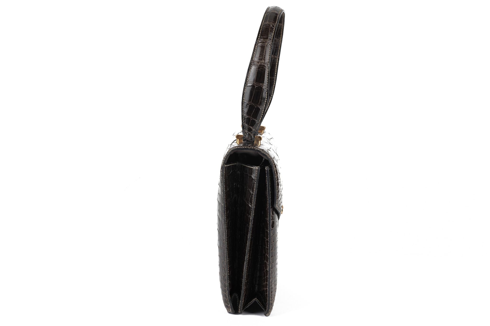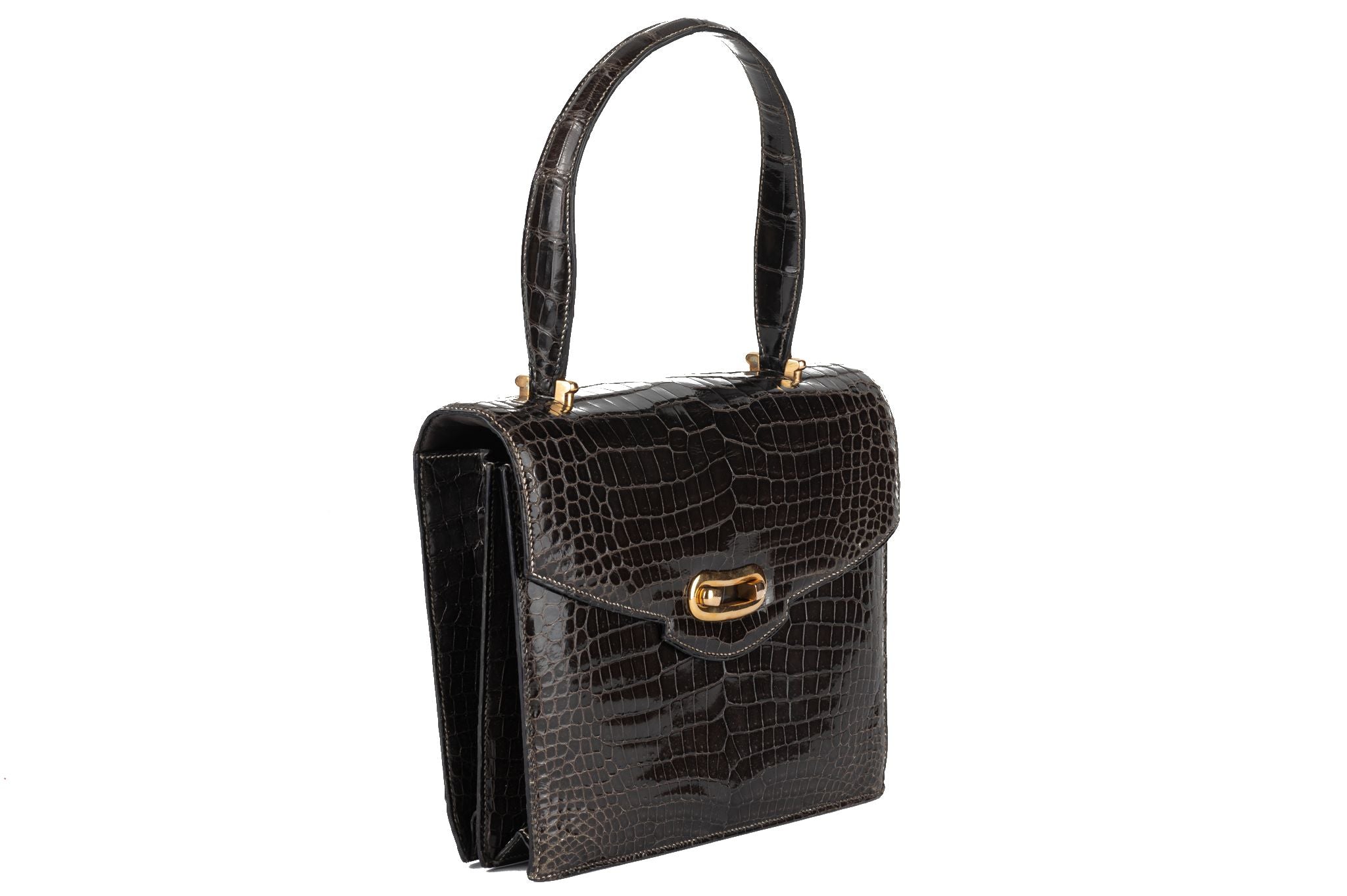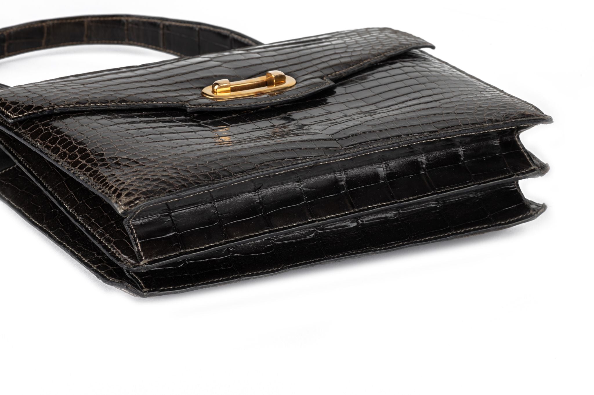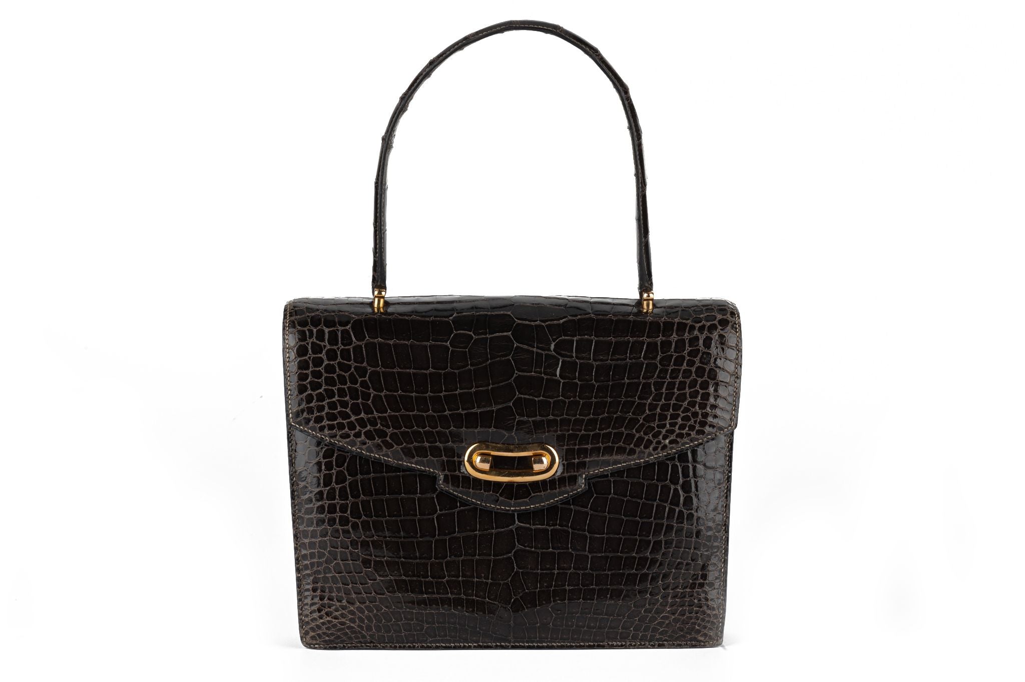 Hermès dark grey crocodile leather vintage handbag. Excellent condition , gold tone hardware. Comes with original dust cover and box .