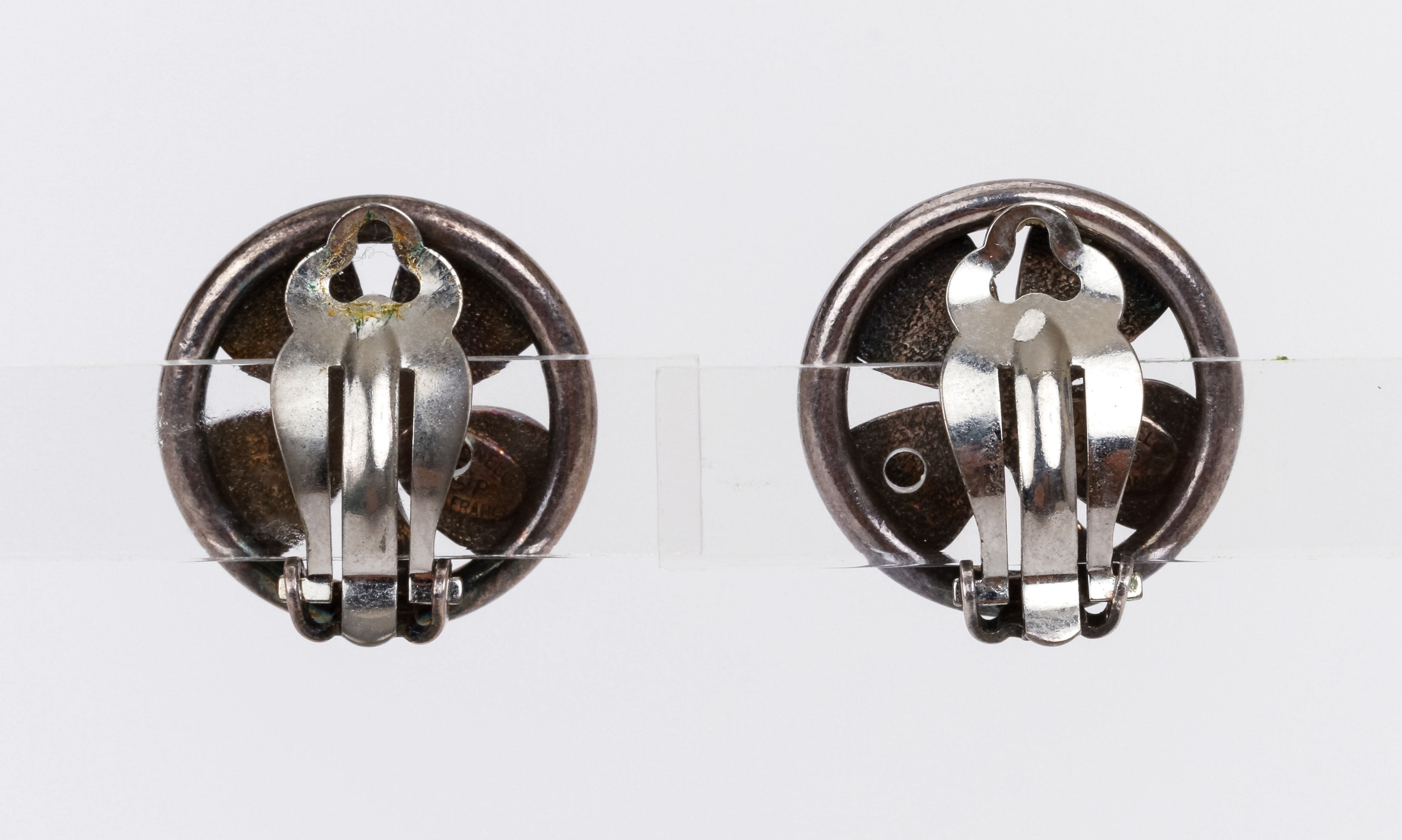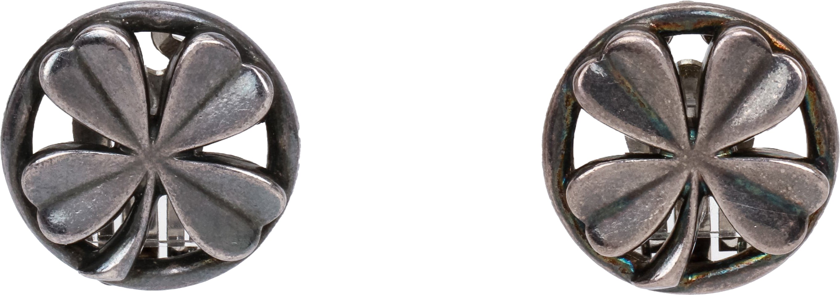 Chanel spring 96 gunmetal clover clip round earrings, D 3/4", comes with pouch