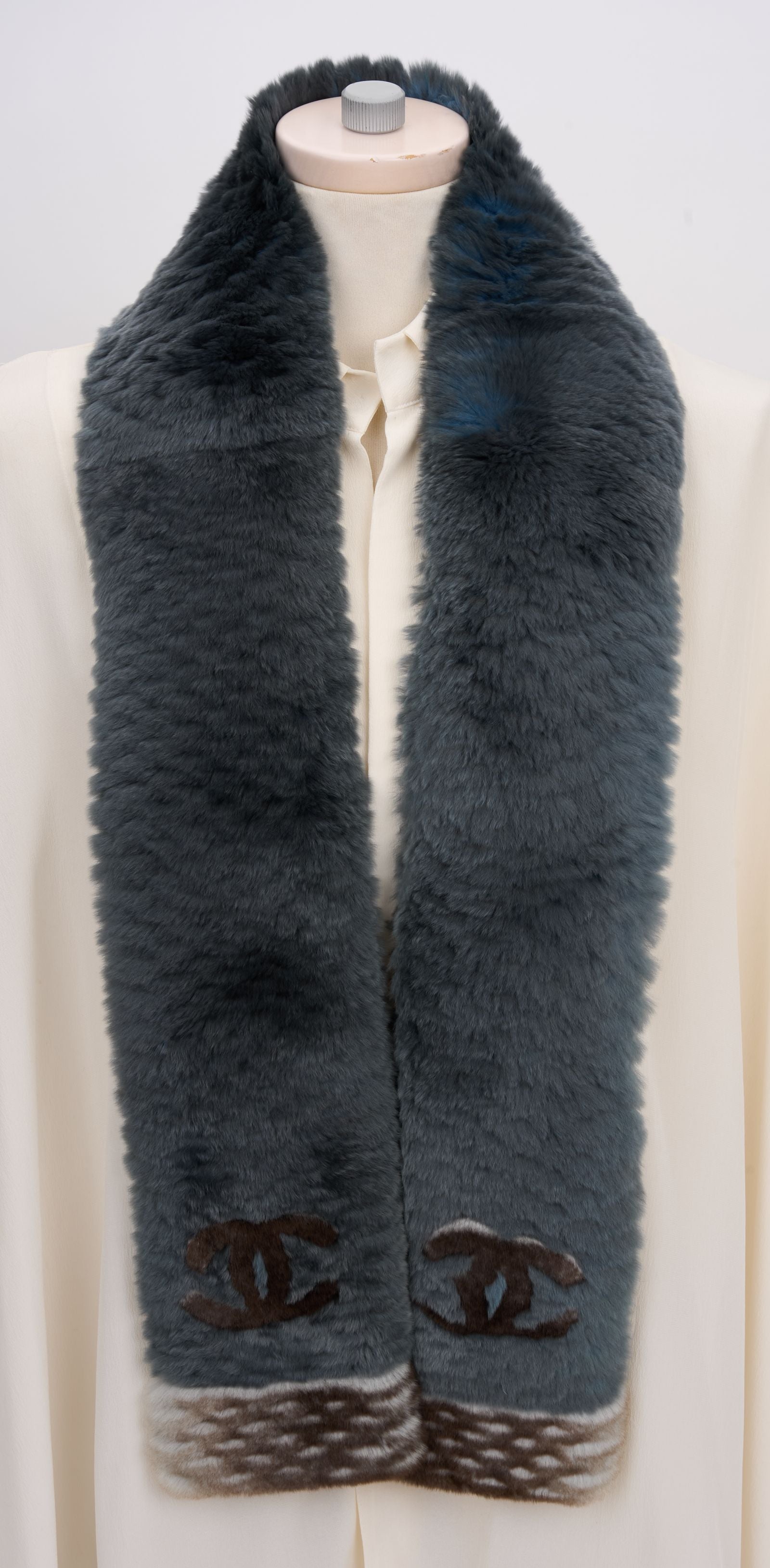 This Chanel Orylag Fur Two-Tone Logo Scarf is crafted with high-quality fur and the CC logo is featured at each end of the scarf. Brand new in unused condition.