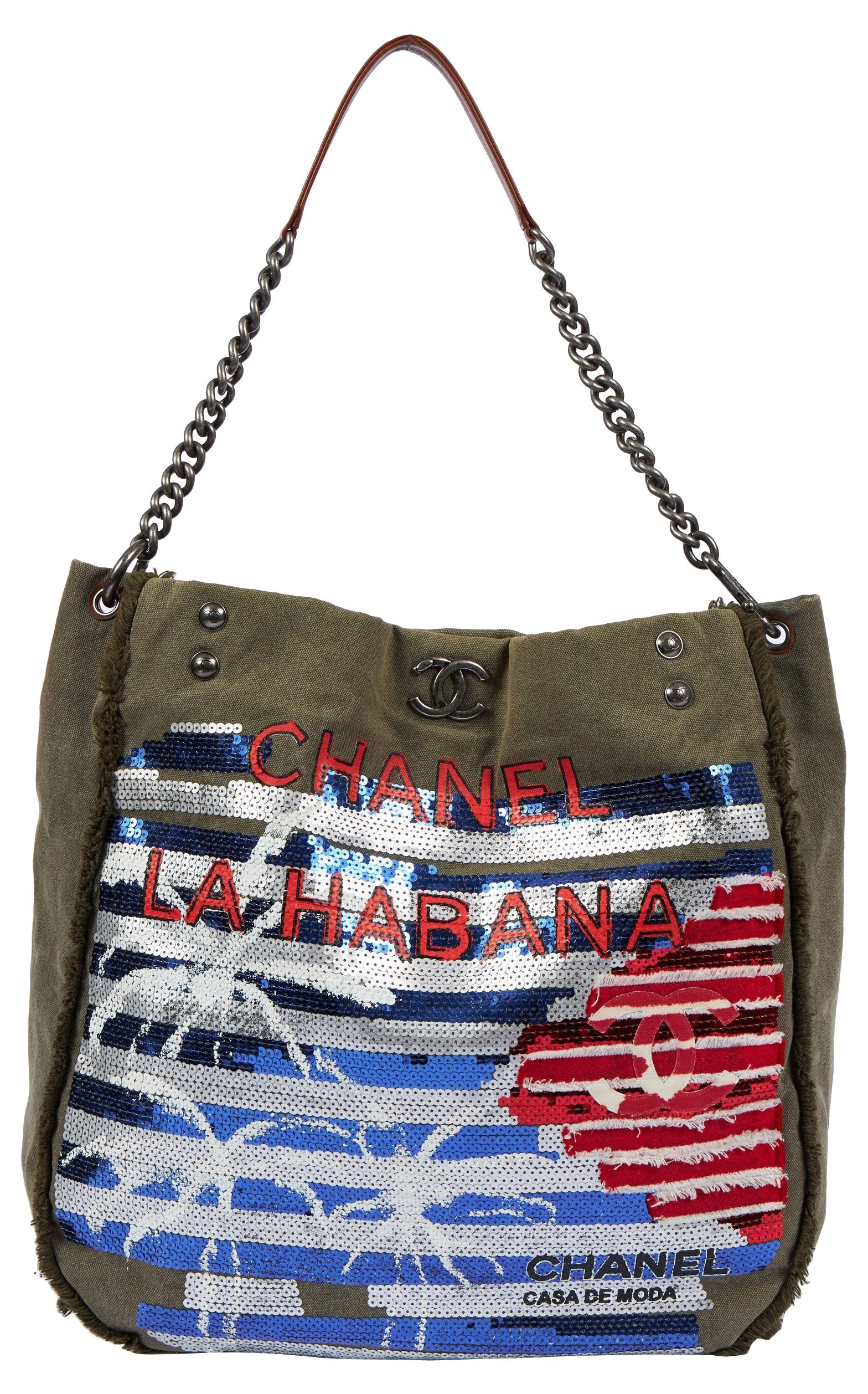 Chanel Coco Cuba sequined tote. Handle drop, 12"L. Comes with hologram, ID card, and dust cover.